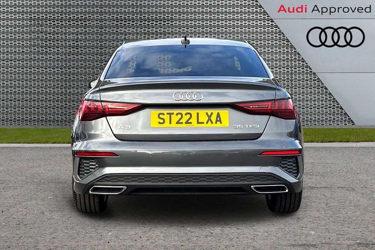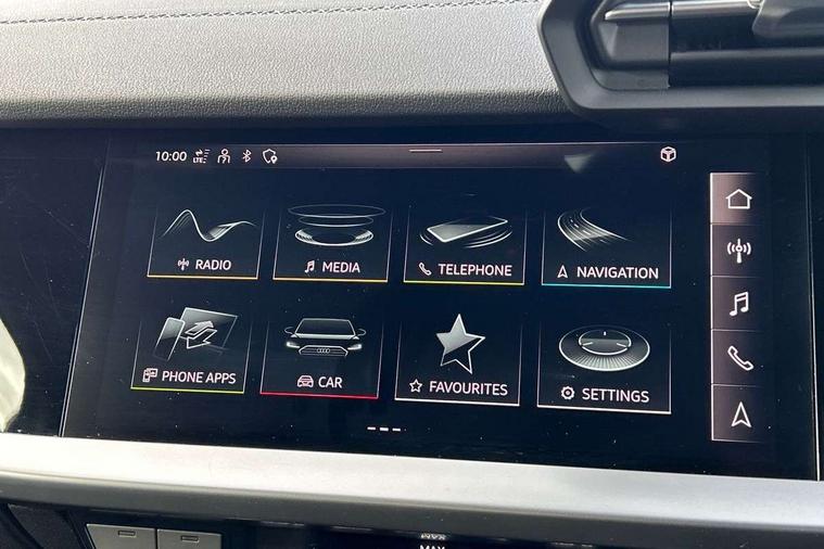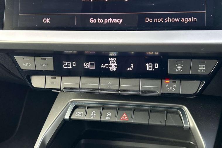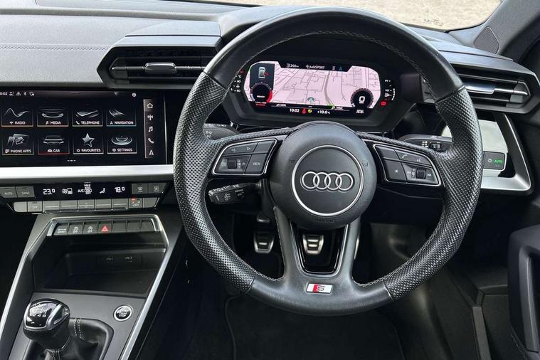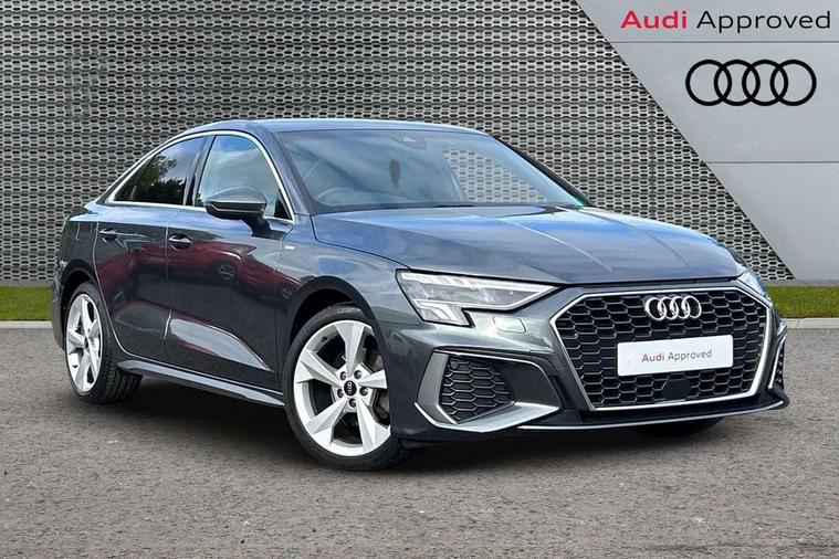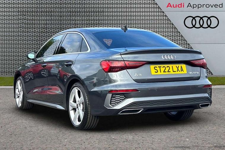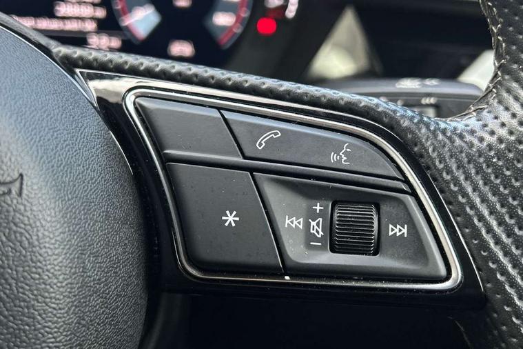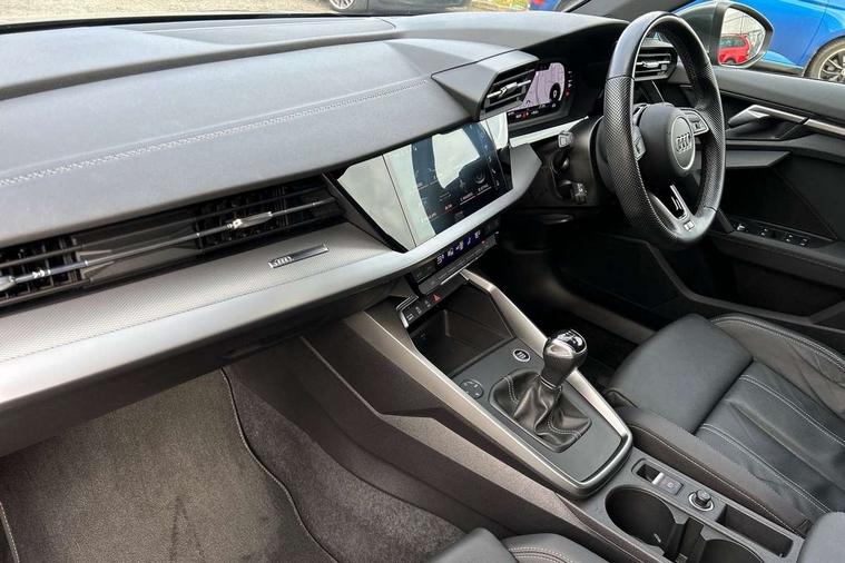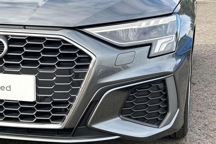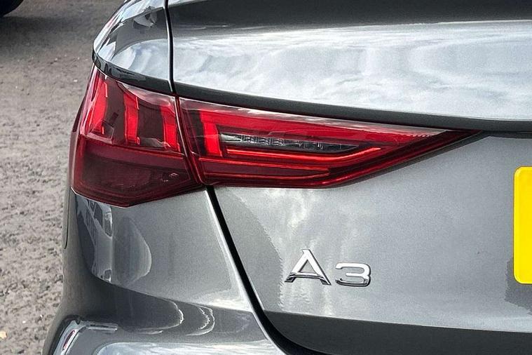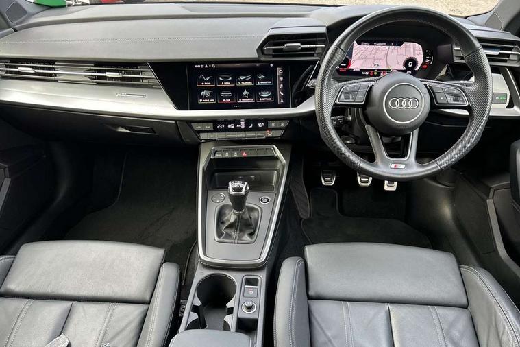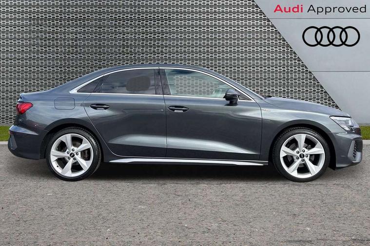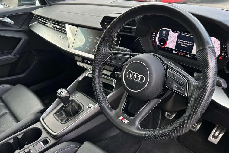 Audi connect emergency call and service, Audi drive select (Auto, Comfort, Dynamic, Efficiency and Individual), Audi smartphone interface, Audi Virtual Cockpit - 10.25" digital and colour instrument cluster, Automatic start/stop system with recuperation, Bluetooth interface, Collision avoidance assistant, Cruise control + speed limiter, Electromechanical power speed sensitive steering, Lane departure warning system, MMI Navigation Plus with high resolution 10.1" colour touch screen display, Rear parking sensors, Service indicator, Voice control system with natural language interaction, 2x USB Type C ports (for charging and data transfer), 6 passive loudspeakers, CD player, DAB Digital radio, 3rd brake light, Acoustic glass windscreen, Aluminium window trim, Auto dimming frameless rear view mirror, Electrically adjustable/heated/folding/auto dimming door mirrors with integrated LED indications + kerb view function for passenger side, Front electric windows, Illuminated door sills with aluminium inserts at the front with S logo, LED daytime running lights, LED headlights with LED rear lights and dynamic rear indicators, Light and rain sensors, Model and engine designation badges at rear, Privacy glass - dark tinted rear window, rear door and side windows, Rear boot, Rear electric windows, Rear side wing doors, S line bumpers, S roof spoiler, 12V socket and storage compartment in front centre console, 3 seat bench in 2nd row, 40/20/40 split folding rear seat bench with cupholder, Black cloth headlining, Dual zone electronic climate control, Front and rear centre armrest in leather, Front and rear headrests, Front/rear floor mats, Height and reach adjustable steering wheel, Illuminated vanity mirror, Interior lighting - glove compartment light and right hand side, Luggage compartment floor covering, Manual boot compartment lid, Manually adjustable front sport seats, Seat side bolsters, Single front passenger seat, Stainless steel pedals and front footrest in black, Twin leather upholstery with front sports seats S embossed logo, Aluminium interior elements pack - A3, S line styling pack - A3 Saloon, 3x3 point rear seat belts, Driver and front passenger airbag with passenger airbag deactivation, Electronic Stabilisation Control (ESC) including ABS, ASR and EDL, First aid kit with warning triangle and 2 safety vests, Front side airbags with head airbags and interaction airbag, Hill hold assist, Pre-sense front with pedestrian and cyclist detection, Seatbelt monitoring, Tyre pressure loss indicator, Anti theft alarm, Anti-theft wheel bolts, Immobiliser, Manual child locks, Remote control central locking, Aluminium air vent surrounds, Aluminium trim elements, Dark spectrum aluminium inlays, accent surfaces in the dashboard and centre console in platinum grey silk effect paint finish,