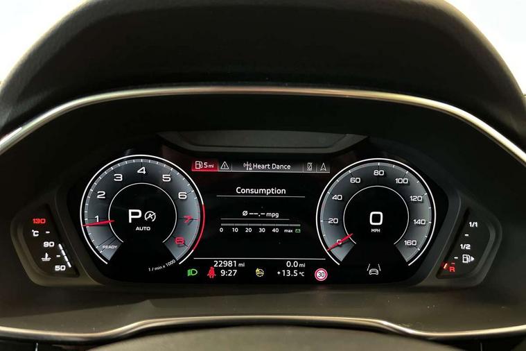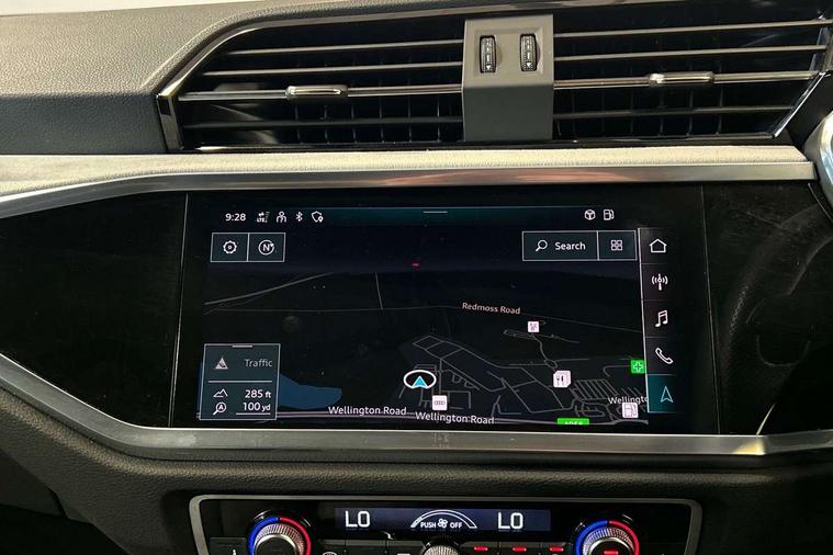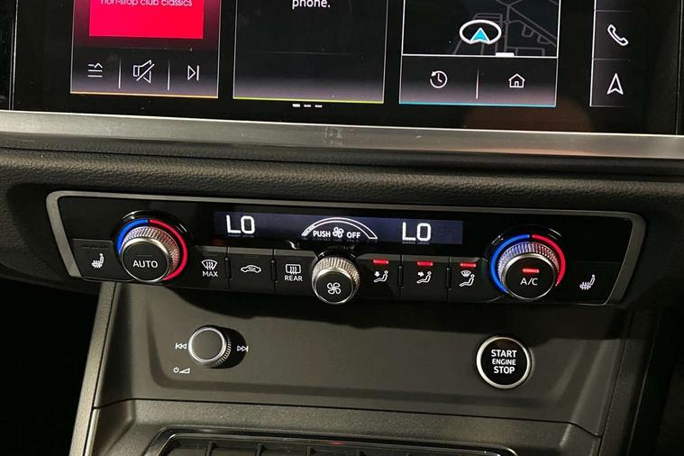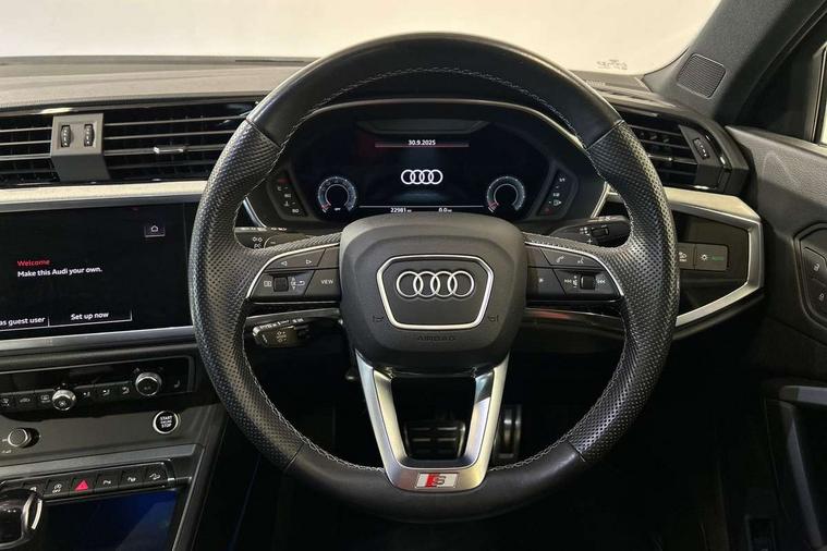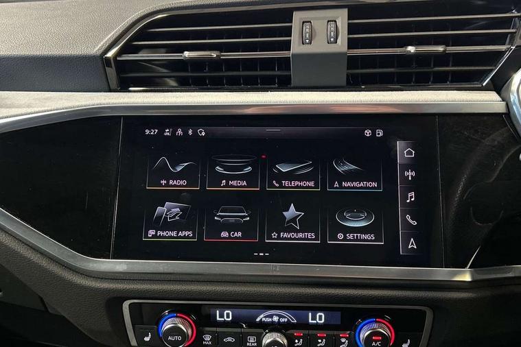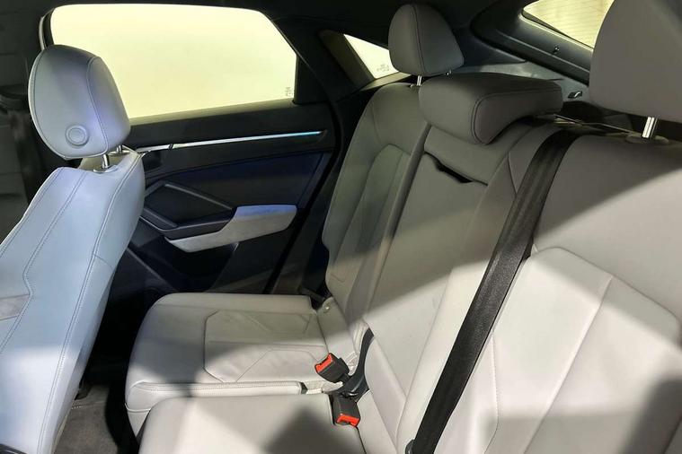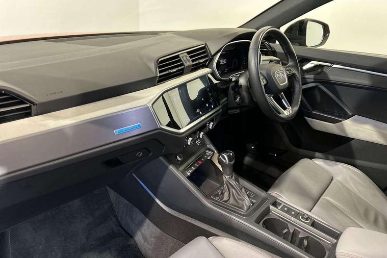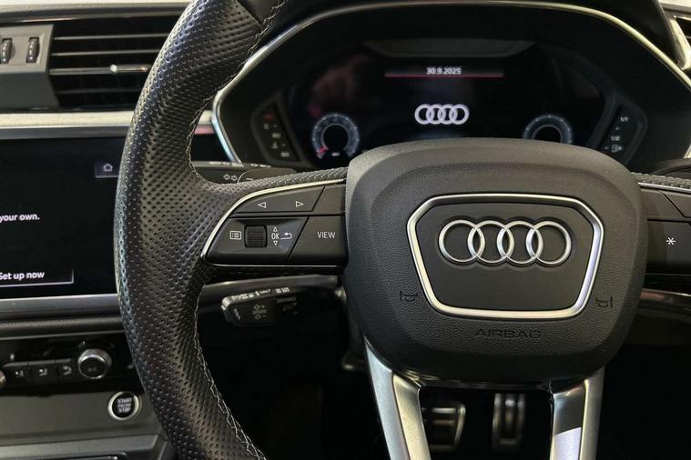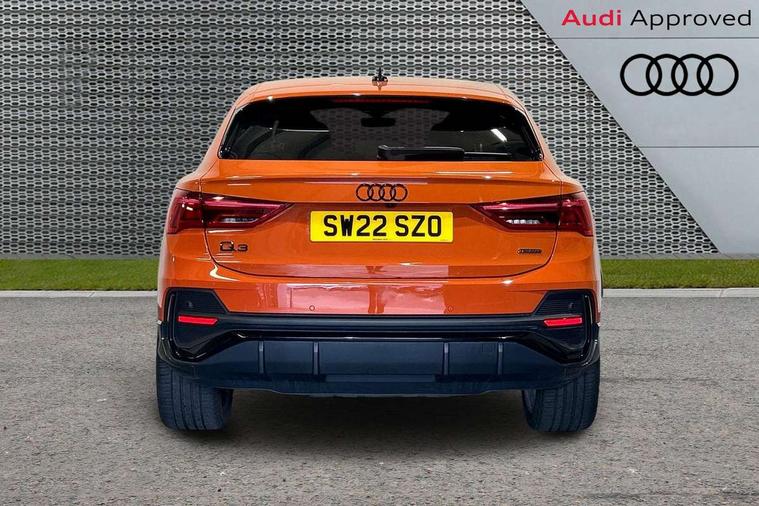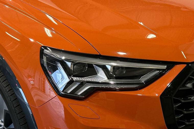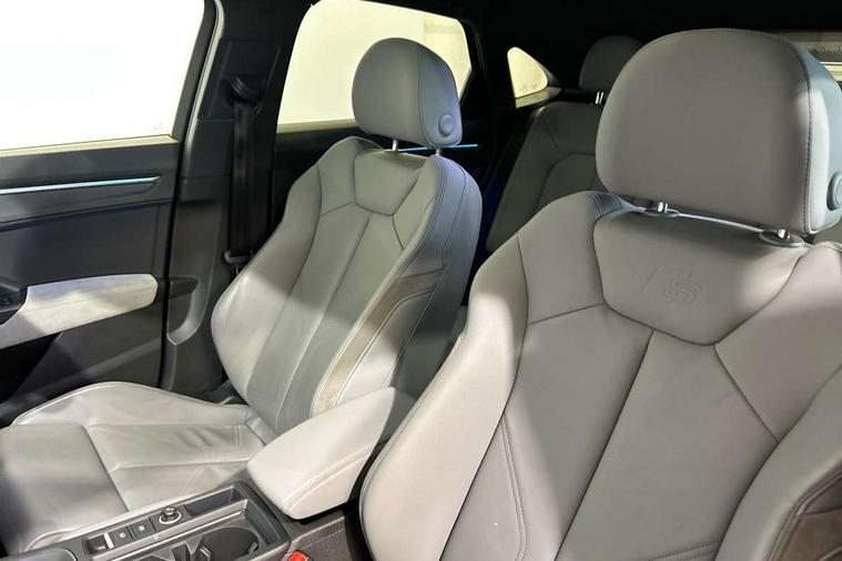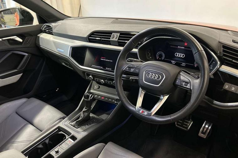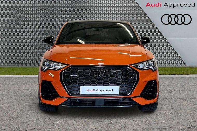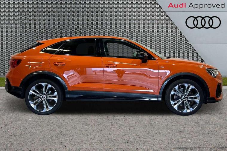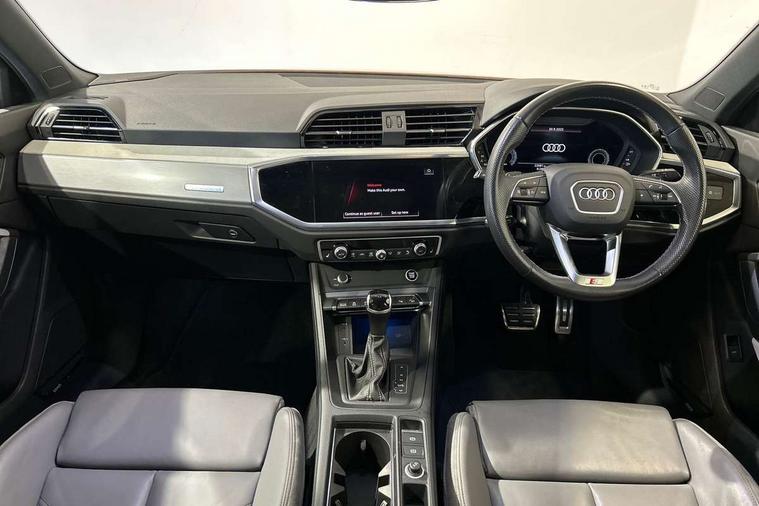 360 degree parking camera, Audi connect safety and service (e-call), Audi drive select, Audi lane departure warning, Audi phone box with wireless charging, Audi virtual cockpit plus, Bluetooth interface, Camera based traffic sign recognition, MMI Navigation Plus with high resolution 10.1 inch touchscreen colour display, Power operated tailgate, Progressive steering, Rear cross traffic assist, Service interval indicator, Smartphone interface includes wireless Apple carplay/Android Auto, Start stop system with recuperation, Voice control system with natural language interaction, Adaptive suspension with damping control, 2 USB-C ports with charge and data functions, DAB digital radio module, SONOS premium sound system, Acoustic windscreen, Audi Beam uses LEDs to project Vorsprung logo, Auto dimming door mirrors, Auto dimming frameless rear view mirror, Bumpers and underbody protection in contrasting manhattan grey paint finish, Diffuser grille in grained matt black, Diffuser trim in selenite silver, Electrically folding, adjustable and heated door mirrors with integrated LED side indicators and kerb view function for passenger side, Front and rear electric windows, Front fog lights, Front side air inlets in selenite silver, Headlight washers, High gloss black finish B and C pillars, LED daytime running lights, Matrix LED headlights with LED rear lights and dynamic front and rear indicator, Panoramic opening glass sunroof, Privacy glass dark tinted rear and rear-side windows (from B-pillar backwards), Rain and light sensors, Rear side wing doors, Rear underbody protection in matt black, Rear wiper, Third brake light, 12V socket in rear centre console, 3 seat bench in 2nd row, 4 way electric lumbar support for driver and front passenger, 40:20:40 folding with manual adjustment for 60:40 forwards/backwards position and backrest angle, Adjustable rear seat bench/backrest with centre armrest and cupholder, Black cloth headlining, Dual zone electronic climate control, Electrically adjustable front seats, Front and rear black floor mats with contrast stitching, Front and rear headrests, Front and rear roof module including reading lights, Front centre armrest, Glove compartment lighting, Heated front seats, Height and reach adjustable steering wheel, Illuminated door sill trims with S logo, ISOFIX child seat mounting for front passenger with airbag deactivation and outer rear seat including top tether attachment point for outer rear seats, Leather steering wheel in 3-spoke design with multifunction plus and shift paddles, Luggage compartment light, Perforated leather gearknob, Single front passenger seat, Stainless steel luggage compartment sill finisher, Stainless steel pedals, Black styling pack - Q3 Sportback Vorsprung, Driver Assistance Pack - Q3, Multi coloured extended ambient interior lighting pack - Q3, Non smoking pack - Q3, 3x3 point rear seatbelts, 6 airbags - Driver, front passenger, curtain and side windows, Audi pre-sense front with pedestrain and cyclist recognition, Electrically operated child locks on rear doors, Electromechanical parking brake, Electronic stabilisation control including ABS, ASR and EDL, Hill descent control, Hill hold assist, Pre sense basic, Seatbelt monitoring, Tyre pressure warning, Warning triangle and first aid kit, Advanced key, Anti theft alarm, Anti theft wheel bolts, Remote central locking, Black dashboard, Detail dashboard around MMI touch colour display in glass look, black with surround in aluminium look, Leatherette door armrest,