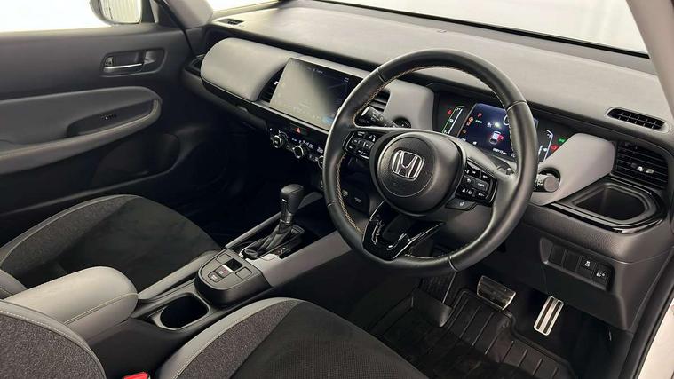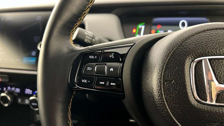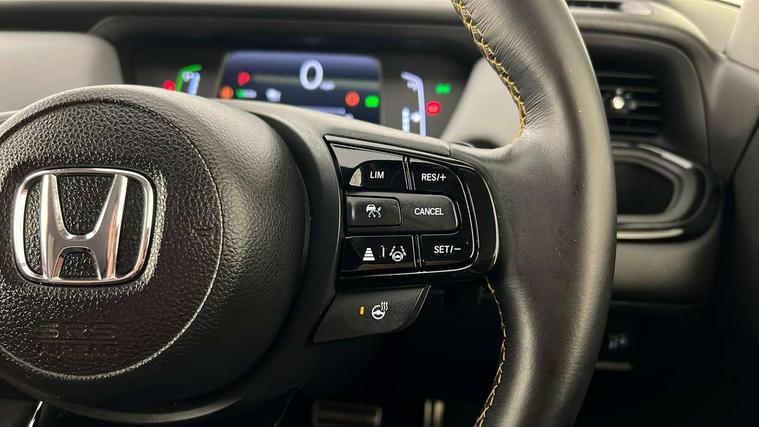 Adaptive cruise control, Adjustable speed limiter, Agile handling assist, BLIS (Blind Spot Information System) with Cross Traffic Monitor, Bluetooth hands free telephone connection, Drive mode (Econ, Sport, Normal), Driver attention monitoring system, eCall emergency call system - ecall functionality is subject to 2G/3G network availability, Electric power steering wheel with variable gear ratio steering, Emergency stop signalling system, Forward collision warning, Front and rear parking sensors, Honda CONNECT with Navigation 9" touchscreen, AM/FM/DAB, Apple Carplay and Android Auto, live traffic info, Idle stop, Intelligent speed limiter, Lane departure warning system, Lane keep assist system, Low speed following, Multi-information display, Rear view camera, Road departure mitigation, Tailgate, Traffic jam assist, Traffic sign recognition, Wireless apple carplay, Vehicle stability assist, 'Shark fin' mobile antenna, 180w Power audio system with 4 speakers, 2 USB-C connectors rear, 2x USB Front socket (1 data & 1 charge), Remote audio controls on steering wheel, Aspheric door mirrors, Auto wipers, Automatic headlights with on/off timer, Coming/leaving home function, Black headlight extension, Body colour door handles, eHEV emblem, Electric adjustable door mirrors, Electrically folding door mirrors, Exclusive styling includes front and rear bumper in gloss black finish, Front and rear electric windows, Heated door mirrors, High beam assist, LED 3rd brake light, LED daytime running lights, LED Headlights, LED rear lights, Manual headlight levelling, Privacy glass, Rear side wing doors, Rear wiper, Single exhaust tailpipe with finisher, Sport grille, 3 seat bench in 2nd row, 60/40 split rear bench seat, Cargo net hooks, Climate control air conditioning, Driver and front passenger seat armrests, Driver and passenger front seat pockets, Driver's seat height adjustment, Fabric/suede leather upholstery, Front accessory power socket, Front head restraints, Front map lights, Front/rear courtesy lights, Heated front seats, Heated steering wheel, Isofix points, Leather 3-spoke steering wheel, Leather gearshift knob, Magic seat flexibility system, Plating interior door handles, Rear head restraints, Single front passenger seat, Sport pedals, Sunvisors with vanity mirrors, Tilt/telescopic adjustable steering wheel, Tonneau cover, Trunk light, Vanity mirror illumination, 3x3 point rear seatbelts, Anti-lock braking system (ABS), Brake assist function, Brake hold function, Child locks on rear doors, Collision mitigation braking system, Deflation warning system, Driver knee airbag, Driver SRS airbag (single stage inflation), Driver/Front Passenger airbags, Electronic parking brake with auto hold, Front and rear seat belt with emergency locking retractor, Front and rear side curtain airbag, Front centre airbag, Front side airbags, Hill start assist, Paddle deceleration control, Passenger SRS airbag cut-off device, Rear side airbags, Regenerative braking system, Whiplash lessening front headrests, Honda super locks, Immobiliser, Mirrors and windows key fob operation, Remote central locking with 2 remote folding keys, Security alarm, Smart entry + Smart start, Soft pad leather interior panels, Tyre repair kit,