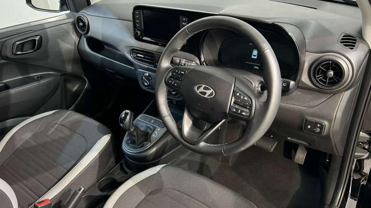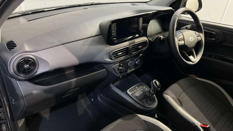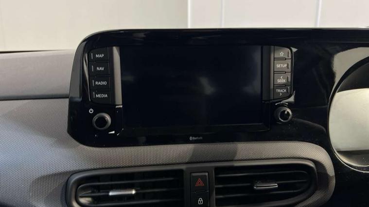 Apple car play/Android Auto, Bluelink mobile remote connectivity, Bluetooth connectivity with voice recognition, Cruise control, Driver attention alert system, eCall emergency call system, Forward Collision-Avoidance Assist (FCA) - Pedestrian/Cyclist, Front USB-C charging and USB-A data, Full-width 4.2" LCD instrument cluster, Intelligent speed limit assist, Lane departure warning system with lane keep assist - LKAS, Lane follow assist, PAS, Rear parking sensors, Rear view camera with guidelines, Roadside assistance, Start/Stop function, Tailgate, Trip computer, 2 front/2 rear speakers, Rear USB-C device charger, Steering wheel audio, phone and cruise controls, 1 speed non intermittent rear windscreen wiper, Black finish on B pillars, Body colour door handles, Body coloured bumpers, Body coloured door mirrors, Electric front windows, Electric rear windows, Electrically adjustable and heated door mirrors, Flat metal emblem, Front grille in matte black, Front intermittent wipers, Halogen daytime running lights, Halogen headlights, Headlights inner with Black Blade design, Heated rear window, High beam assist, Indicator light on door mirrors, Rear roof spoiler with integrated LED brake light, Rear side wing doors, 12v power outlet - front, 3 seat bench in 2nd row, 60/40 split folding flat to floor rear seats, Air conditioning, Auto light control, Bottle holders in front/rear doors + front centre console, Cabin and luggage compartment interior lighting, Cloth upholstery, Driver + passenger vanity mirrors, Driver's seat height adjustment, Driver/passenger sunvisors with ticket holders, Floor mats, Front door pockets, Front Head Restraints - Vertical and Horizontal Adjustment, Glove compartment, Height adjustable steering column, Isofix child seat preparation, Leather multifunction steering wheel, Rear door pockets, Single front passenger seat, Vertical adjustment rear head restraints, 3x3 point rear seatbelts, Airbags - front, front side and curtain airbags, Anti-lock brake system (ABS), Autonomous emergency braking (AEB) with forward collision warning system, Brake assist function, Childproof rear door locks, Electronic stability control, Front and rear seatbelt reminder, Front seatbelt pretensioners, Hill start assist control (HAC), Passenger airbag deactivate switch, Traction control, Tyre pressure monitoring system, Immobiliser, Perimeter alarm, Rear occupant alert, Remote central locking, Second remote key, Speed sensitive auto door locking, 15" Alloy wheels, Tyre repair kit,