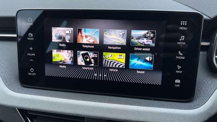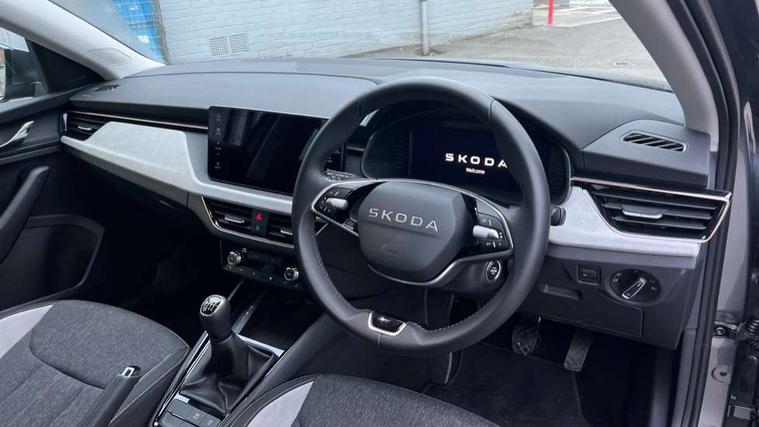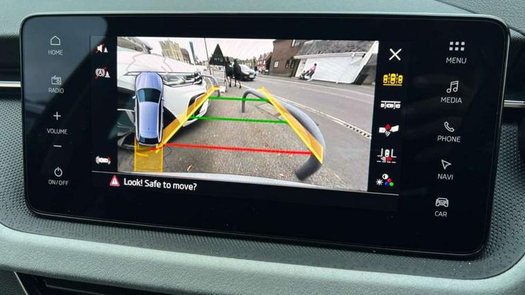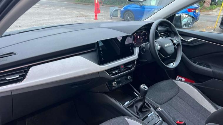 Advanced driver attention and drowsiness monitor, Bluetooth, e-Call (emergency call), Front assist system, PAS, Rear parking sensors, Rear view camera, Speed limiter, Tailgate, Traffic sign recognition, Virtual Cockpit - 10.25" digital display, Voice control system, Wireless smartlink, 4 USB C ports, 8 Speakers, 9.2" Skoda navigation display, DAB radio, Auto dimming rear view mirror, Automatic headlamp activation with Coming home and Leaving home feature, Automatic high/low beam, Automatic intermittent wipers, Body colour bumpers, Body colour door mirrors and handles, Chrome moulding around grille, Chrome window frames, Front and rear electric windows, Heated rear window, LED 3rd brake light, LED brake lights, LED daytime running lights, LED front turning lights, LED high beam, LED low beam, Light sensors, Privacy glass, Rear LED fog light, Rear side wing doors, Rear wiper, Tinted windows, Unique dark chrome design logo on alloy wheels, 12V socket in luggage compartment, 3 seat bench in 2nd row, Ambient lighting in white/red, Black / Copper armrest stitching, Cargo elements, Chrome inner door handles, Copper hotstamping, Door inserts in accent black, Driver and passenger sun visors with vanity mirror, Dual zone climate control, Front and rear roof lights, Front centre armrest, Front head restraints, Glasses storage in roof liner, Height adjustable driver seat, Height adjustable passenger seat, Ice scraper, Illuminated glove compartment, Inner circulation control with pollen filter, ISOFIX for front passenger seat, Isofix preparation for back seats, Leather gearknob and handbrake lever, Lodge cloth upholstery, Luggage net under rear parcel shelf, Manual lumbar support for front seats, Net package and top tether hooks in boot space, Pearl grey ceiling, Pocket on the back of both front seats, incl. mobile phone pockets, Rear centre armrest, Single front passenger seat, Skoda lettering on steering wheel, Textile floor mats, Third rear headrest, Ticket holder, Top tether for front passenger seat, Umbrella in driver's door, Convenience pack without rear camera - Scala, 3x3 point rear seatbelts, ABS, Child locks, Curtain airbags and front side airbags, Disc brakes, Driver and front passenger airbags, ESP, Hill hold control, Manual leather parking brake, One tone horn, Passenger airbag switch off function, Seatbelt reminder for driver and front passenger, Tyre pressure monitoring system, Anti theft alarm system with interior monitoring, backup horn and towing protection, Anti-theft wheel bolts, Remote central locking with 2 remote folding keys, SAFE function for remote central locking, Decorative inserts,