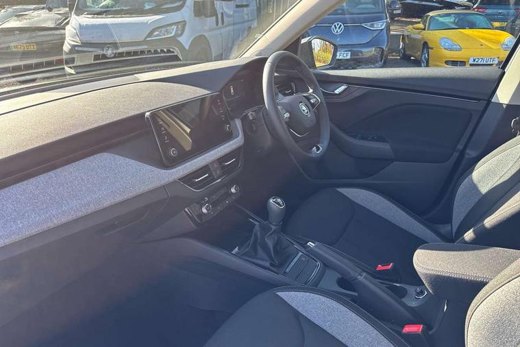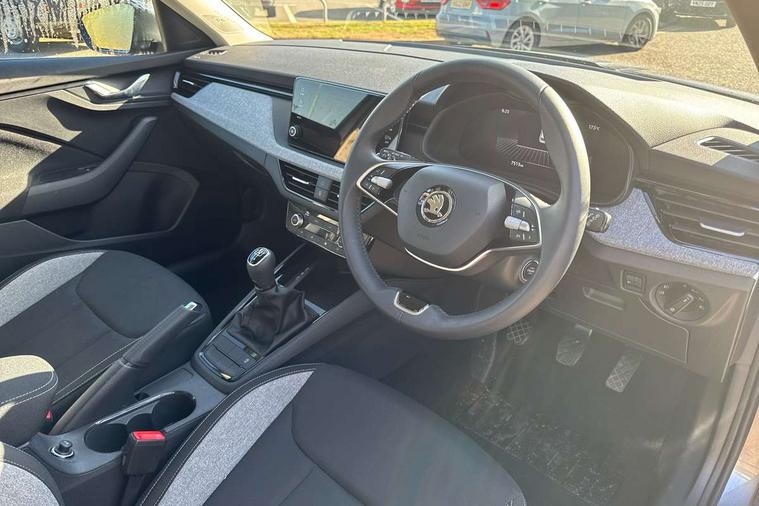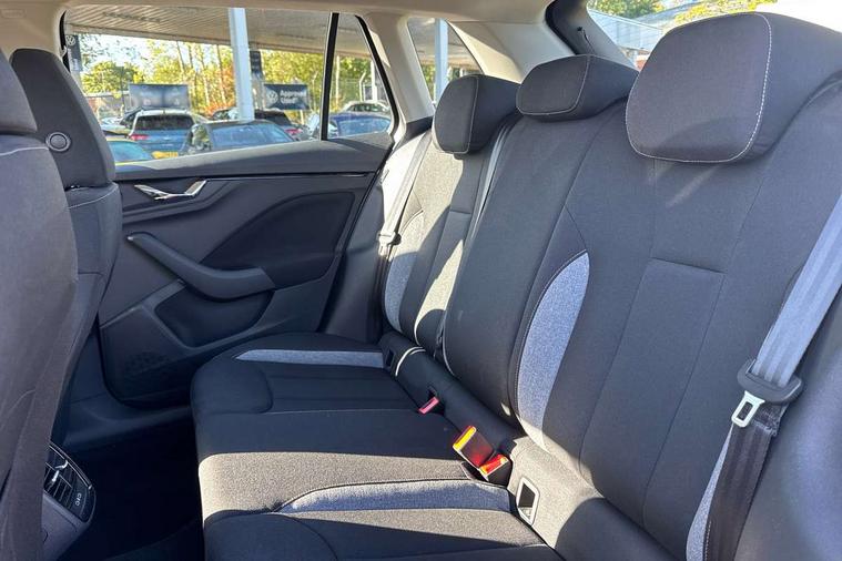 8" Digital display, Advanced driver attention and drowsiness monitor, Bluetooth system, E-call, Front assist system, PAS, Rear parking sensors, Service indicator, Speed limiter, Traffic sign recognition, Wireless smartlink, 4 USB C ports, 8 Speakers, 8.25" Skoda infotainment display, DAB Digital radio, Auto dimming rear view mirror, Automatic headlight control with coming home and leaving home feature, Black roof rails, Body colour bumpers, Body colour door mirrors and handles, Chrome grille surround, Front and rear electric windows, Full LED headlights, Heated rear window, LED daytime running lights, LED front turning lights, LED high beam, LED low beam, LED third brake light, Rear LED fog light, Rear side wing doors, Rear wiper, Ticket holder inside windscreen, 12V socket in luggage compartment, 3 seat bench in 2nd row, Black hotstamping, Cargo elements, Chrome inner door handles, Driver and passenger sun visors with vanity mirror, Dual zone climate control, Front and rear roof lights, Front centre armrest, Front head restraints, Glove compartment with illumination, Height adjustable driver seat, Height adjustable front passenger seat, Ice scraper, Inner circulation control with pollen filter, ISOFIX on front passenger seat, Isofix preparation for back seats, Krepp recycled decor inserts, Leather gearknob and handbrake lever, Loft cloth upholstery, Manual lumbar support for front seats, Net package and top tether hooks in boot space, Net under rear shelf, Overhead glasses storage compartment, Pocket on the back of both front seats include mobile phone pockets, Rake/reach adjustable steering wheel, Reading lights, Satin black door inserts, Single front passenger seat, Textile floor mats, Third rear headrest, Top tether for front passenger seat, Umbrella in driver's door, 3x3 point rear seatbelts, Airbags - driver and front passenger, Disc brakes, ESP, Extended and predictive pedestrian/cyclist protection, Front passenger airbag deactivation switch, Front side airbags with curtain airbags, Hill hold control, Manual leather parking brake, Manual rear child locks, One tone horn, Seatbelt reminder for driver an co-driver, Traction control, Tyre pressure monitor, Anti-theft alarm system with interior monitoring, backup horn, towing protection and remote central locking with SAFE system, Anti-theft wheel bolts, Electronic engine immobilizer,