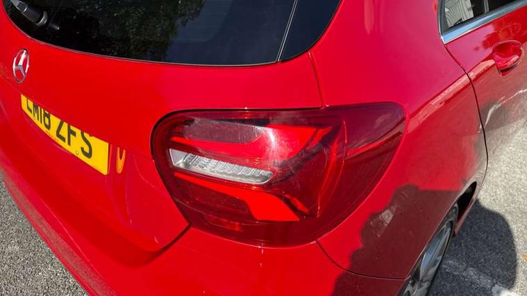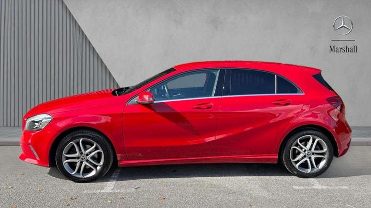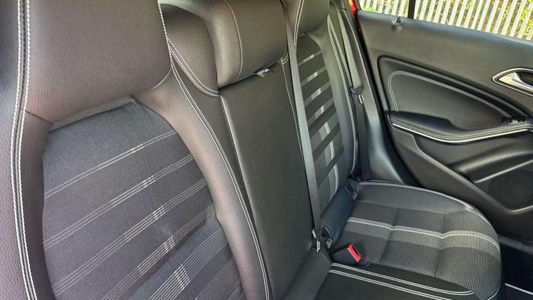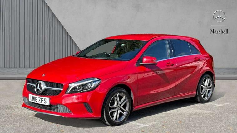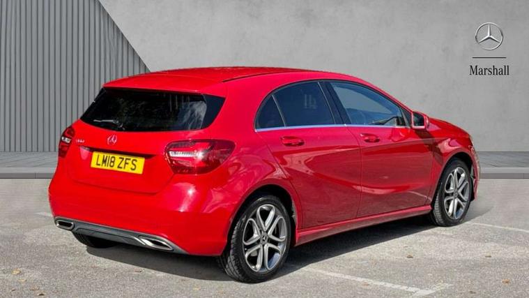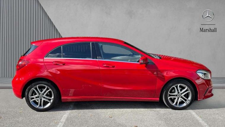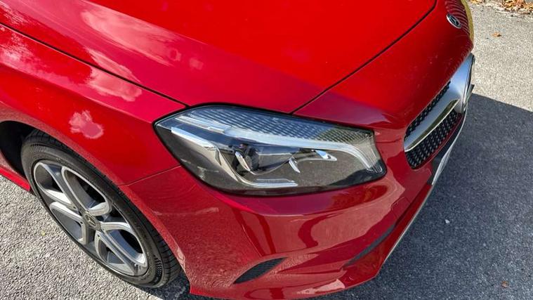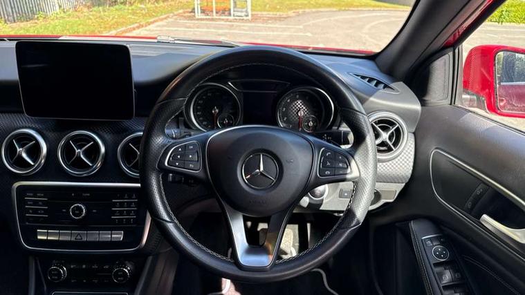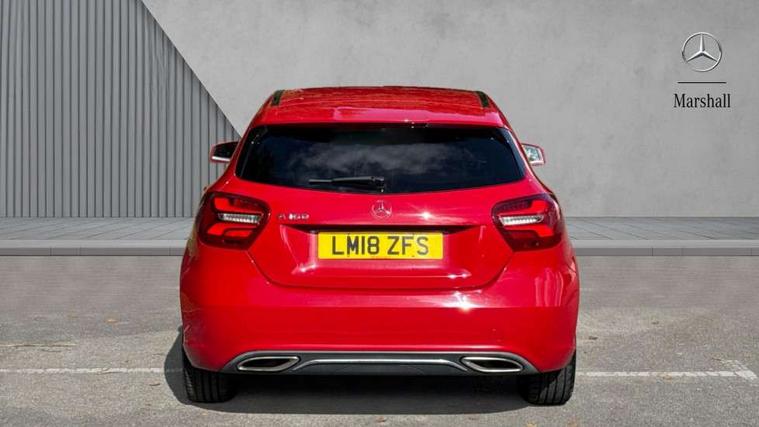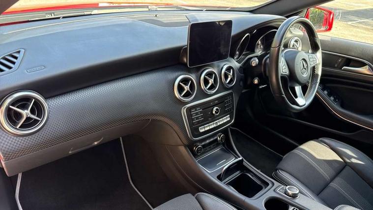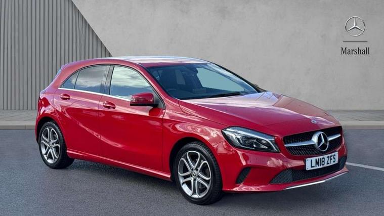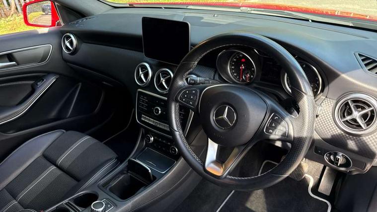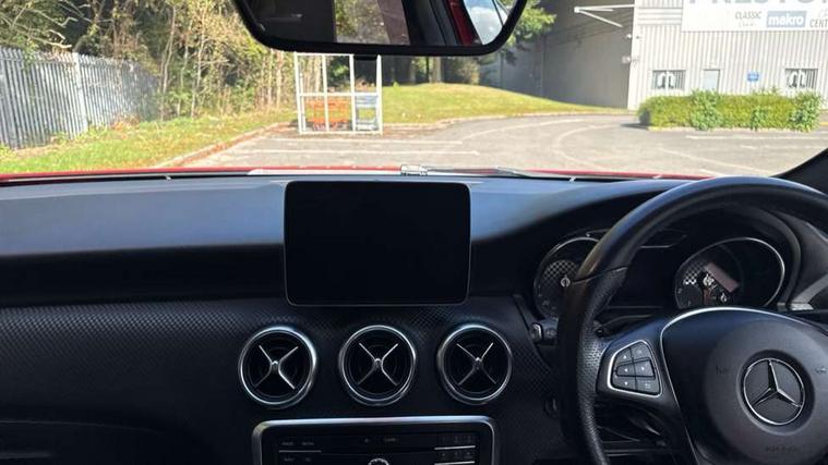 8" colour display screen, Attention assist, Bluetooth interface for hands free telephone, Bulb failure indicator, Collision prevention assist plus, DYNAMIC SELECT with a choice of driving modes (ECO, Comfort, Sport, Sport+ and Individual), External temperature gauge, Garmin Map pilot navigation system with SD Card, Low fluid warning light, Reversing camera, Service indicator (ASSYST PLUS), Smartphone integration with Apple CarPlay, Speed sensitive parameter assisted steering, Speedtronic cruise control, Trip computer, Comfort suspension, Media interface, Mercedes Audio 20 radio/single CD + telephone keypad, SD card slot, USB port, Adaptive brake lights, Body colour bumpers, Body colour door handles, Body colour side skirt, Body coloured door mirrors, Chrome beltline trim, Diamond radiator grille with black pins with one louvre in silver + chrome insert, Electric adjustable heated door mirrors, Electric front windows, Electric rear windows, Headlamp assist, Heated rear window with timer, LED daytime running lights, LED Headlights, LED tail lights, Privacy glass, Rain sensor windscreen wipers, Rear wiper, Twin Trapezoidal tailpipes, 1/3 to 2/3 split folding rear seats, 12V socket, 3 spoke perforated leather multifunction sports steering wheel, ARTICO man-made leather/Maringa cloth upholstery, Auto Mercedes-Benz child seat recognition sensor, Black headlining, Dual zone automatic climate control, Footwell lights, Front and rear reading lights, Front centre armrest with storage compartment, Front head restraints, Front sport seats, Gearshift paddles on steering wheel, Height adjustable front seats, Height/reach adjustable steering column, Illuminated door sills, Illuminated glovebox, Illuminated storage compartment, Isofix rear child seat preparation, Load securing rings in luggage compartment, Luggage compartment cover, Rear head restraints, Storage compartment under load area floor, Sunvisors with illuminated vanity mirrors, Twin front cupholders, Seat comfort pack - A Class, 3 rear 3 point seatbelts, ABS with Brake Assist, Active bonnet, Adaptive brake system, Black seat belts, Child proof door locks, Crash responsive emergency lighting, Drivers knee airbag, Dual stage driver/passenger airbags, Electronic parking brake, ESP with ASR, Front and rear seatbelt reminder, Front head airbags, Front passenger seat occupancy sensor, Front side airbags, Hill start assist, Tyre pressure monitoring system, Warning triangle and first aid kit, Window airbags, Alarm system/interior protection/immobiliser, Keyless ignition, Remote central locking, Checked pattern trim, Chrome air vent surrounds, 17" 5 twin spoke alloy wheels painted in black with high sheen finish, Tirefit sealant with electric air pump,