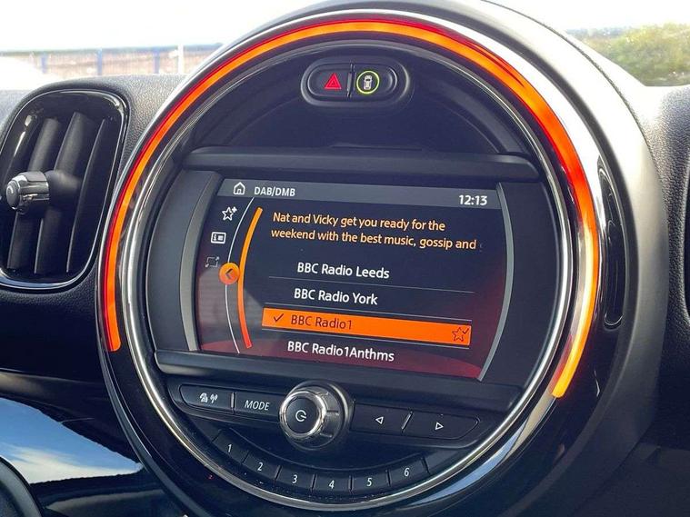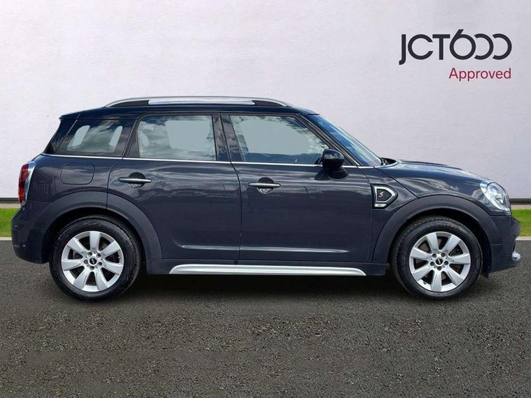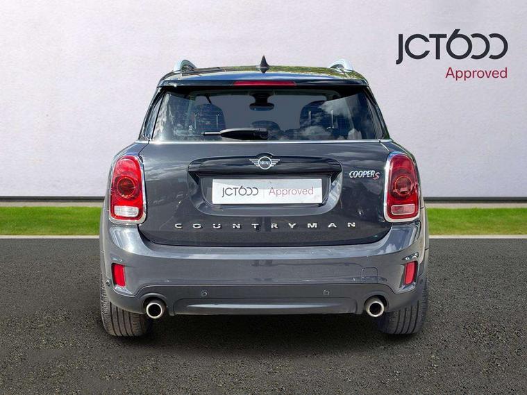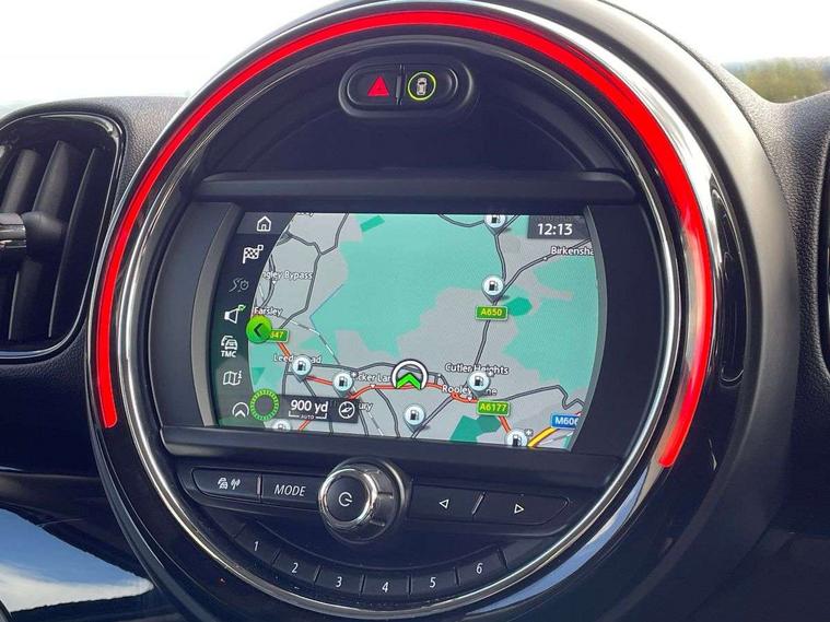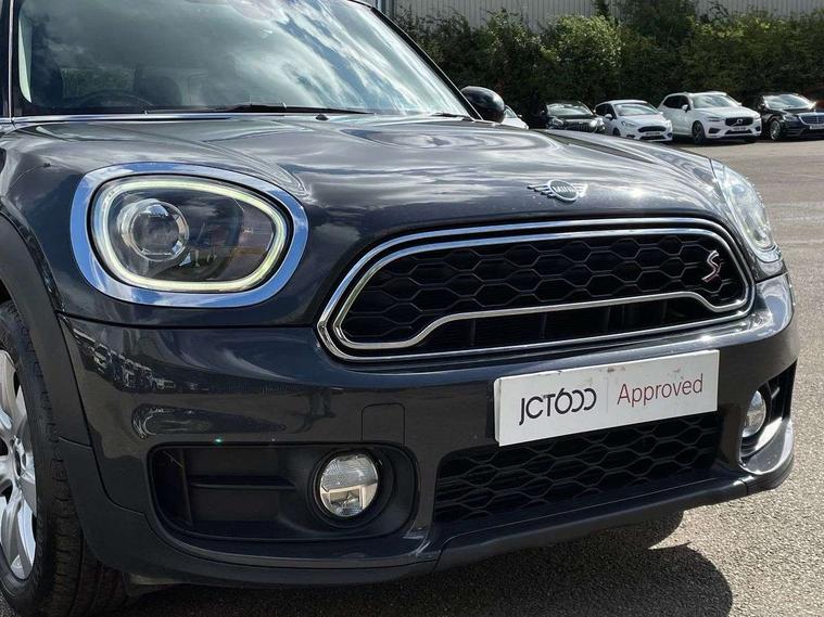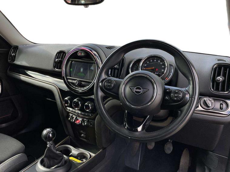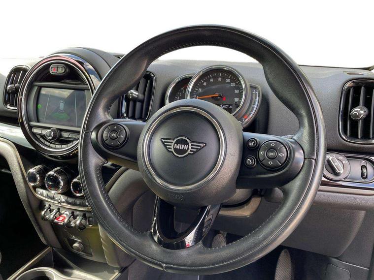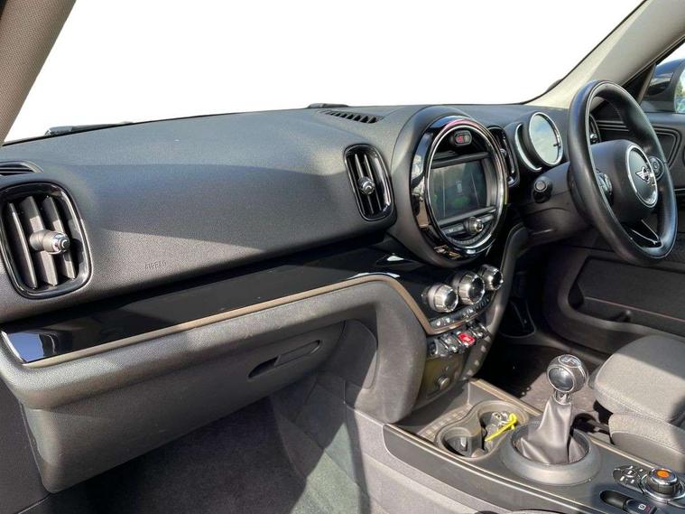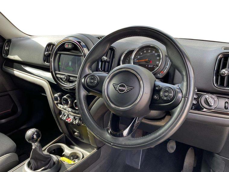 Active Guard incl speed limiting and lane departure functions with auto steering, and front collision warning with brake intervention, Automatic start/stop function with brake energy recuperation, Electro-mechanical speed dependant steering assistance, Instrument cluster, Mini E-call, MINI TeleServices, On board computer, Rear parking distance control, Double Vanos system, Fully variable valve control, High precision injection, Performance Control, FM tuner and DAB digital radio, Bonnet scoop, Chrome border honeycomb structure radiator grille with S badge, Chrome fuel filler cap, Day time driving lights, Dynamic brake lights, Electric windows, Heated rear window, Heated windscreen washer jets, Metal door sill strips with Cooper S imprint, Model logo, Model logo on Tailgate, Rain sensor with auto headlights, Rear fog lights, Rear window wiper, Side scuttle panel with integrated indicator, Split rear doors, Sun/heat protection glass, Twin exhaust tailpipe, White indicator lenses, 12V Accessory socket in centre console, 360L luggage compartment capacity, 4 lashing eyes in luggage compartment, 40:20:40 split folding rear seats, Chrome interior highlights, Colour line - Carbon black, Cupholders, English handbook, Glove compartment, Headliner with grab handles and clothes hooks, Height and length steering column adjustment, Isofix rear child seat preparation, Leather gearshift lever and handbrake gaiters, LED reading lights, vanity mirror lights, front foot well light and spotlight on front seats, Manual air conditioning, Mechanical seat adjustment, driver seat height adjust, forward/back and front seats backrest, Multifunction steering wheel, Passenger seat height adjuster, Storage compartments in doors, Sunvisors with vanity mirrors, Excitement pack - Countryman, Navigation pack - Countryman, 2 tone horn, 3 point seatbelts on all seats, 6 Airbags - front, side, head and seat belt tensioners, Anti-lock braking system (ABS), DSC - Dynamic Stability Control, Electronic handbrake, Front and rear disc brakes, Hill start assist, Tyre pressure monitoring system, Alarm system with tilt sensor, monitoring doors, bonnet interior and tailgate, Auto drive away locking, Deadlocking function, Electronic vehicle immobiliser, Locking wheel bolts, Start/stop toggle with keyless go, Tool kit,