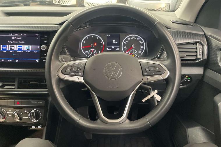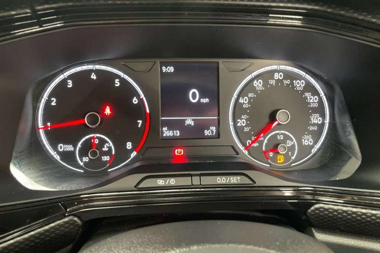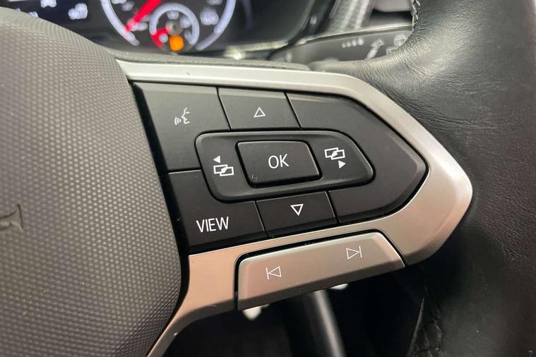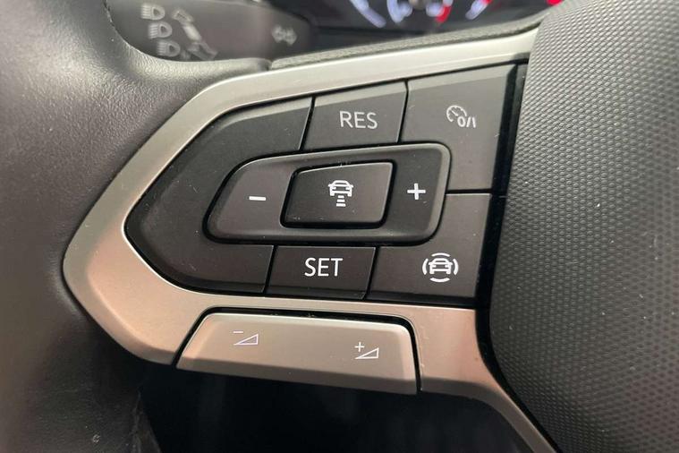 'Lights On' Reminder warning buzzer, Adaptive cruise control including front assist, forward collision warning, autonomous emergency braking, speed limiter, Blind spot monitoring, Bluetooth telephone and audio connection for compatible devices, Car information display, Digital cockpit, Driver alert system, eCall emergency call system, Lane assist, Low washer fluid warning light, Multifunction computer with visual gear change recommendation for fuel consumption, Operating permit alteration, Power assisted speed sensitive steering, Speedo, rev counter, electronic odometer, trip, service interval display, exterior temperature and fuel gauge, Stop/start system, Warning sound and light for doors and tailgate open, Warning sound and light for front seatbelts unfastened, We Connect Go Dongle, Wireless Car net app connect with Apple CarPlay, combined functionality of Apple CarPlay/Android Auto and MirrorLink, Battery regeneration during braking, Misfuel prevention device, 2x USB connection with USB charging sockets and in rear centre console, DAB Digital radio receiver, Diversity antenna for FM reception, Multi device interface (MDI) with USB connection, Music playback - MP3, WMA and AAC files, Premium USB cable for Apple or Android smartphone compatibility, Simultaneous pairing of 2 compatible mobile devices, Title and cover art display, Automatic hazard lights activation under emergency braking, Black roof rails, Body colour door handles, Body colour door mirrors with integrated indicators, Body coloured bumpers, Dusk sensor + automatic driving lights, Electrically foldable, adjustable and heated door mirrors with reverse activated kerb view adjustment on passenger's side, Front and rear electric windows, Front fog lights with static cornering function, Galvanised body, Heated rear window, LED third brake light, Lower door sills and door pillars in black, Radiator grille with high gloss surface and chrome strip, Rear fog light on one side, reversing light on both sides, Rear lights incorporating LED technology, Rear side wing doors, Rear window aerial, Rear windscreen washer and wiper with interval delay, Reflectors in all doors, Tailgate with integrated roof spoiler, Windscreen wipers/ intermittent wipe + 4 position delay, 12V Accessory socket in centre console, 3 rear head restraints and 3 rear three point seat belts with ECE label, 3 seat bench in 2nd row, 60/40 split folding rear seat backrest, Drawer under drivers seat, Driver and front passenger sunvisor with vanity mirror, Driver's sunvisor with ticket holder, Dust and pollen filter, Front and rear reading lights X 2, Front centre armrest with storage compartment, Front seat back storage pockets, Front seats with adjustable lumbar support, Glovebox, Heating and fresh air system with 4 stage blower, Height/reach adjust steering wheel, Instrument lighting white adjustable panel illumination, Interior light with delay, Isofix child seat preparation for 2 rear child seats, Luggage compartment cover, Luggage compartment lighting, Manual air conditioning, Manual front seats with height adjustment, Moveable and foldable Rear bench seat, Storage compartment in drivers and front passengers door, Three spoke multi-function leather trimmed steering wheel and gearknob, Triangle ties/pearl cloth upholstery, Variable boot floor, Anti-lock Braking System (ABS) with Hydraulic Brake Assist (HBA), Automatic post collision braking system, Driver and front passenger safety-optimised head restraints, Drivers and Front Passengers airbags with front passengers airbag deactivation switch, ESC with EDL, ASR, EDTC and trailer stabilisation function, Front and rear curtain airbags, Front seat side impact airbags, Height-adjustable front three-point seat belts with tensioners, Hill start assist, Pre crash preventive occupant protection, Rear door child safety locks, Rigid safety cell with front and rear crumple zones, Single torn horn, Tyre pressure loss indicator, Volkswagen roadside assistance, Alarm with interior protection and deactivation via infotainment system, Child security locks in rear doors, Electronic engine immobiliser, Remote tailgate unlocking using key fob, Pineapple decorative inserts in dash and doors, 17" Clayton alloy wheels + anti theft wheel bolts, Breakdown kit,