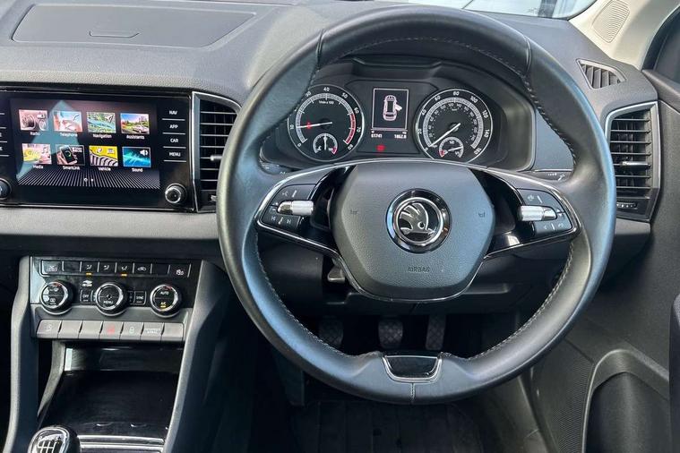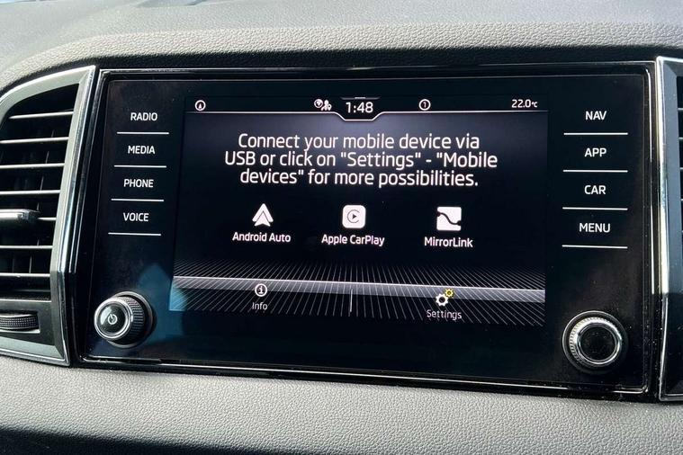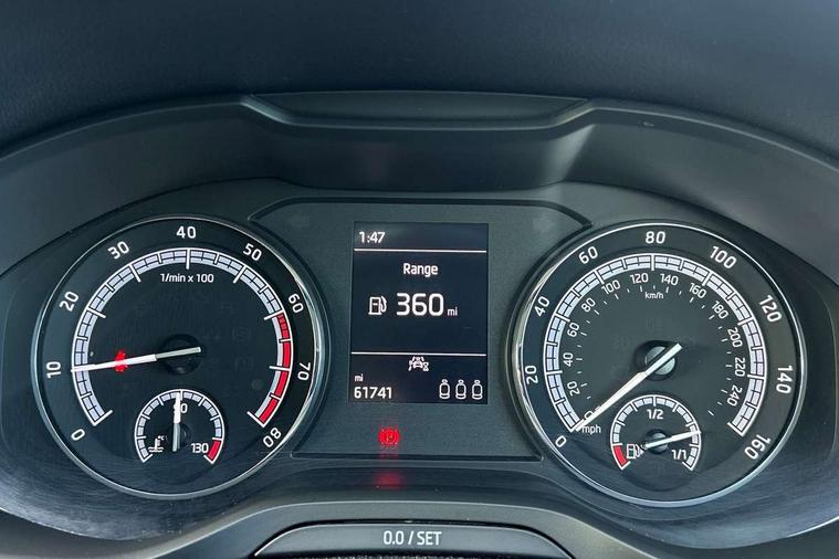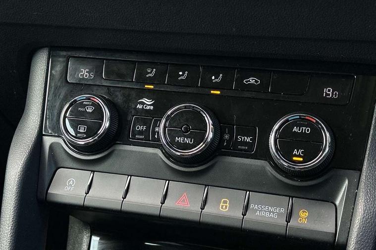 Care connect, Driver alert system, Driver fatigue sensor, Driver profile selection, Electro-mechanical PAS, Outside temperature gauge, Service interval indicator, SmartLink + wireless for Apple and wired for Android, Start/stop system with regenerative braking, USB C Port x 2 in front centre console, WLAN, DAB radio with Bluetooth, USB connection, Acoustic glass, Aero front windscreen wipers with intermittent function, Automatic headlight control system, Black electric window control buttons, Body colour door mirrors and handles, Body coloured bumpers, Electric front and rear windows with child proof lock, Electrically adjustable heated folding and auto dimming door mirrors, Heated rear windscreen, LED rear lights with high functionality, Light assistant (coming/leaving home/tunnel light), Privacy glass, Safety reflectors on front doors, Third brake light, 1.5 litre bottle holders in driver and front passenger door panels, 12V socket in boot, 12v socket in front centre armrest with storage compartment and rear air vents, 2 Folding hooks and nets in boot, 2 Front readings lights for driver and passenger, 3 rear height adjustable headrests, 4 foldable roof handles with rear coat hooks, 4 lashing points on luggage floor, Backrest release, Cargo elements in boot, Chrome inner door handles, Driver and passenger seats height adjust, Folding tables on the front seat backrests, Front head restraints, Front seat and rear pockets, Height adjustable front three point seats belts with tensioners, Height/reach adjust steering wheel, Ice scraper, Illuminated and cooled glovebox, Illuminated luggage compartment, Isofix child seat preparation outer rear, Manual lumbar support for front seats, Net programme in boot, Pen holder, Pollen filter, Rear boot cover, Rear reading lights, Rear seats fixed folding and divided 60:40, Safety vest holder, Storage box in upper central dashboard closed, Sunvisors with illuminated vanity mirrors, Umbrella under passenger seat, Airbags - Front side, head, knee and curtain, Automatic door unlocking in case of crash, Automatic fuel cut off in case of crash, Driver airbag, Electronic parking brake with auto hold function, Emergency rear braking signal, ESC including ABS, MSR, ASR, EDS, HBA, DSR, RBS, MKB and traction control, Front assist radar scanning of the space in front of the car with automatic braking, Hill hold control, Passenger airbag with switch-off function, Pedestrian monitor, Seatbelt reminder signalisation and pretensioner for all seats, Three point seatbelts rear, Two tone horn, Tyre pressure display, Tyre pressure monitor, Alarm with interior monitoring, back up horn and tilt sensor with safe function, Electronic engine immobiliser, Remote central locking with 2 remote folding keys, Chrome framed air vents, Storage on wheel cover,