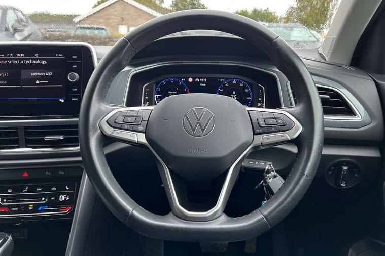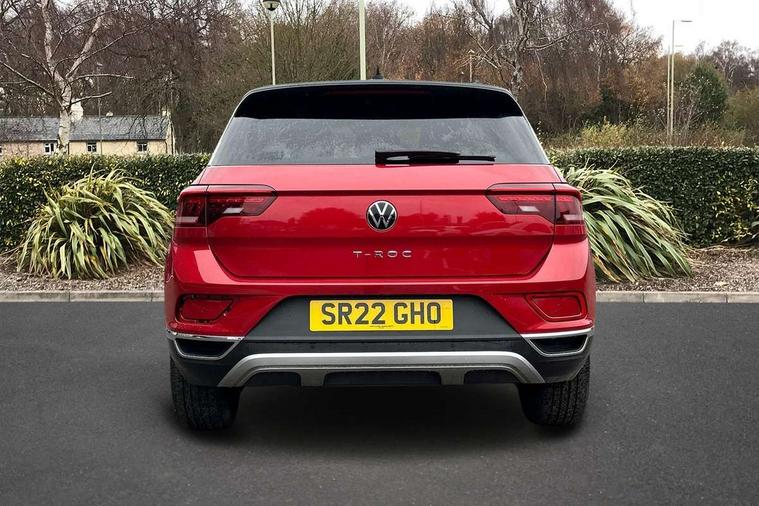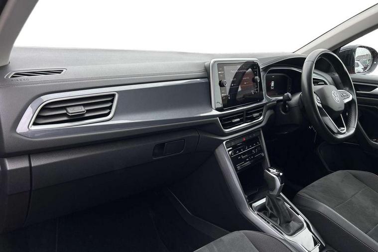 10.25" Digital cockpit pro, Bluetooth mobile phone interface, Driver alert system with fatigue detection, Driver tips and journey analysis, Emergency call service, Lane keeping system Lane Assist, Modified key software - reduce switch off time for key status change to Long no motion, Online services, Park assist including front and rear parking sensors, Service interval indicator, Tailgate/trunk lid release from outside, Think blue trainer driver tips and journey analysis, Warning sound and light for front seatbelts unfastened, Wireless app connect, Battery regeneration during braking, Start/stop function with battery regeneration, Diversity antenna for FM reception, Front and rear 6 speakers, Music playback - MP3, WMA and AAC files, Premium USB cable in choice of either Apple or Android smartphone compatibility, SD card slot, Simultaneous pairing of 2 compatible mobile devices, Title and cover art display, We Connect and We Connect Plus functionality, 3rd brake light, Auto dimming interior rear view mirror, Automatic hazard lights activation under emergency braking, Automatic headlight control with LED separate daytime running lights with coming/leaving home function, Body colour sports bumpers with silver metallic underbody fascia, Dynamic headlight range control with self adjusting whilst driving, Extended roof spoiler, Exterior mirrors aspherical on driver side, convex on front passenger side, External USB type C socket and charging sockets, Front windscreen wiper with intermittent wipe and 4 position delay, Heated rear window, LED Plus headlamps, LED rear combination lamps, LED rear number plate lights, LED tail lamp rear comination lamps, Light mode for poor weather, rain, fog or snow, Power windows with comfort operation and circuit breaker, Rain sensor, Rear exhaust tailpipe, Rear fog light on one side and reversing lights on both sides, Rear side wing doors, Rear wash/wipe with intermittent wipe setting, Remote electrically foldable door mirrors, puddle lights and reverse activated passenger's door mirror, 12V power socket in centre console, 3 rear head restraints, 3 seat bench in 2nd row, 4 load lashing points in luggage compartment, Air care climatronic air conditoning system with active combination filter and 2-zone temperature control, Chrome plated radiator grille inserts, air vent surrounds and light switch surrounds, Door and side trim panel with leatherette insert, Drawer under drivers seat, Front + rear carpet mats, Front centre armrest, Front comfort sports seats, Front cupholders x 2, Front footwell illumination, Instrument lighting, white adjustable panel illumination, Interior ambient lighting and surround lighting, Interior light delay, Isofix child seat preparation, Leather gearshift handle, LED interior light with switch off delay/dimmer and 2 front/rear LED reading lights, Load-through provision with cup holder when folded down ('Unsplit rear seat bench, split folding backrest, with centre armrest), Luggage compartment lighting, Non-folding front passenger seat backrest, Single front passenger seat, Storage compartment in left and right luggage area, Storage compartment in rear doors, Storage compartments in driver and front passenger doors, Sunvisors with illuminated vanity mirrors, Variable boot floor, height adjustable and removable, Driver assistance pack without proactive passenger protection - T-Roc, 3 point height adj front seatbelts + pretensioners, 3 point seatbelts in outer rear with ECE label, ABS, Child locks on rear doors, Driver and front passenger airbag with front passenger airbag deactivation, Driver and front passenger safety-optimised head restraints, Drivers seatbelt reminder, Electronic parking brake, Electronic Stability Control (ESC) inc EDL (Electronic Differential Lock) and ASR (Traction Control), Front and rear passengers curtain airbag system including front side airbags, Front assist with city emergency braking and pedestrian monitoring, Front seat side impact airbags, Predictive pedestrian protection, Rear disc brakes, Single tone horn, Tyre pressure loss indicator, Volkswagen roadside assistance, Alarm with interior protection, Anti-theft alarm system with interior monitoring, backup horn, and towing protection, Remote central locking with SAFELOCK, radio remote control with 2 remote control folding keys, Trims for alloy wheels,