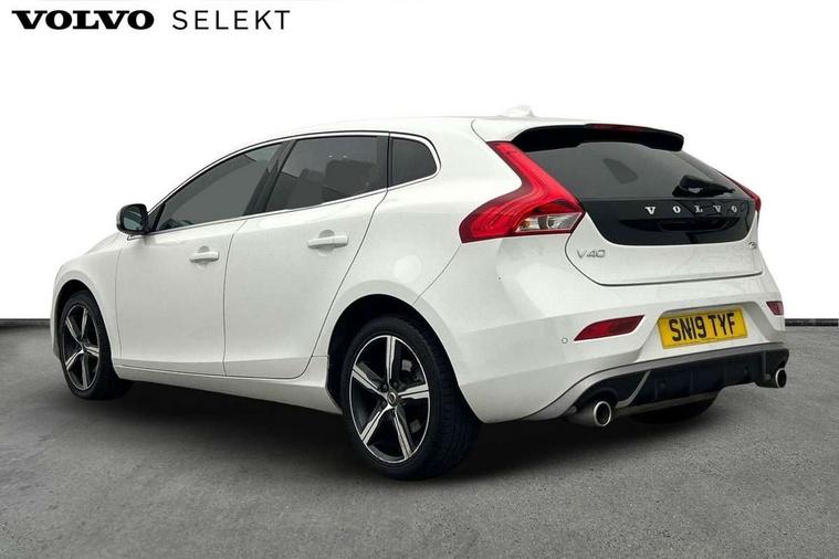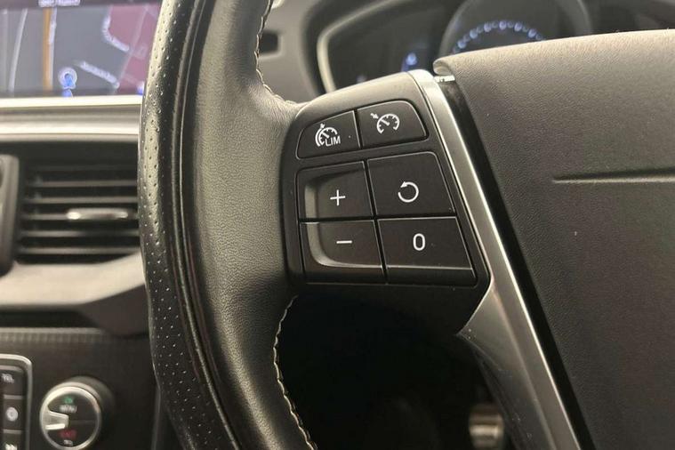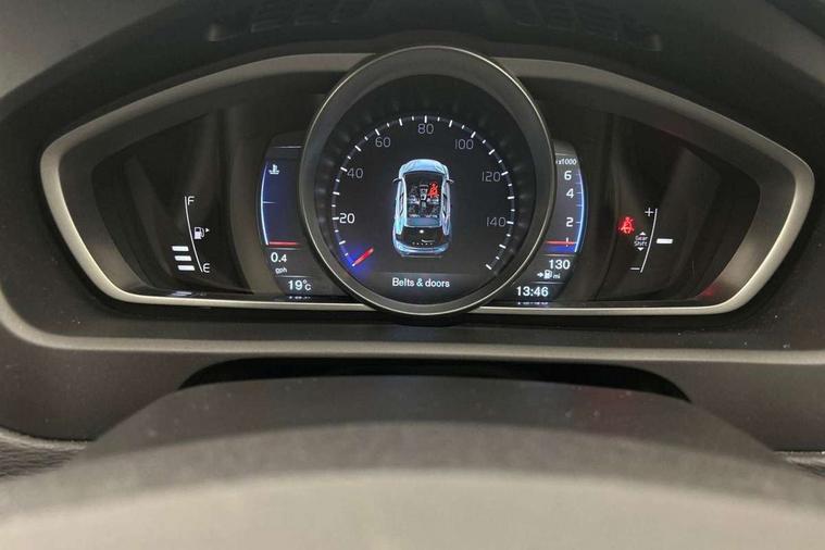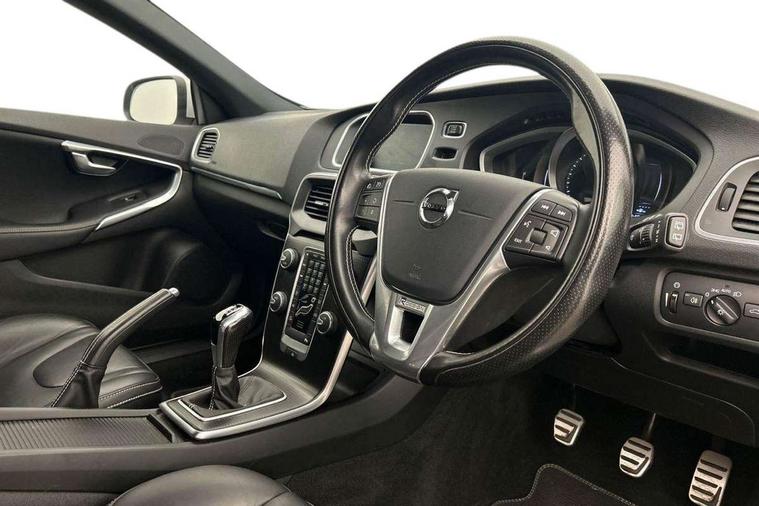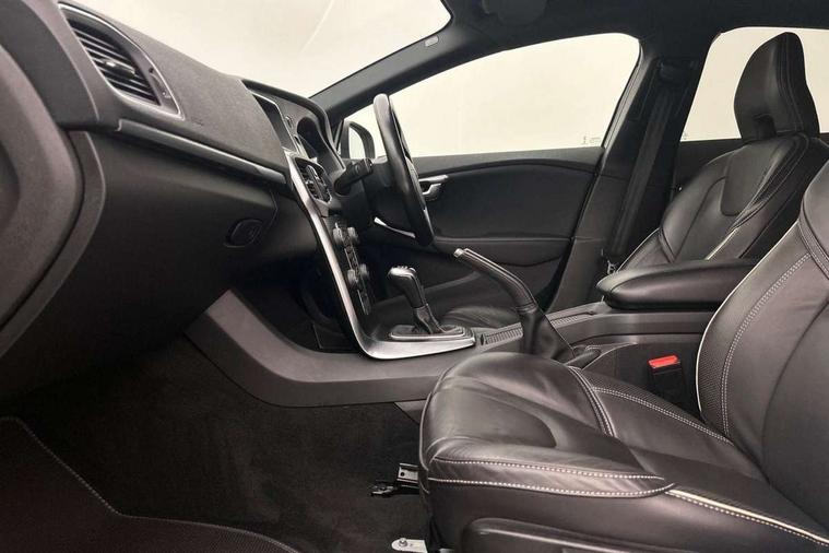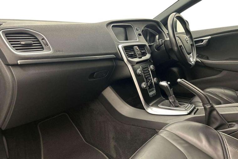 Active TFT crystal driver's instrument display, Front park assist, Information centre, Intelligent driver information system (IDIS), Rear park assist, Rear parking camera, Sensus navigation system, Service interval indicator, Speed limiter, Speed sensitive steering, Dynamic chassis, DAB Digital radio, Steering wheel audio controls, Active bending LED headlights, Adaptive brake lights, Auto dimming rear view mirror, Automatic folding door mirrors with ground lights, Automatic headlights, Body colour bumpers, Body colour door handles, Dark tinted rear side windows, Dual exhaust pipes, Electrically adjustable and heated door mirrors, Frameless rear view mirror, Front and rear electric windows, Headlamp levelling, Headlight cleaning system, High level LED brake light, Home safe and approach lighting, LED daytime running lights, LED Headlights, Matt silver finish door mirrors, R Design front grille, R Design lower front nose, Rain sensor windscreen wipers, Rear diffuser, Rear tailgate emblem, Rear wiper, Roof spoiler, Silk metal window trim surround, Visible VIN plate, 12V socket in front + rear tunnel console, 3 spoke leather steering wheel with chrome trim and R design logo, 5 headrests, 60/40 split folding rear seat, A-pillar parking ticket holder, Adjustable front centre armrest, Charcoal headlining, Door sill tread plates, Electronic climate control (ECC), Flexible load floor and grocery bag holder, Folding front passenger seat with height/lumbar adjust, Footwell lights, Front cupholders, Front door step lamp, Front reading lights, Front sports seats, Front storage box, Height adjustable drivers seat with lumbar support, Height/reach adjustable steering column, Illuminated driver/passenger vanity mirrors, Illuminated gear knob, Isofix attachments on outer rear seats, Load cover, Lockable glovebox, Pollen filter, R Design leather sports upholstery, Rear armrest with cupholder, Rear reading lights, Rear theatre lighting, Sports floor mats, Sports pedals, WHIPS - Whiplash Protection System, 5 x 3 point seatbelts, ABS+EBA, City safety braking system, Drivers knee airbag, DSTC-Dynamic Stability and Traction Control, Dual stage driver's airbag, Dual stage passenger airbag, Front/rear seatbelt pre-tensioners, Hill start assist, Inflatable curtain, Manual rear child locks, Passenger airbag cut-off device, Pedestrian airbag system, Side airbags, Side curtain airbags, Side impact protection, Tyre pressure monitor, Warning triangle, Anti-theft alarm including immobiliser/volume sensor + level sensor, Deadlocking system, Key integrated remote control central locking, Locking wheel nuts, Stealth aluminium trim,