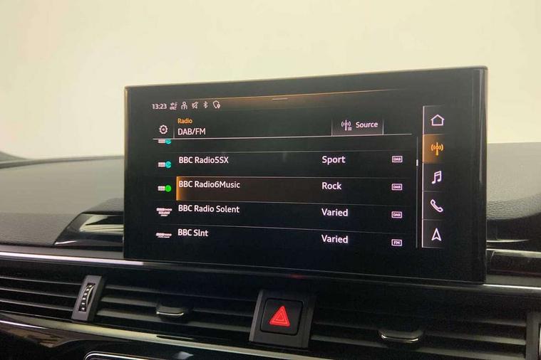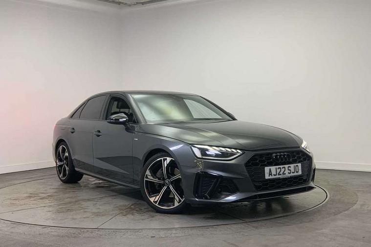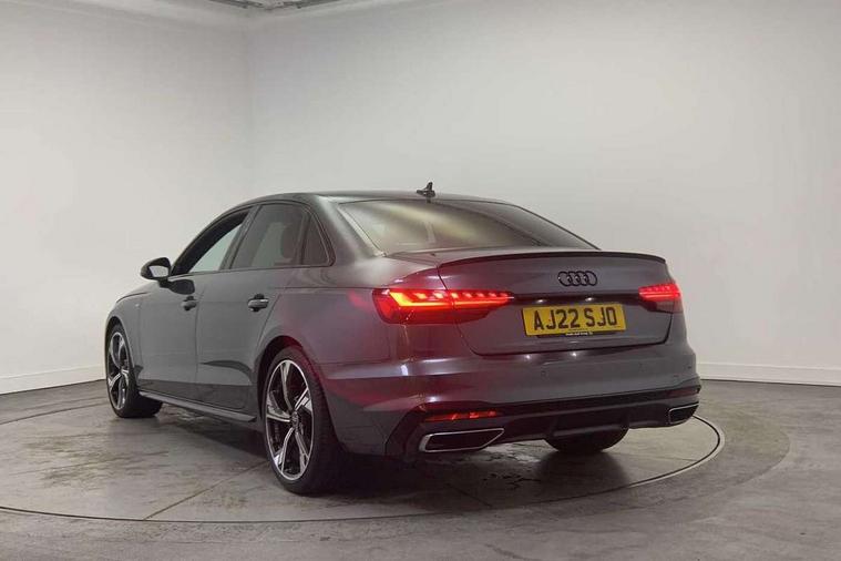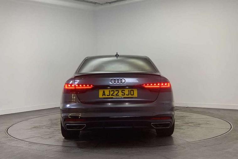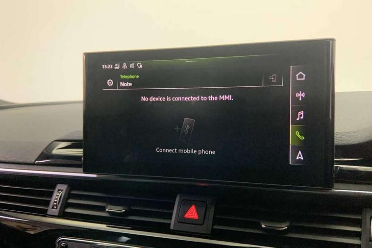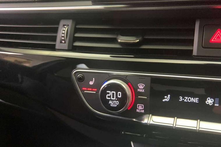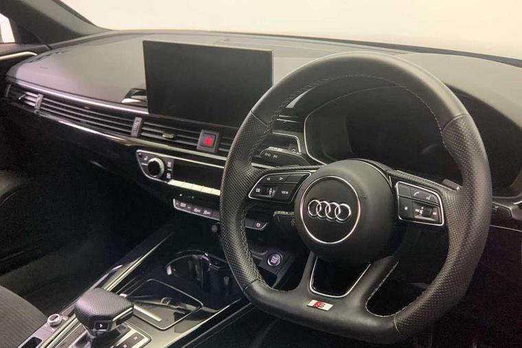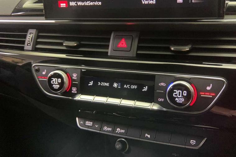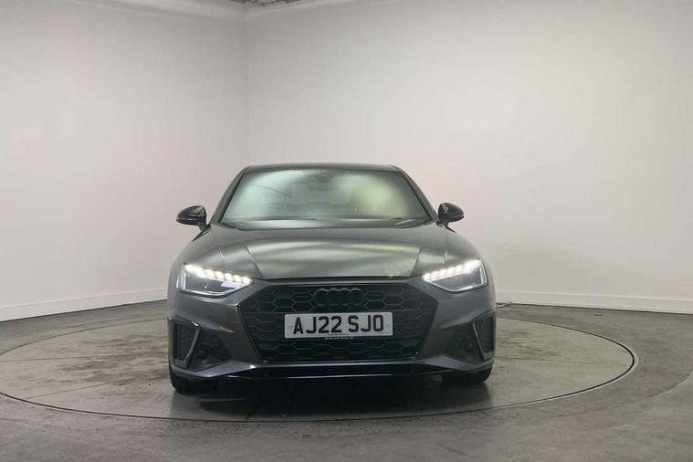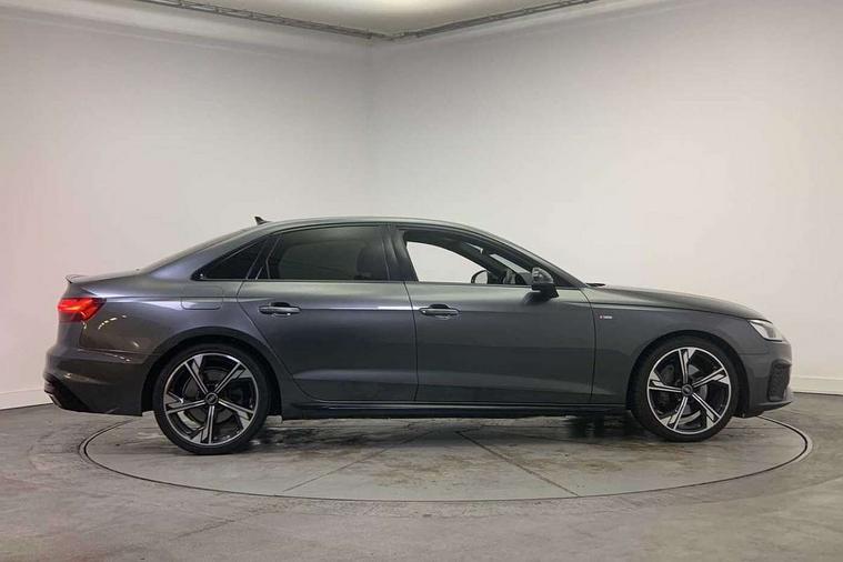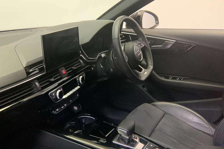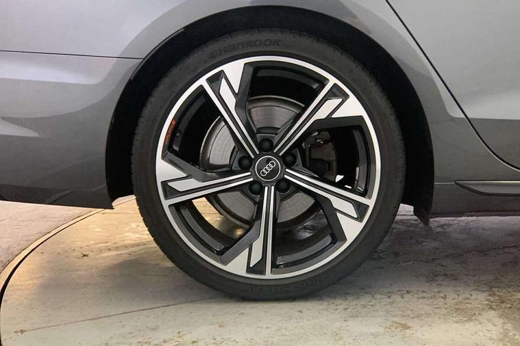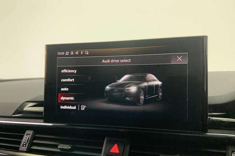 Audi connect safety and service (e-call), Audi connect with Amazon Alexa Integration, Audi drive select, Audi smartphone interface, Audi virtual cockpit, Automatic start-stop system with coasting functionality and efficiency programme, Bluetooth interface, Electric boot lid release, Electromechanical power steering, Email, calendar and text messages displayed via MMI, MMI Navigation plus with MMI touch includes 10.1" high resolution colour MMI display, 3D map, Voice control system, 54 litre fuel tank, Sports suspension lowered by 23mm, 2 USB charging ports, 8 passive loudspeakers, DAB digital radio reception, Auto dimming rear view mirror, Black Audi rings and black badging (model name in black badging, no engine badging), Body colour door handles, Body colour front spoiler lip, Body colour side sill trim, Electrically folding auto dimming/adjustable/heated door mirrors with LED side indicators and kerb view function for passenger side, Front and rear bumpers with side skirts, Front wing badges, Grained matt black side air inlets with matt aluminium silver inlay, High beam assistant, High gloss black B pillar trims and triangular rear door trim, LED headlights with LED rear lights + dynamic rear indicators + headlight adjustment and high beam, turning light + LED daytime running lights, LED third brake light, Matt aluminium silver tailpipe trim, Privacy glass, Rain and light sensors, Rear boot, Rear diffuser in matt titanium black with trim strip in matt aluminium silver, Rear side wing doors, Variable intermittent front wash/wipe, Windscreen with acoustic glazing, 4 way electric lumbar support for driver and front passenger, 40/20/40 split folding 3 rear seat bench in 3 parts with rear centre armrest, Black cloth headlining, Black perforated leather gearknob, Contrast stitching on seats, steering wheel and gear lever gaiter, Deluxe 3 zone electronic climate control, Door sill trims with aluminium inlay, Front and rear head restraints, Front centre armrest, Heated front seats, Illuminated door sill trims with S logo, ISOFIX child seat mounting and top tether, Manual seat adjustment, Single front passenger seat, Stainless steel pedals and foot rest, Tool kit, Black styling pack - A4 Saloon, LED Interior light pack - A4/S4, 3 rear seatbelts, 6 airbags - Driver, front passenger, curtain and side windows, Electronic Stabilisation Control (ESC) including ABS, ASR and EDL, Hill hold assist, Multi collision brake assist, Pop-up bonnet for pedestrian protection, Pre sense city, Rear door child safety locks, Seatbelt monitoring, Warning triangle and first aid kit, Anti theft alarm, Anti theft wheel bolts, Central locking, Keyless Go, Piano black finish inlay, Tyre repair kit,