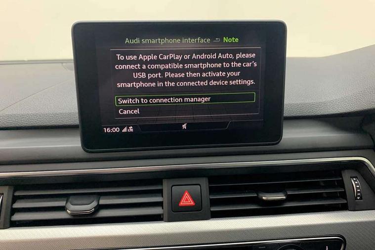 Non Smokers pack, Tyre repair kit, Anti theft alarm system, Anti theft wheel bolts, Immobiliser, Keyless Go, Remote central locking, CD player, DAB Digital radio, Two SDXC card slots, 6 airbags - Driver, front passenger, curtain and side airbags, Electromechanical parking brake, Electronic Stabilisation Control (ESC) including ABS, ASR and EDL, Front passenger airbag deactivation, Height adjustable front seatbelts, Hill hold function, Multi-Collision braking, Pop-up bonnet for pedestrian protection, Pre sense city, Seatbelt monitoring, Tyre pressure warning, Variable restraint system, Warning triangle and first aid kit, Air inlets in titanium black with matt aluminium inlay, Aluminium roof frame and window trim, Auto dimming rear view mirror, Body colour bumpers, Body coloured door mirrors, Chrome plated exhaust pipe, Electric adjustable heated door mirrors, Electric front windows, Front fog lights, High gloss black B pillar trims and triangular rear door trim, Rain and light sensors, Rear diffuser strip in matt aluminium silver, Twilight grey matt radiator grille in matt aluminium inlay, Windscreen with acoustic glazing, 2 x USB charging port with aux input socket, 3 spoke multi-function leather steering wheel, 4 way electric lumbar support for driver and front passenger, 40/20/40 split folding 2 seater rear seat bench with rear centre armrest, Adjustable steering column, Aluminium door sill trims, Centre console with cupholders, Cloth headlining, Deluxe 3 zone electronic climate control, Front centre armrest, Front head restraints, Front/rear floor mats, Gearshift paddles, ISOFIX child seat mounting and top tether, Jack and tool kit, Luggage compartment mat, Rear centre armrest, Rear headrests, Titanium grey headlining, 7" Colour driver information system, Audi connect, Audi drive select, Audi parking system plus with front and rear sensors, Audi smartphone interface, Automatic start-stop system with coasting functionality and efficiency programme, Bluetooth interface, Electric boot release, Electro-mechanical power steering, MMI Navigation, Service interval indicator, Voice control system,