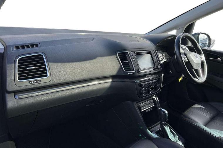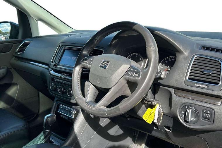 Cruise control, Driver alert system, Electric speed sensitive power steering, Front and rear parking sensors, Low fuel warning light, Multi function display, Outside temperature gauge, Stop/start system, Trip computer, Voice control system, Diesel particulate filter, Electronic limited slip differential, Sports suspension, 6.5" touchscreen, 8 Speakers, Auxiliary input socket, Bluetooth audio streaming, MDI with USB/iPod connection cables, MP3 compatible radio/single CD player, 'Guide me home' headlamps, Auto dimming rear view mirror, Automatic lights on sensor, Automatic rain sensing wipers, Body colour bumpers, Body colour door handles, Body colour door mirrors with integral indicators, Chrome roof rails, Chrome side window trim, Chromed centre radiator grille surround, Cornering front fog lights, Dark tinted rear glass, Electric folding door mirrors with puddle lamps, Electric headlight adjustment, Electric heated + adjustable door mirrors, Electric tailgate and sliding rear side doors, Electric tilt/slide panoramic sunroof, Front and rear electric windows, Heated washer nozzles, High beam assistant, LED tail lights, Rear wiper, Reverse activated kerb-view adjustment on passenger's door mirror, 12 way electric front seats, 230V AC inverter, 3 spoke leather steering wheel, 3 x 12V power sockets, 3 zone climate control, 4 cupholders, 4 Lashing eyes in boot, Adjustable front armrest with storage compartment, Adjustable head restraints, Comfort front sports seats, Dashboard storage with cover, Driver's seat memory, Easy entry seats, Electric sunshade for sunroof, Folding rear seats, Front seat and rear pockets, Front seat back fold out tables with cupholders, Front/rear door stowage bins, Front/rear floor mats, Front/rear reading lights, Heated front seats, Height/reach adjust steering wheel, Integrated sunblind for rear side windows, Isofix child seat preparation, Leather gear knob, Leather upholstery, Lockable/illuminated air conditioned glovebox, Multi function steering wheel, Overhead console with sunglasses holder, Rear air conditioning with separate controls, Reclining 2nd row seats, Removable load compartment cover, Steering column mounted gear shift paddles, Storage bins under drivers seat, Sunvisors with illuminated vanity mirrors, Under floor storage in 2nd row, Leather Seat pack - Alhambra, Seat navigation pack with rear view camera - Alhambra, Storage Pack - Alhambra, Winter Pack - Alhambra, 3 point seatbelts on all seats, ABS, Auto hold function, Automatic post collision braking, Driver and passenger airbags, Drivers knee airbag, Electrically operated child locks on rear doors, Electronic parking brake, Electronic stability control, ESP+EBA, Front and rear curtain airbags, Front and rear seatbelt reminder, Front side airbags, Height adjustable front seatbelts with pre-tensioners and load limiters, Passenger airbag deactivate switch, Tiredness recognition system, Tyre pressure monitoring system, Electronic engine immobiliser, Locking wheel bolts, Volumetric alarm with back up horn, Chrome effect dashboard facia, Leather pack - Black with 12 way electric front comfort sports seats, Metal Eye II door & dashboard decorative inserts, Self sealing tyres,