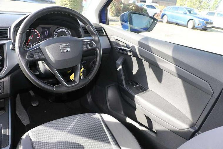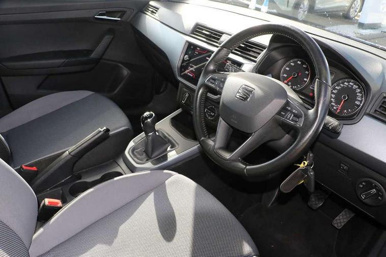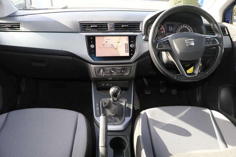 Interior chrome line trim, Plastic grey dashboard, Connectivity pack plus - Arona, Interior chrome pack - Arona, 17" Dynamic alloy wheels, 2 folding remote keys with window open/close function, Electronic engine immobiliser, Locking wheel bolts, Remote central locking + deadlocks, 6 speakers, Bluetooth interface for hands free and audio streaming, DAB digital radio and AM/FM radio, Steering wheel mounted audio controls, 3 point seatbelts on all rear seats, ABS, Active front headrests, Child locks on rear doors, Driver and front passenger airbags with front passenger airbag de activation, front side and curtain airbags, Electronic stability control, Emergency Brake Assist (EBA) and front assist, Front and rear seatbelt reminder, Hill hold control, Multi-Collision braking, Tiredness recognition system, Traction control, Tyre pressure monitoring system, Anti theft roof antenna, Automatic activation of hazard warning lights, Automatic headlights, Black roof rails, Black window trims, Body coloured bumpers, Body coloured door handle inserts, Body coloured door mirrors, Chrome front grille frame, Dimming rear view mirror, Electric adjustable door mirrors, Electric front/rear windows with one touch/auto up/down, Electric headlight adjustment, Front fog lights with cornering function and rear fog light, Hidden exhaust pipe, LED daytime running lights, LED rear tail lights and licence plate lights, Rear window wash/wipe, Visible VIN plate, Windshield wiper with intermittent control and potentiometer, 2 cupholders, 60/40 split folding rear seat, Air conditioning, Cloth upholstery, Double boot floor, Driver sunvisor with covered mirror + card holder, Dust/pollen filter, Front courtesy light with front reading lights, Gear shift indicator, Grey interior roof, Height adjustable front seats, Height/reach adjustable steering column, Illuminated boot, Instrument lighting with brightness control, Interior footwell lighting, ISOFIX points in outer rear seats with top tether anchorage points, Leather steering wheel/gear knob/handbrake, Multi-colour ambient interior lighting, Passenger sunvisor with vanity mirror, Two front and three rear height adjustable headrests, 'Lights On' Reminder warning buzzer, Cruise control, Digital clock, Electric speed sensitive power steering, Full Link Smartphone Integration with Mirror Link, Apple Car Play, Google Android Auto with USB cable for Apple and Android compatibility, Low fuel warning light, Outside temperature display, Rear parking sensor, RPM counter, Trip computer, Comfort suspension,