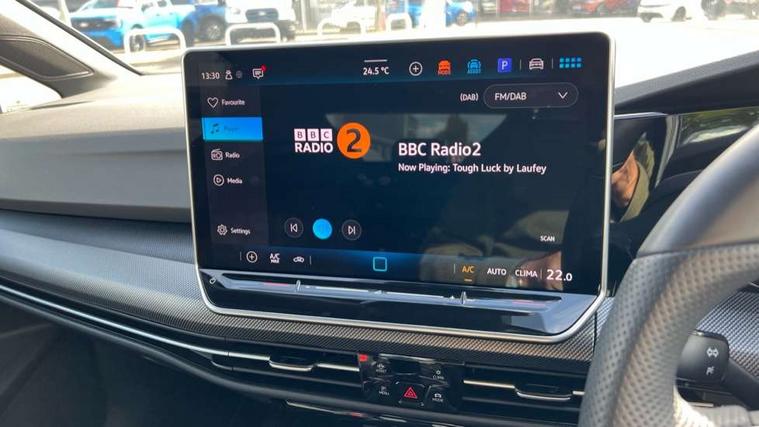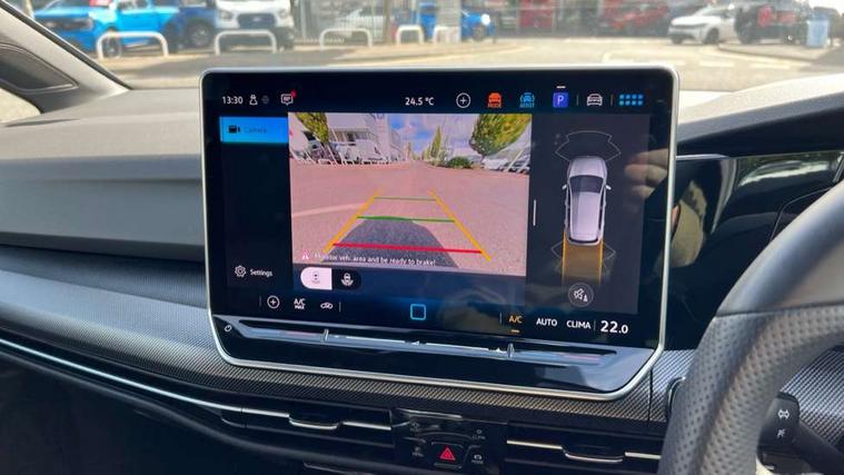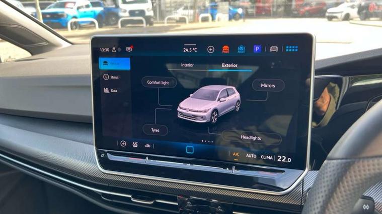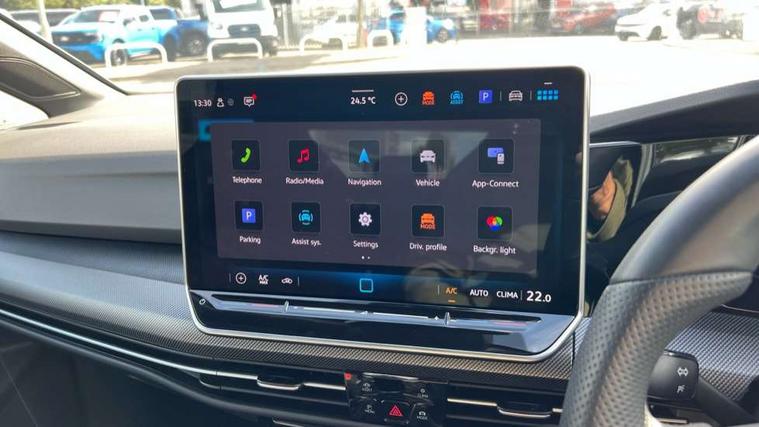 Activated carbon canister, Adaptive cruise control (ACC), Advanced driver attention and drowsiness monitor, Dynamic road sign display, Dynamic steering, E-Sim card for online connectivity, eCall emergency call system, Multi-color Digital cockpit pro, selection of different info profile possible, Multifunction front facing camera for distance control, Navigation system, Oncoming vehicle braking when turning including swerve support, Preparation for light assist system, Speed limiter, Speedo, rev counter, electronic odometer, trip, service interval display, exterior temperature and fuel gauge, Traffic jam assist, Voice enhancer and voice control, Warning signal and warning light for front and rear seatbelts not fastened, We connect plus preparation, We connect preparation, Wireless app connect, Petrol Particulate Filter, Start-stop system with battery regeneration (recuperation - energy recovery during braking), XDS electronic differential lock for improved traction and handling, 2 USB C ports in front, 2 USB charging sockets on the centre console in the rear charging capacity upto 45W, Comfort telephony + wireless charging, without wireless aerial connection, Digital radio reception (DAB), Diversity antenna for FM reception, Gaming platform via car app, Infotainment system with 12.9" display, Mobile phone interface with inductive charging feature, 3rd brake light, Auto headlights, Automatic headlamp activation with Coming home and Leaving home feature, Body colored bumpers in R-Line style, Body colour door handles, Exterior ambient lighting with illuminated door handles, Exterior mirrors convex on the left and aspherical on the right, Front and rear electric windows, Heat insulating windshield made of laminated glass, LED daytime running lights, Rear exhaust tailpipe, Rear fog light on one side and reversing lights on both sides, Rear side wing doors, Rear windscreen washer and wiper with interval delay, Remote electrically foldable door mirrors, puddle lights and reverse activated passenger's door mirror, Welcome light with surround lighting, 12V socket in front centre console, 12V socket in luggage compartment, 3 rear head restraints, 3 seat bench in 2nd row, Ambient lighting with 30 colour including LED light unit in front footwell with selectable light colour, Brushed stainless steel pedals, Carpet mats, front and rear, Chrome plated radiator grille inserts, air vent surrounds and light switch surrounds, Front centre armrest, Integrated front head restraints, ISOFIX anchors for child seats on outer rear bench seats and on front passanger seat compatible for i-Size, Leather gearshift handle, Luggage compartment lighting, Premium sports seats in front, Rear cupholder and loadthough, Single front passenger seat, Soul black instrument panel, Split folding backrest with centre armrest and unsplit rear seat bench, Storm grey roof lining, Sun visors with illuminated vanity mirrors, 3 point height adj front seatbelts + pretensioners, 3 rear three point seatbelts, ABS, Autonomous emergency braking front assist with pedestrian and cyclist monitoring, Child locks on rear doors, Driver and front passenger airbag with front passenger airbag deactivation, Electronic parking brake with auto hold, ESC (Electronic Stability Control), Extended pedestrian protection measures, Rear disc brakes, Two tone horn, Tyre pressure loss indicator, Volkswagen roadside assistance, Anti theft wheel bolts, Preparation for alcohol interlock, Decorative inserts carbon grey for dashboard and front door trim panels,