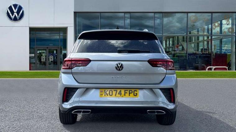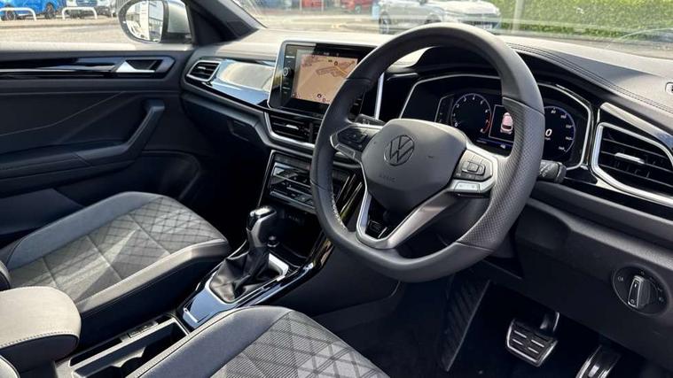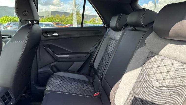 10.25" Digital cockpit pro, Advanced driver attention and drowsiness monitor, Emergency call service, Lane keeping system Lane Assist, Mobile phone interface, Modified key software - reduce switch off time for key status change to Long no motion, Online services, Park assist including front and rear parking sensors, Service interval indicator, Tailgate/trunk lid release from outside, Think blue trainer driver tips and journey analysis, Warning sound and light for front seatbelts unfastened, Wireless app connect, Battery regeneration during braking, Start/stop function with battery regeneration, DAB Digital radio, Diversity antenna for FM reception, Front and rear 6 speakers, Music playback - MP3, WMA and AAC files, Premium USB cable in choice of either Apple or Android smartphone compatibility, SD card slot, Simultaneous pairing of 2 compatible mobile devices, Title and cover art display, We Connect and We Connect Plus functionality, Auto dimming interior rear view mirror, Automatic hazard lights activation under emergency braking, Automatic headlight control with LED separate daytime running lights with coming/leaving home function, Body coloured exterior mirror housings and door handles, Electrically adjustable and heated door mirrors, Extended roof spoiler, Exterior mirrors aspherical on driver side, convex on front passenger side, External USB type C socket and charging sockets, Front windscreen wiper with intermittent wipe and 4 position delay, Heated rear window, LED 3rd brake light, LED rear combination lamps, LED rear number plate lights, Power windows with comfort operation and circuit breaker, Privacy glass for rear side windows and rear window, R-Line design body coloured bumpers, Rain sensor, Rear exhaust tailpipe, Rear fog light on one side and reversing lights on both sides, Rear side wing doors, Rear wash/wipe with intermittent wipe setting, Remote electrically foldable door mirrors, puddle lights and reverse activated passenger's door mirror, 12V power socket in centre console, 3 rear head restraints, 3 seat bench in 2nd row, 4 load lashing points in luggage compartment, Air care climatronic air conditoning system with active combination filter and 2-zone temperature control, Black roof lining, Chrome plated decorative trims, Chrome plated radiator grille inserts, air vent surrounds and light switch surrounds, Door and side trim panel with leatherette insert, Front + rear carpet mats, Front centre armrest, Front cupholders x 2, Front footwell illumination, Front reading light, Front scuff plates with R Line logo, Front seat back storage pockets, Glove compartment door with light, Instrument lighting, white adjustable panel illumination, Interior ambient lighting and surround lighting, Interior light delay, Isofix child seat preparation, Leather gearshift handle, Load-through provision with cup holder when folded down ('Unsplit rear seat bench, split folding backrest, with centre armrest), Luggage compartment lighting, Single front passenger seat, Stainless steel pedals, Storage compartment in left and right luggage area, Storage compartment in rear doors, Storage compartments in driver and front passenger doors, Sunvisors with illuminated vanity mirrors, Variable boot floor, height adjustable and removable, Driver assistance pack without proactive passenger protection - T-Roc, 3 point height adj front seatbelts + pretensioners, 3 point seatbelts in outer rear with ECE label, ABS, Child locks on rear doors, City emergency braking and pedestrian monitoring, Driver and front passenger airbag with front passenger airbag deactivation, Driver and front passenger safety-optimised head restraints, Drivers seatbelt reminder, Electronic parking brake, Electronic Stability Control (ESC) inc EDL (Electronic Differential Lock) and ASR (Traction Control), Front and rear passengers curtain airbag system including front side airbags, Hill start assist, Predictive pedestrian protection, Rear disc brakes, Two tone horn, Tyre pressure loss indicator, Volkswagen roadside assistance, Piano black decorative inserts in dashboard and front door trim panels, Trims for alloy wheels,