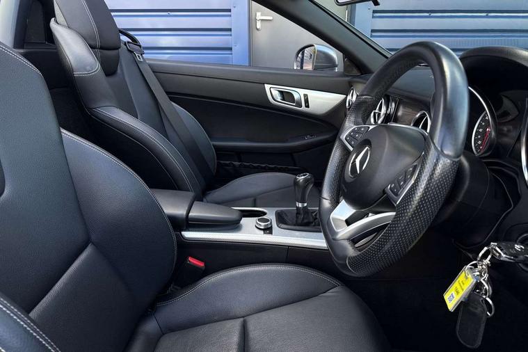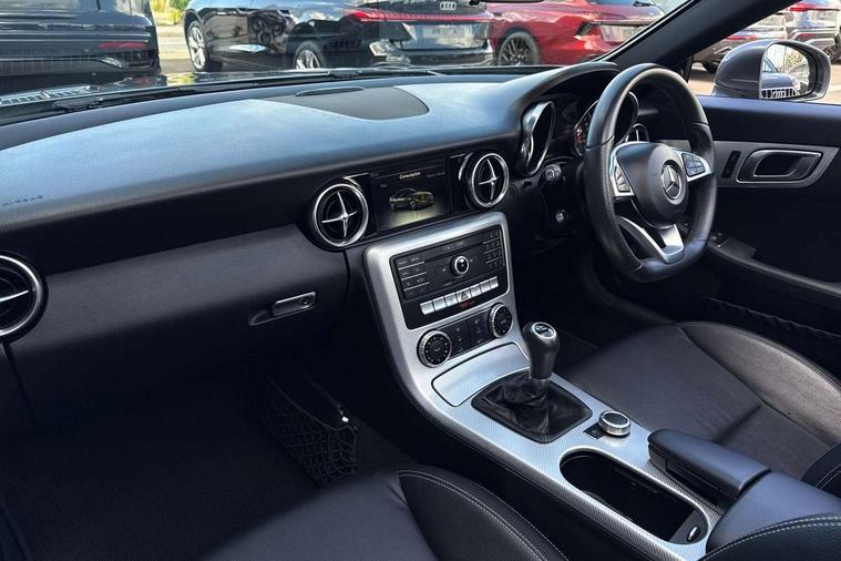 Attention assist, Bluetooth system, Chequered flag design instrument cluster, DYNAMIC SELECT with a choice of driving modes (ECO, Comfort, Sport, Sport+ and Individual), Outside temperature gauge, Power Steering, Remote boot release, Service indicator (ASSYST), Speedtronic cruise control, Trip computer, Sports suspension, 2 USB ports in centre console, DAB Digital radio, Media interface, Adaptive brake lights, AMG bodystyling, Automatic headlamp activation, Body colour bumpers, Electric front windows, Electrically adjustable and heated door mirrors, Electro hydraulic vario roof, LED daytime running lights, 3 spoke flat bottom multi-function perforated leather steering wheel, Active head restraints, AMG floormats, Auto Mercedes-Benz child seat recognition sensor, Brushed stainless steel sports pedals with rubber studs, Driver/front passenger seat height adjustment, Front centre armrest, Lockable glovebox, Sports seats, ABS with Brake Assist, Adaptive brake system, Brake calipers with Mercedes-Benz lettering + perforated brake discs, Driver/front passenger head+thorax airbag, Dual stage driver/passenger airbags, Electronic parking brake, ESP with Acceleration skid control (ASR), Seatbelt pretensioners, Tyre pressure monitoring system, Warning triangle and first aid kit, Alarm system/interior protection/immobiliser, Remote central locking, Tyre sealant kit,