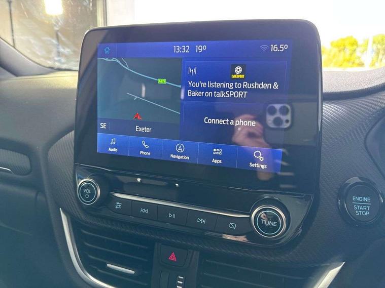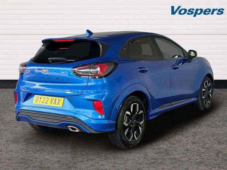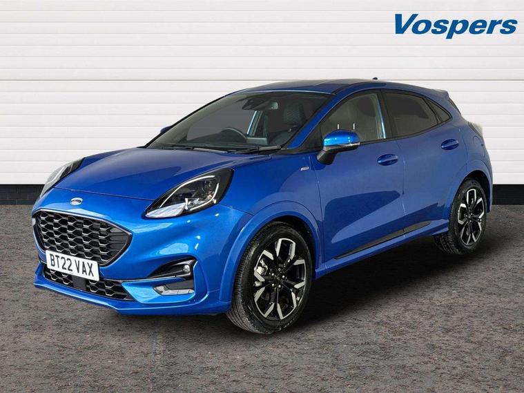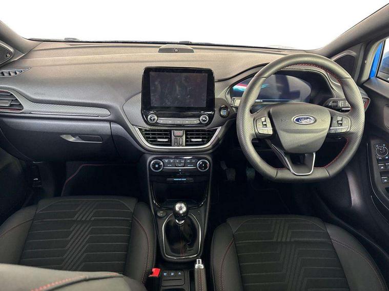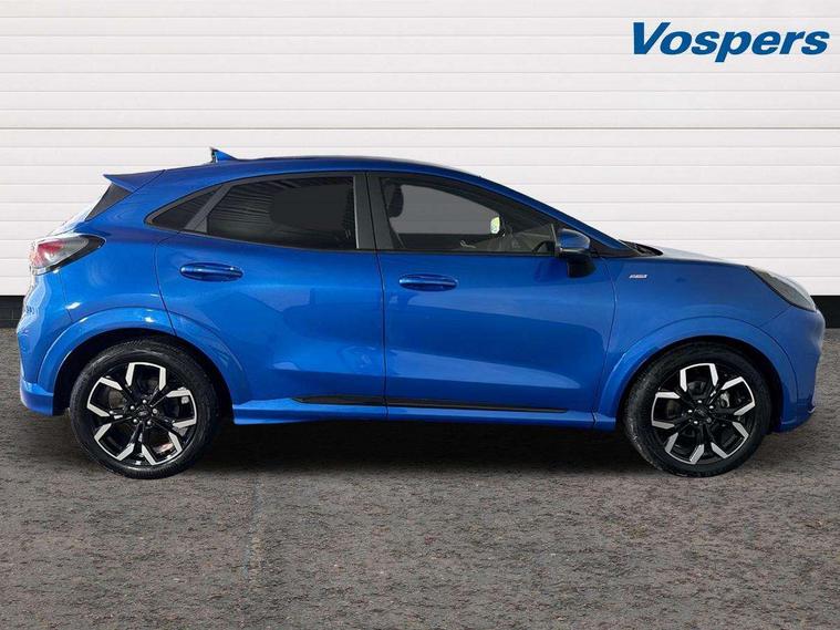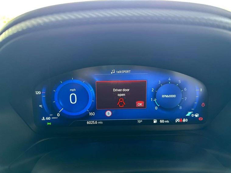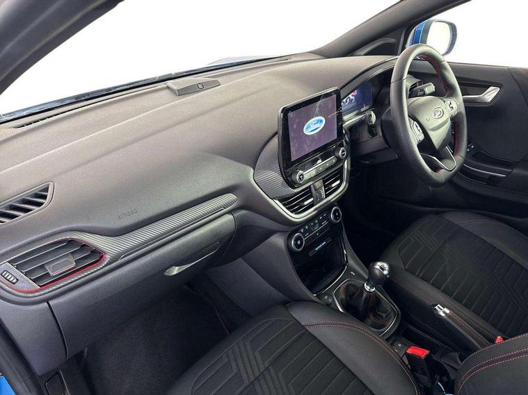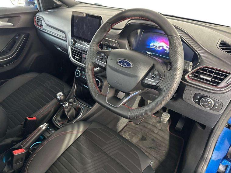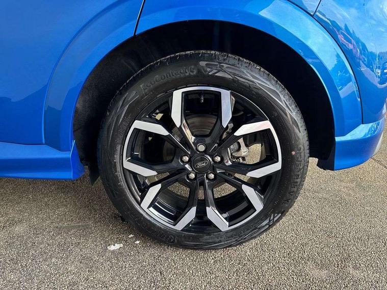 Driver impairment monitor, Emergency call service, Ford easy fuel, Full digital 12.3" instrument cluster, Lane keeping aid with lane departure warning, Power assist steering, Power start button, Rear parking sensor, Selectable drive modes(Normal, sport, Eco, trail, slippery), Speed sign recognition, Sport suspension, Automatic headlights with auto high beam, Automatic rain sensing wipers, Front fog lamps, LED daytime running lights, LED rear lamps, Power foldable heated door mirrors with puddle lamps, Privacy glass to side rear windows and tailgate glass, Quickclear heated windscreen, Rear side wing doors, Rear wiper, ST-Line body styling kit with unique grille and large body colour rear spoiler, Third brake light, 3 seat bench in 2nd row, Centre console with armrest and stowage, Ford megabox extended bootspace, Front and rear head restraints, Front floor mats, Manual 4 way driver seat adjust with lumbar adjustment, Manual 4 way passenger seat with lumbar seat adjustment, Sensico partial premium upholstery, Single front passenger seat, ST-Line flat bottomed sensico leather steering wheel with leather handbrake and aluminium gear knob, Wireless charging pad with electronic air temperature control (EATC), B&O Premium Audio system + Ford SYNC 3 navigation pack - Puma, Driver assistance pack with Lane departure warning - Puma, 3 rear seatbelts, Child safety lock, Electronic stability control (ESC) and hill start assist, Pedestrian/cyclist detection & post-collision braking, Pre collision assist with autonomous emergency braking, Tyre pressure monitoring system (TPMS), Thatcham alarm, Carbon look interior deco spears,