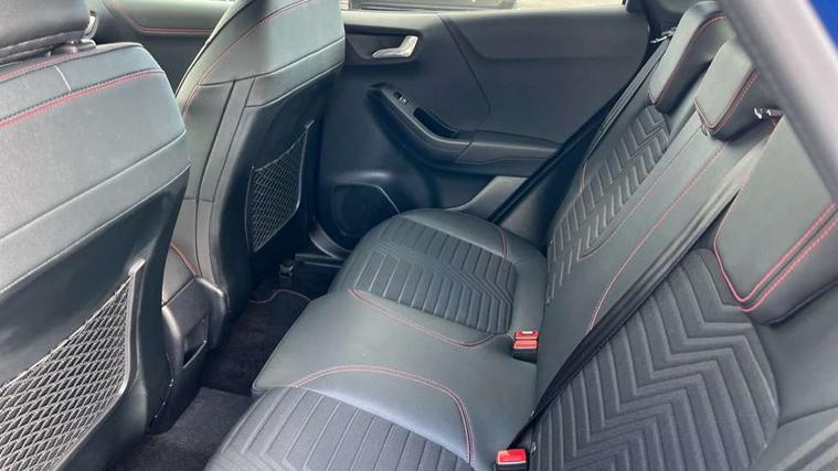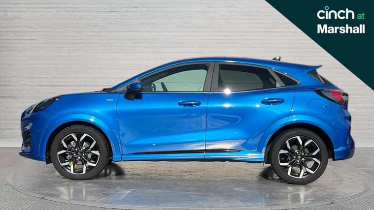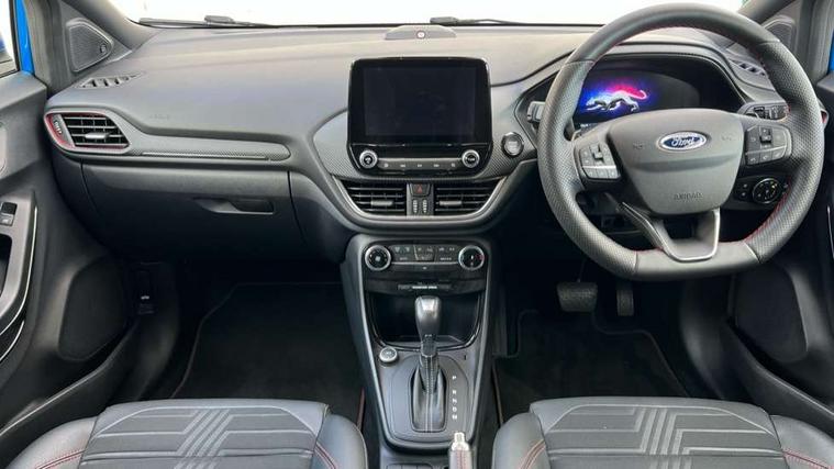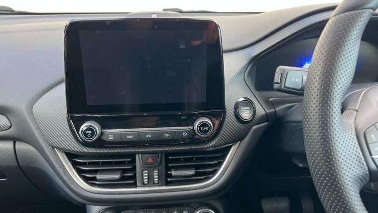 Ford easy fuel, Full digital 12.3" instrument cluster, Lane keeping aid with lane departure warning, Power assist steering, Power start button, Rear parking sensor, Selectable drive modes(Normal, sport, Eco, trail, slippery), Wireless charging pad, Automatic headlights with rain sensing wipers and auto high beam, Body coloured door mirrors, Front fog lights with cornering lights and LED rear lamps, Power foldable heated door mirrors with puddle lamps, Privacy glass to side rear windows and tailgate glass, Quickclear heated windscreen, Rear wiper, ST-Line body kit with large rear spoiler wth sports suspension, Centre console with armrest and stowage, Driver and passenger seat lumbar and height adjust, Ford megabox extended bootspace, Front and rear floor mats, Front and rear head restraints, Manual air conditioning, Sensico partial premium upholstery, Wireless charging pad with electronic air temperature control (EATC), B&O Premium Audio system + Ford SYNC 3 navigation pack - Puma, 3 rear seatbelts, Electronic stability control (ESC) and hill start assist, Pre-collision assist with autonomous emergency braking, pedestrian/cyclist detection & post-collision braking, Tyre pressure monitoring system (TPMS), Thatcham alarm, Carbon look interior deco spears,