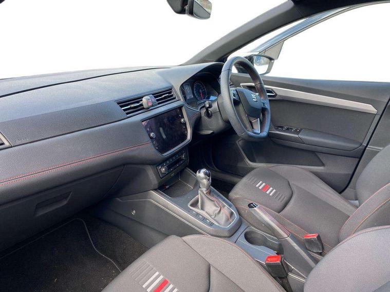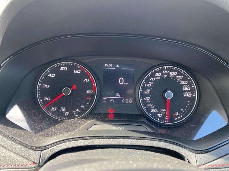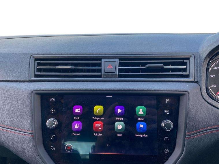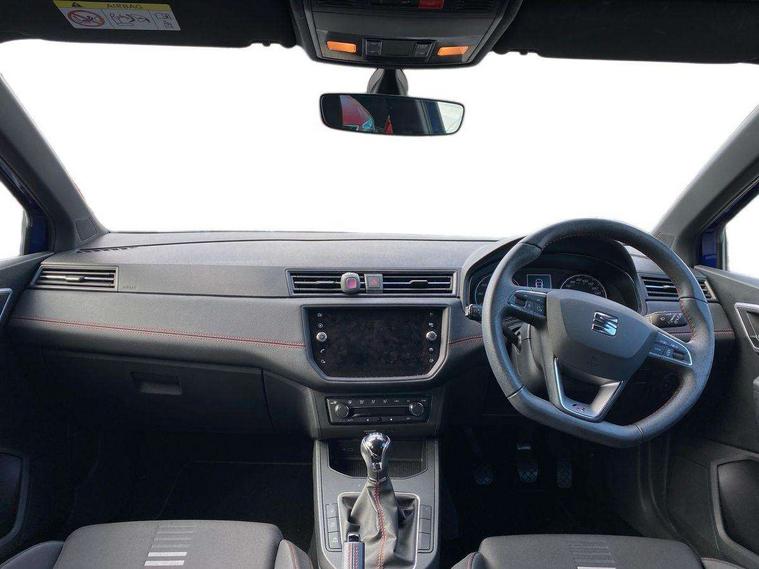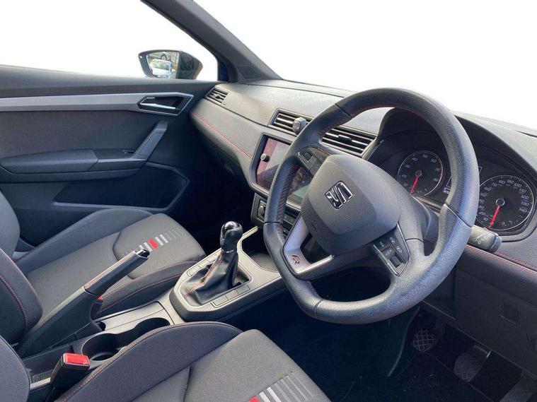'Lights On' Reminder warning buzzer, Bluetooth audio streaming with handsfree system, Cruise control, Digital clock, Full Link Smartphone Integration with Mirror Link, Apple Car Play, Google Android Auto, Low fuel warning light, Navigation system with 8" touch screen + proximity sensor, voice control and USB type C sockets, Outside temperature gauge, Power Steering, Seat connect with safety, service, remote and online, SEAT Drive profile, SEAT logo boot release, Speed limiter, Trip computer, Sports suspension, 6 speakers, Auxiliary input socket, CD player, Digital Audio Broadcast (DAB) Tuner, Radio/MP3 player, SD card slot, Steering wheel mounted controls, USB (type C) cable for Apple and Android compatibility, Anti theft roof antenna, Auto dimming rear view mirror, Automatic headlights, Automatic rain sensing wipers, Body colour bumpers, Body colour door handles, Brilliant black door mirrors, Brilliant black window surrounds, Chrome front grille frame, Coming/leaving home lighting function, Dark tinted rear windows, Electric folding door mirrors, Electric front windows, Electric headlight adjustment, Electric rear windows, Electrically adjustable and heated door mirrors, Exclusive FR rear bumper, Front/rear fog lights, LED daytime running lights, LED headlights with dynamic headlight range control, LED tail lights, Rear spoiler with twin exhausts, 60/40 split folding rear seat, Ambient interior lighting, Chrome detailing, pearl grey headlining and leather effect door trim panels, Driver's sunvisor with ticket holder/vanity mirror, Dual zone climate control with combination filter, Front courtesy lights, Front cupholders x 2, Front reading lights, Gear shift indicator, Glovebox, Height adjustable driver's seat, Height adjustable passenger seat, Height/reach adjust steering wheel, Illuminated boot, Instrument lighting with brightness control, Leather dashboard, Leather multifunction flat bottomed steering wheel with FR logo, leather gear knob and handbrake, Nora cloth upholstery, Passenger sunvisor, Rear top tether child seat ISOFIX attachment, Sports seats, Two height adjustable front and rear headrests (three in rear), 3 point seatbelts on all 3 rear seats, ABS, Active front headrests, Child locks on rear doors, Curtain airbags, Driver/Front Passenger airbags, ESP+EBA, Front assist (AEB), Front passenger airbag deactivation, Front side airbags, Hill hold control, Multi-Collision braking, Seat belt reminder for front and rear seats, Tiredness recognition system, Tyre pressure monitoring system, Anti theft wheel bolts, Electronic engine immobiliser, Perimeter alarm and interior monitoring with backup horn and tow away protection, Remote central locking + deadlocks, 17" Dynamic alloy wheels,