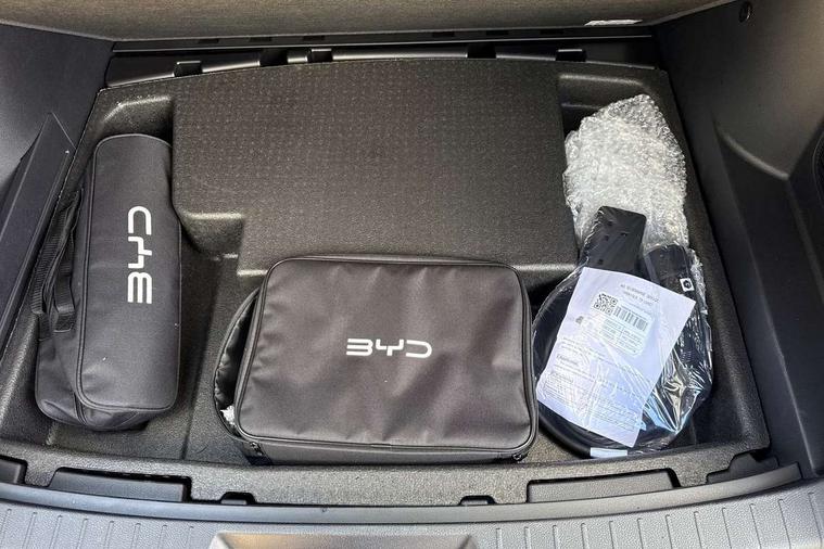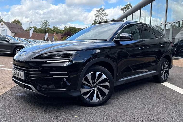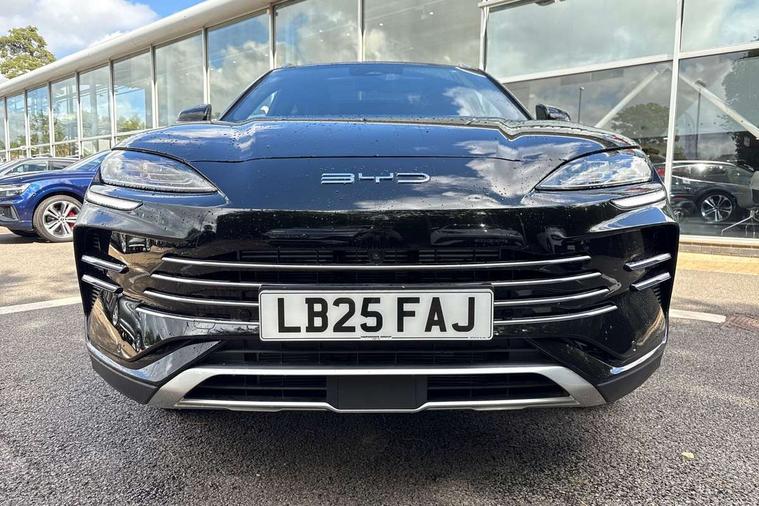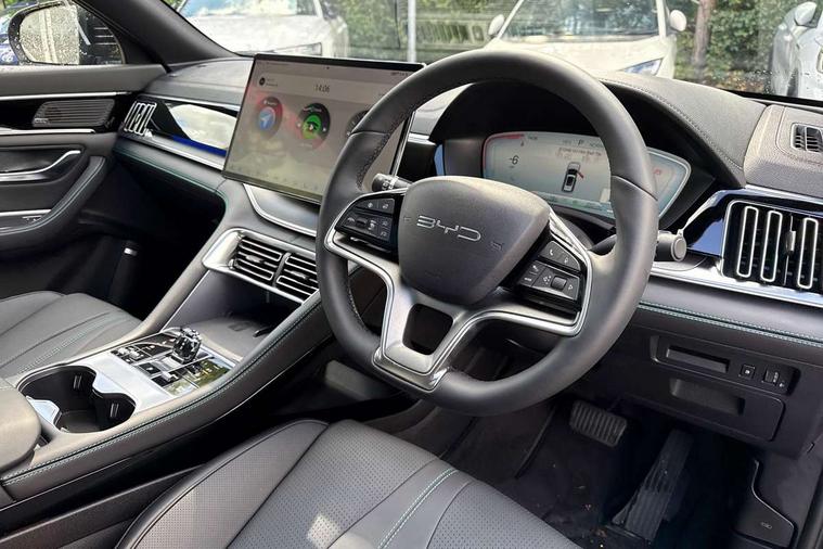 12.3" TFT full LCD instrument panel, 360 camera, Adaptive Cruise Control (ACC) and Intelligent Cruise Control (ICC), Automatic vehicle hold, Blind spot detection, BYD voice control assistant "Hi, BYD", Child presence detection, Controller Deceleration Parking (CDP), Drive mode select (Eco, normal, sport, snow, sand, muddy), e-Call (emergency call), Electric tailgate release, Emergency Lane Keeping Assist (ELKA), Forward collision warning, Front and rear parking sensors, Front cross traffic alert and front cross traffic brake, Head up Display, Indirect driver fatigue management, Intelligent Speed Limit Control (ISLC), Keyless system entry and start, Lane change assist, Lane Departure Assistant (LDA) and Lane Departure Warning (LDW), Lane departure prevention, PAS, Predictive collision warning, Rear collision warning, Rear cross traffic alert and rear cross traffic brake, Rollover Control System (RMI), Smartphone wireless charging, 2 x 15W, Traffic sign recognition (TSR), Vehicle-to-Load (V2L) function, 11kW on board charger, Mode 3 Type 2 charging cable (3 phase), V2L (Vehicle to load) power strip - Type F, 15.6" Electrically rotatable touchscreen, FM/DAB+ radio, Front USB ports, 1 x 18W Type C, 1 x 60W Type C, Infinity sound system with 10 speakers, Rear USB ports, 2 x 18W Type C, Aluminium roof rails, Auto dimming interior rear view mirror, Auto headlamps (on/off), Dynamic welcome light, Electric folding and heated door mirrors, Emergency tow hook, Exterior mirror footlights, Follow me home (The headlights turned on in advance and delayed off function), Front windscreen, UV protection, thermal insulation and sound proofing, High beam assist, LED 3rd brake light, LED daytime running lights, LED Headlights, LED taillights, One touch electric front/rear windows with pinch protection, Panoramic sunroof with anti-pinch sensor and electrically adjustable sunshade, Rain sensor windscreen wipers, Rear fog lights, Rear side wing doors, Rear window and rear windscreen with tinted glass, Rear wiper, 12V power outlet, 3 seat bench in 2nd row, 8 way electrically adjustable drivers seat, Adjustable rear headrests, Boot parcel shelf, Driver and passenger sunvisors with illuminated vanity mirrors, Driver seat memory function, Front centre armrest with 2 cupholders, Front LED reading lights, Front passenger seat with 4-way electric adjustment, Front seat footlights, Heat pump, Heated front seats, Heated steering wheel, Integrated headrest in front seats, ISOFIX and i-Size for front passenger and outer rear seats, LED front door lights, Nylon floor mats, PM2.5 air filter, PM2.5 air purification system, Rear air vents, Rear armrest with 2 cupholders, Rear side LED reading lights, Rhythm-reactive multi-colour ambient lighting, Single front passenger seat, Split folding rear seats - 40/60, Vegan leather multifunction steering wheel, Vegan leather upholstery, Ventilated front seats, 3x3 point rear seatbelts, ABS/EBD, Automatic emergency braking system, Brake override system (BOS), Comfort stop, Door open warning, Driver airbag, Electric parking brake, Force limiting pretensioned front seat belts, Front centre airbag, Front passenger airbag, Front passenger airbag deactivation, Front side airbags, Hill descent control, Hill hold control, Hydraulic Brake Assist (HBA), Hydraulic brake boost, Mechanical child safety lock, Rear middle seat force limiting seat belt, Rear seat belt pretensioners, Reflective vest, Side curtain airbags, Traction control system (TCS), Tyre pressure monitoring system (TPMS), Vehicle Dynamics Control System (VDC), Warning triangle, 2 x Smart key, Anti theft alarm system, Automatic door locking, 19" Bi-colour alloy wheels, Tyre nut covers remover, Tyre repair kit,