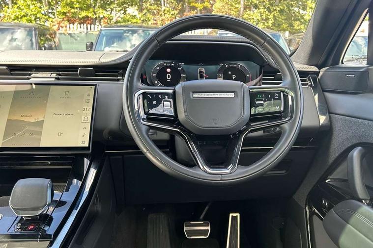 13.1" Touchscreen, 3D 360 degree surround camera with wade sensing, Adaptive cruise control with steering assist, Android Auto, Apple car play, Blind spot assist, Bluetooth connectivity streaming, Driver condition response, Eco mode, Front and rear parking aid, Interactive Driver display instrument cluster, Lane departure warning system, Lane keep assist, Push button start, Rear collision monitor, Rear traffic monitor, Remote, Traffic sign recognition with adaptive speed limiter, Trip computer, Wireless device charging, 8 speed automatic transmission, Adaptive dynamics, All wheel drive system, Automatic access height, Terrain Response 2, DAB Radio (Digital Audio Broadcasting), Incontrol protect - SOS emergency call with automatic collision detection, optimised assistance call and Incontrol remote app essential, Pivi pro connected, USB/aux input socket, Adaptive brake lights, Automatic headlight levelling, Automatic headlights, Centre high mounted stop light, Electric heated/power fold memory door mirrors with approach lights and auto dimming driver side, Electric windows with one touch open/close and anti trap, Flush deployable exterior door handles, Follow me home lighting, Front and rear recovery eyes, Headlight power wash, Heated rear window, Heated washer jets, Heated windscreen, Illuminated aluminium treadplates with Range Rover script, LED tail lights, Metal load space scuff plates, No badges, Rain sensing windscreen wipers, Rear animated directional indicators, Rear fog lights, Rear side wing doors, Rear wash/wipe, Remote window closing, Side repeater indicators in mirror, Trailer stability assist, Winter wiper park position, 3 seat bench in 2nd row, 60:40 seats with power recline and loadthrough, Air quality sensor, Auto air recirculation, Bright metal foot pedals, Centre console with armrest, Customer configurable single point entry, Driver's footrest, Easy boot loading, Ebony console door armrests and seatbelts, Electric adjustable steering column, Front and rear cupholders, Front door storage space, Front head restraints, Front map lights, Front seat back map pockets, Front stowage pocket, Front/rear passenger grab handles, Gearshift paddles, Heated steering wheel, Isofix child seat preparation, Loadspace cover, Loadspace Hook, Loadspace light, Loadspace mounting provisions, Lockable glovebox, Luggage tie-downs in loadspace, Multifunction steering wheel, Pollen filter, Power socket, Rear centre armrest, Rear head restraints, Rear ISOFIX, Single front passenger seat, Three 12V accessory power outlets, Upper secondary glovebox, Online pack with data plan - Range Rover Sport, 3 point seatbelts on all seats, Anti-lock braking system (ABS), Brake pre-fill technology, Configurable autolock, Cornering brake control (CBC), DSC - Dynamic Stability Control, EBD - Electronic brakeforce distribution, Electric parking brake, Electronic traction control, Emergency braking, Front seatbelt pretensioners, Front side airbags, Height adjustable front seatbelts, Hill descent control, Hill launch assist, Low traction launch, Occupant protection assist, Passenger seat occupant detector with front airbags, Power operated child locks, Roll stability control, Seatbelt warning, TPMS (Tyre pressure monitoring system), Immobiliser, Intrusion sensor, Keyless entry, Locking wheel nuts, Perimetric and volumetric anti theft alarm, Remote locking, Moonlight noble chrome interior finishers,
