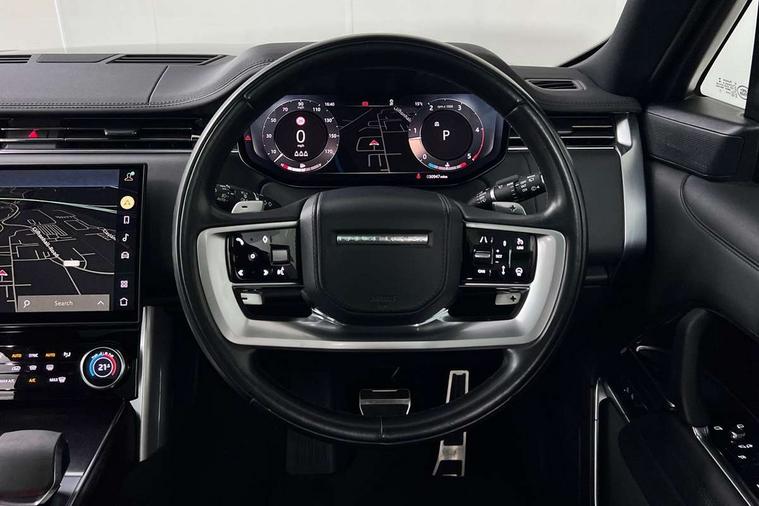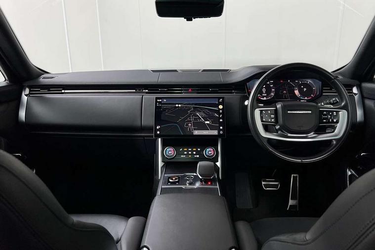 13.1" Touchscreen, 3D surround camera inc frwd traffic detection, vehicle clearance guidance, 3D view, clearsight ground view, manoevure light, 360 parking aid, wade sensing, Adaptive cruise control with steering assist, All Terrain Info Centre, All wheel steering, Android Auto, Apple car play, Blind spot assist, Bluetooth connectivity streaming, Driver condition response, Eco mode, Electric power assisted steering (EPAS), Emergency call service, Front and rear parking aid, Head up Display, Interactive driver display, Lane keep assist, Powered gesture tailgate/boot lid, Rear collision monitor, Rear traffic monitor, Remote, Traffic sign recognition with adaptive speed limiter, Wi-Fi Enabled with data plan, Wireless device charging with phone signal booster, 8 speed automatic transmission, Active damper technology system, Adaptive dynamics, All terrain progress control, All Wheel Drive (AWD), Automatic access height, Electronic active differential with torque vectoring by braking, Electronic air suspension with dynamic response, Terrain Response 2 Auto, Twin speed transfer box, Digital Audio Broadcast radio-DAB, Pivi pro including smart settings, Connected navigation pro, nuance speech, USB socket, Acoustic laminated windscreen, Animated directional indicators, Automatic headlights, Automatic levelling headlights, Centre high mounted stop light, ClearSight interior rear view mirror, Electric windows with one touch open/close and anti trap, Flush deployable exterior door handles, Front and rear recovery eyes, Front fog lights, Headlamp power wash, Heated rear window, Heated washer jets, LED tail lights, Power fold, auto-dimming, heated door mirrors with approach lights, Rain sensing windscreen wipers, Range rover badge, Rear boot, Rear fog lights, Rear side wing doors, Rear wash/wipe, Side repeater indicators in mirror, Trailer stability assist, Winter wiper park position, 12V power sockets, 3 seat bench in 2nd row, Air quality sensor, Bright metal pedals, Cabin air purification pro, Cabin lighting, Customer configurable single point entry, Driver and passenger front seat armrests, Easy boot loading, Ebony Carpet, Front and rear cupholders, Front and rear grab handles, Front head restraints, Gearshift paddles, Heated steering wheel, Hook in load space, Loadspace light, Luggage tie down in loadspace, Multifunction steering wheel, Rear centre armrest, Rear head restraints, Rear ISOFIX, Single front passenger seat, Soft close doors, Twin blade sunvisors with Illuminated vanity mirrors, Upper and lower glovebox, Online pack with data plan - Range Rover, 3x3 point rear seat belts, Anti-lock braking system (ABS), Brake hold function, Cornering brake control (CBC), Customer configurable autolock, DSC - Dynamic Stability Control, Electronic brake force distribution, Electronic parking brake, Electronic traction control, Emergency brake assist, Emergency braking, Front airbags with passenger seat occupant detector, Front side airbags, Hill descent control, Hill launch assist, Illuminated seat belt buckles, Low traction launch, Occupant protection assist, Power operated child locks, Roll stability control, Tyre pressure monitoring system (TPMS), Immobiliser, Intrusion sensor and alarm, Keyless entry, Locking wheel nuts, Remote central locking, Noble chrome controls,