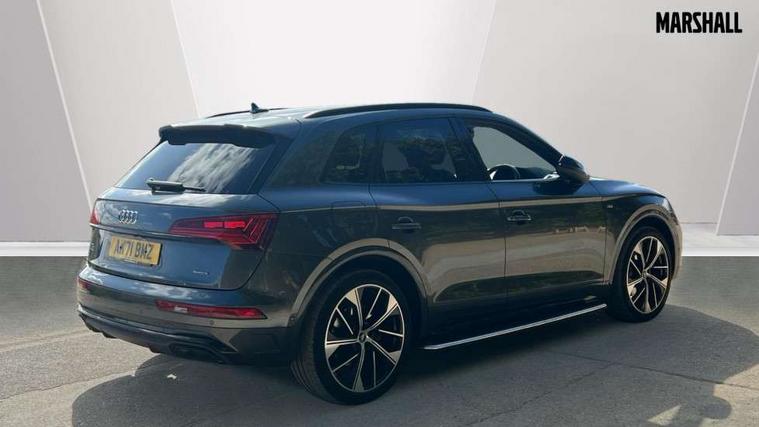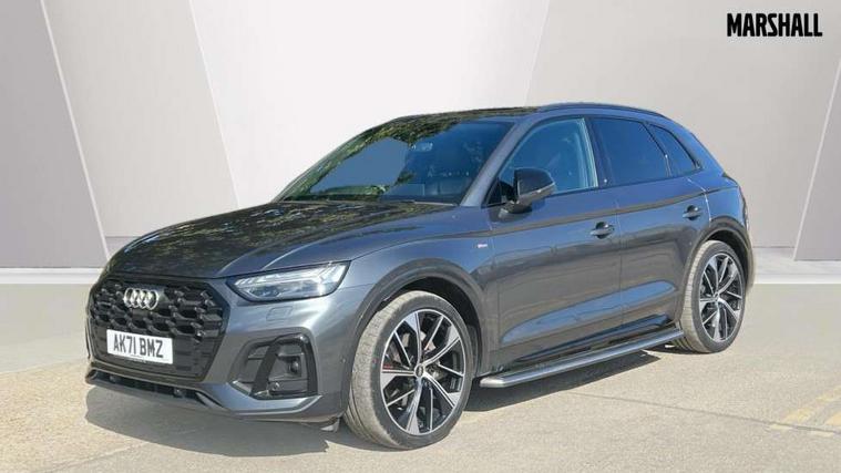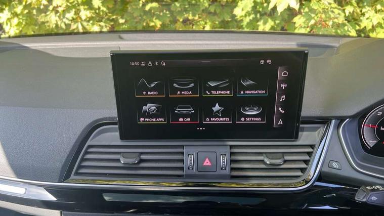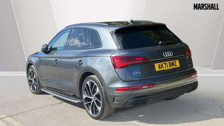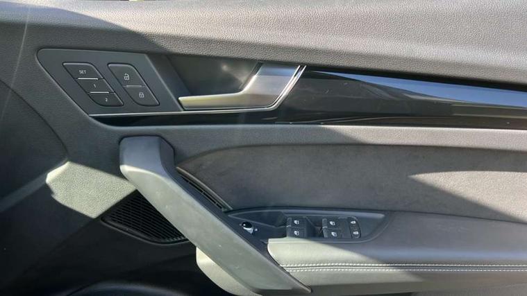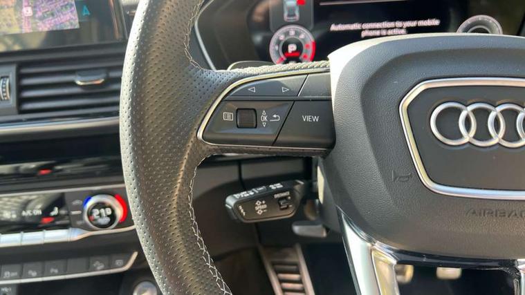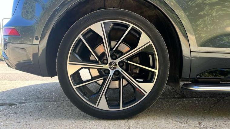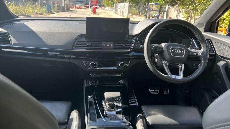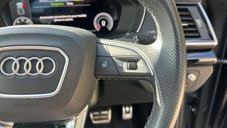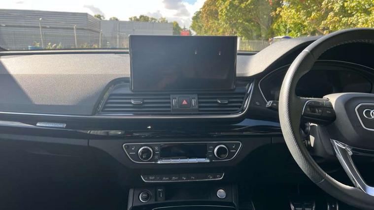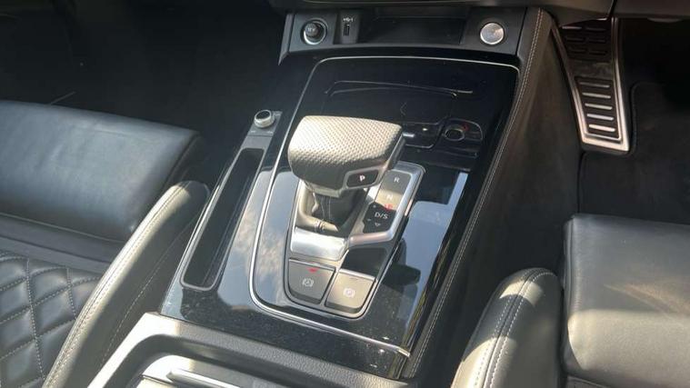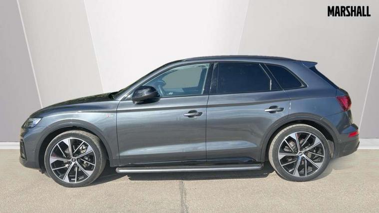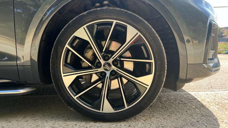 360 degree camera with top view, Advanced key with electric hands free boot opening system, Audi connect safety and service (e-call), Audi connect with Amazon Alexa Integration, Audi drive select, Audi virtual cockpit plus with 12.3" screen and three different layout designs, Audi wireless smartphone interface, Automatic start-stop system with coasting functionality and efficiency programme, Electro - mechanical power assisted steering, Head up Display, MMI navigation plus with 10.1" touch screen, Mobile telephone preparation - bluetooth interface, Park assist with parking aid plus, Power tailgate, Service interval indicator, Voice control system with Audi hotword activation "Hey Audi", Adaptive air suspension, Diesel particulate filter, Quattro on demand, 2 x USB charging port with aux input socket, Bang + Olufsen sound system, DAB Digital radio, Acoustic windscreen, Audi beam with 'Vorsprung' logo, Auto dimming rear view mirror, Automatic headlights and windscreen wipers, Black roof rails, Body colour bumpers, Body colour underbody protection, Chrome plated exhaust trims, Door sills in Selenite silver, Electric adjustable/heated/folding door mirrors, Electric panoramic glass sunroof, Front air inlet surrounds in titanium black, Front and rear electric windows, Gloss black finish for Audi rings and Q5 logos without engine badging, Headlight washers, High gloss black B pillar trims and triangular rear door trim, Lower bumpers painted in contrast Manhattan grey, Matrix LED headlights with dynamic front and rear indicators, Rear chrome trim strip below lights, Rear privacy glass and rear side windows, Rear spoiler, Rear wiper, Roof bars, Running boards, 3 rear headrests, 3 spoke heated leather multi-function steering wheel, 4 way electric lumbar support for driver and front passenger, 40:20:40 split folding rear seat with rear centre armrest, Black cloth headlining, Comfort front centre armrest, Contrast stitching on seats, steering wheel and gear lever gaiter, Deluxe 3 zone electronic climate control, Electrically adjustable front seats with driver memory, Fine Nappa leather upholstery with diamond pattern contrast stitching + front sport seats with S embossed logo, Front/rear floor mats, Gear lever in black leather, Heated front and outer rear seats, Height adjustable front head restraints, Illuminated door sill trims with aluminium inlays, ISOFIX child seat mounting and top tether, Luggage compartment cover, Massage function for front seats, Rear seat bench plus, Removable luggage compartment floor, Stainless steel pedals, Sunvisors with vanity mirrors, Black styling package - Q5, City Assist pack - Q5, Extended interior upholstery pack - Q5, Extended LED Interior multi coloured Lighting Pack - Q5, Tour pack - Q5, 3 point seatbelts on all seats, 6 airbags - Driver, front passenger, curtain and side airbags, Electrically operated child locks on rear doors, Electromechanical parking brake, Electronic stabilisation control including ABS, ASR and EDL, Front passenger airbag deactivation, Hill descent control, Hill hold assist, Multi collision brake assist, Pop-up bonnet for pedestrian protection, Pre sense city, Seat belt force limiter, Seatbelt monitoring, Tyre pressure warning, Warning triangle and first aid kit, Anti theft alarm, Anti-theft wheel bolts, Keyless Go access/ignition system, Piano black finish inlay, Tool kit, Tyre repair kit,
