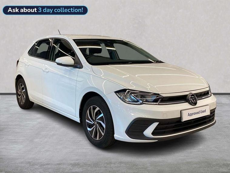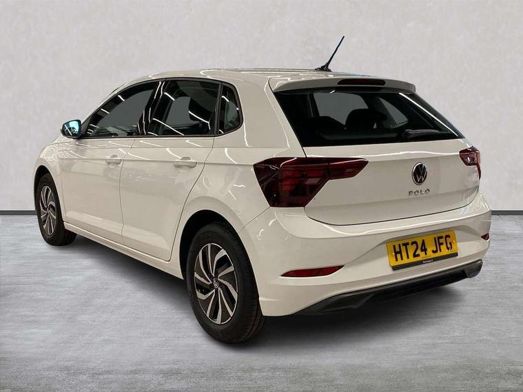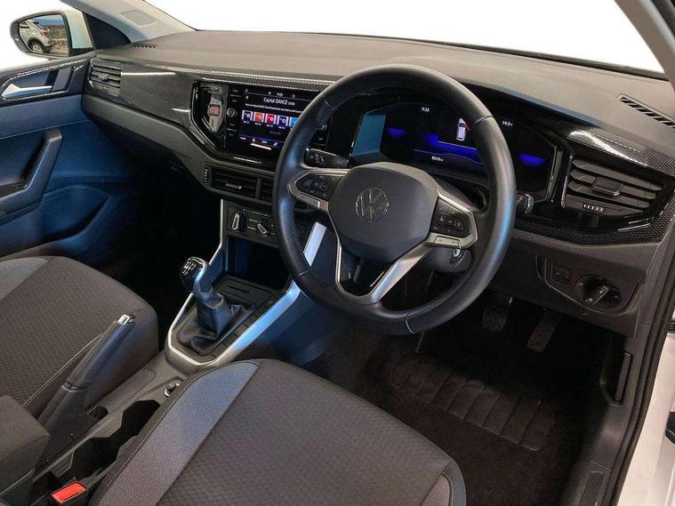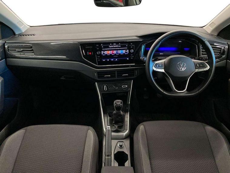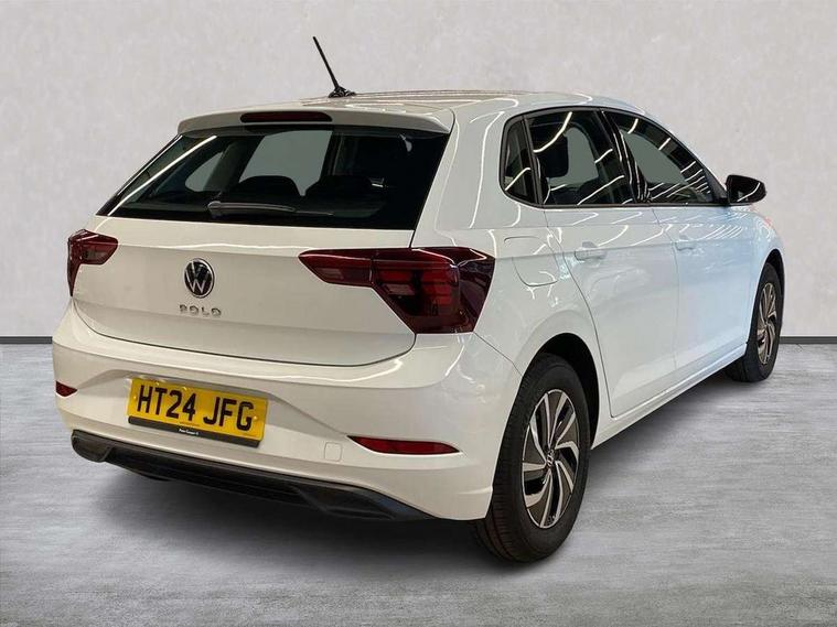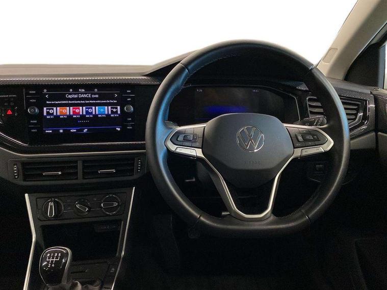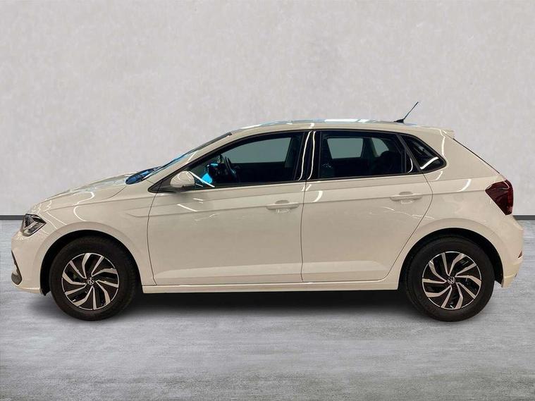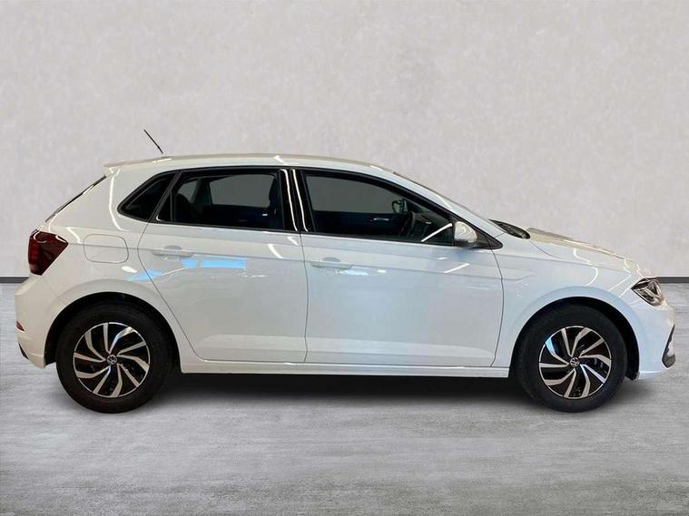Adaptive cruise control without follow-to-stop and speed limiter, Advanced driver attention and drowsiness monitor, Bluetooth mobile phone interface, Dynamic road sign display, Emergency call service, Power assisted speed sensitive steering, Preparation for navigation system with media and internet package, Preparation for We connect and We connect plus, Speedo and rev counter, electronic odometer, trip, service interval display and exterior temperature gauge, Standard rear axle, Travel Assist - Lane keeping system and traffic jam assist, Travel assist including emergency assist, Trip computer, Warning signal and warning light for front and rear seatbelts not fastened, Washer fluid level indicator, Wireless app connect, Front wheel drive, Rear shock absorpion, Start-stop system with battery regeneration (recuperation - energy recovery during braking), DAB Digital radio, Diversity antenna for FM reception, Automatic dimming interior rear view mirror, Automatic headlight control with LED separate daytime running lights with coming/leaving home function, Body colour bumpers with chrome inserts, Body colour door handles, Body colour door mirrors, Electric front windows, Engine badge deletion, Headlight range adjustment, Heat insulating and laminated safety glass windshield, Heat insulating darkened glass in side and rear windows, Heat insulating glass windscreen, LED Headlights, LED rear combination lamps, Power folding adjustable/heated exterior mirrors and front passenger exterior mirror lowering function, Rain sensor, Rear electric windows, Rear fog light, Rear side wing doors, Rear windscreen washer and wiper with interval delay, Third brake light, 12V power socket in centre console, 2 front and 2 rear reading lights with switch off delay and dimmer, 2 USB-C ports in the front, 2 USB-C charging sockets on the center console in the rear, 3 rear head restraints, 60/40 split folding rear seat and rear seat bench not split, Ceramique roof lining, Chrome plated radiator grille inserts, air vent surrounds and light switch surrounds, Door and side trim panel, Driver and front passenger seat height adjustment, Driver/passenger sunvisors with illuminated vanity mirrors, Front centre armrest, Front seat backrest storage pockets, Front standard seats, Handbrake lever handle in leather, Hartley/Thomas cloth upholstery, Headliner in recycled material, Isofix child seat preparation easy-fit (for two outer rear seats, and front passenger seat) compatible with I-size, Leather trimmed gear knob, Luggage compartment cover, Luggage compartment lighting, Removable luggage compartment floor, Single front passenger seat, Standard climatic zones, Standard pedal cluster, Three spoke leather wrapped multifunction steering wheel, Light and vision pack - Polo, 3 point height adj front seatbelts + pretensioners, 3x3 point rear seatbelts, ABS, Driver and front passenger airbag with front passenger airbag deactivation, Drivers and front passengers safety optimised head restraints, ESC (Electronic stability control) + EDL (Electronic Differntial lock) and ASR (Traction control), Extended and predictive pedestrian/ cyclist protection, Front assist with autonomous emergency braking (for Adaptive Cruise Control ACC up to 130 mph), Front curtain and side airbags with center airbag, Front disc brakes, Hill hold control, Manual child lock in rear doors, Rear drum brakes, Single tone horn, Tyre pressure loss indicator, Alarm with interior protection, Anti-theft alarm system with interior monitoring, backup horn, and towing protection, Anti-theft wheel bolts, Electronic engine immobiliser, Lava stone black gloss/matt decorative inserts in dash and front door panels, Low rolling resistance tyres,