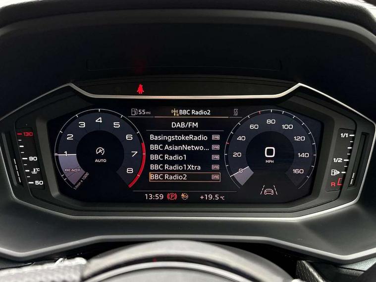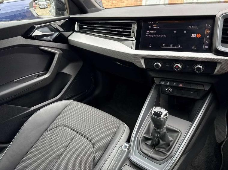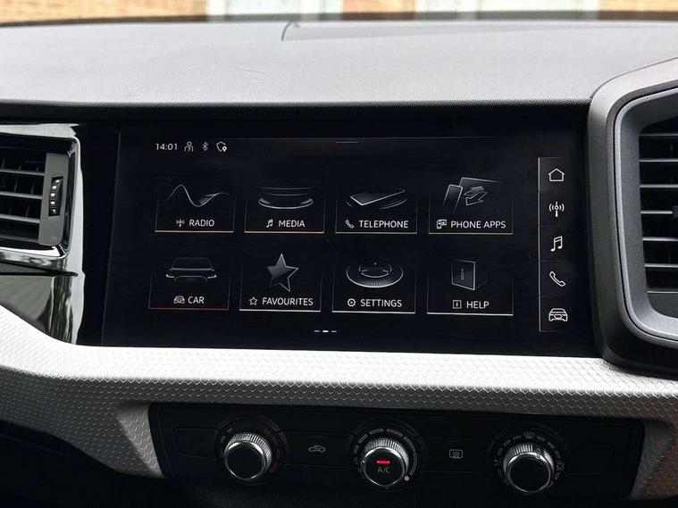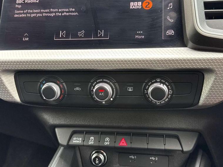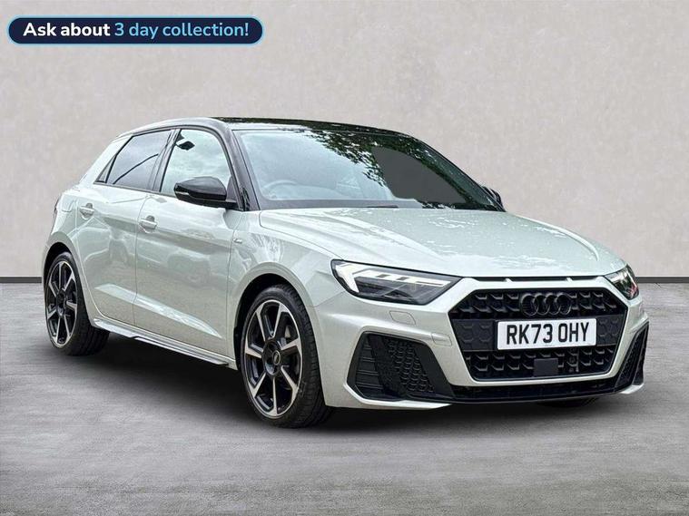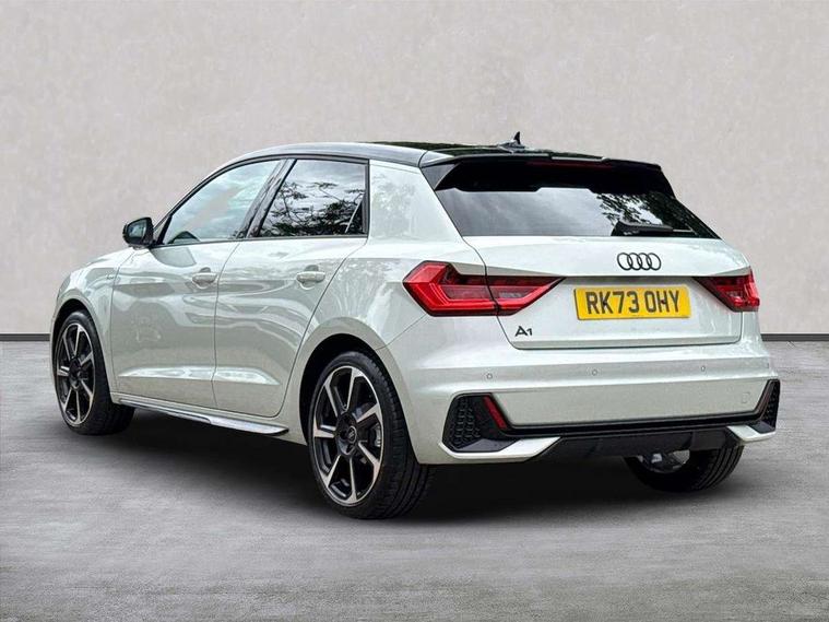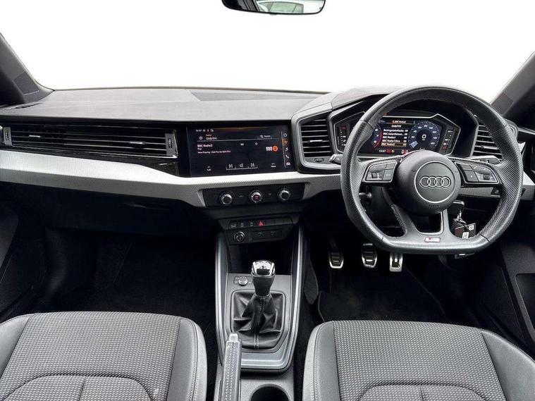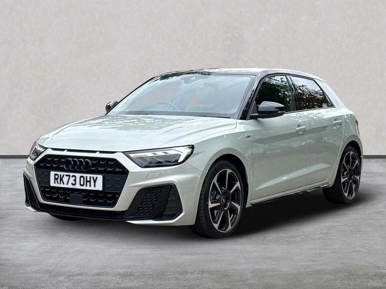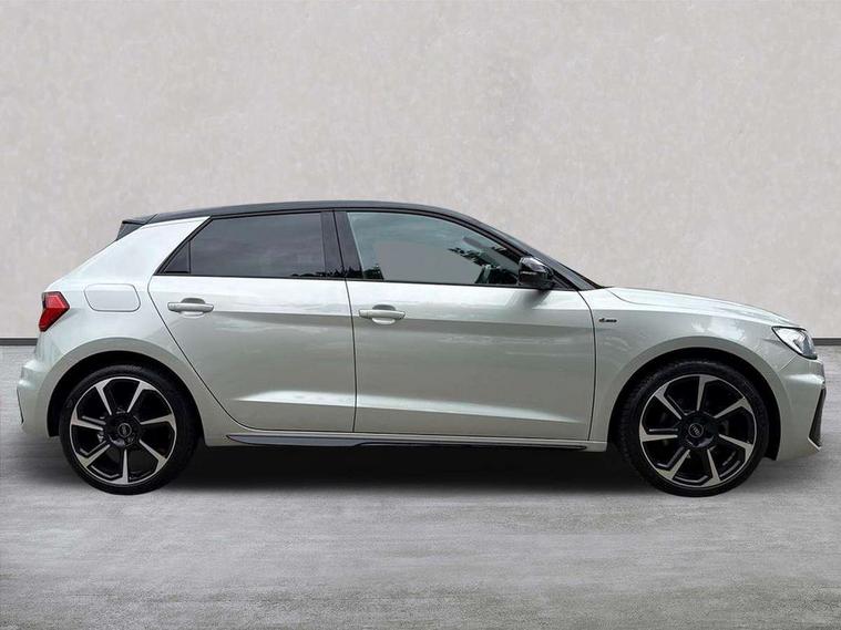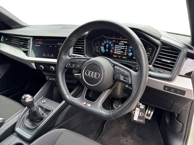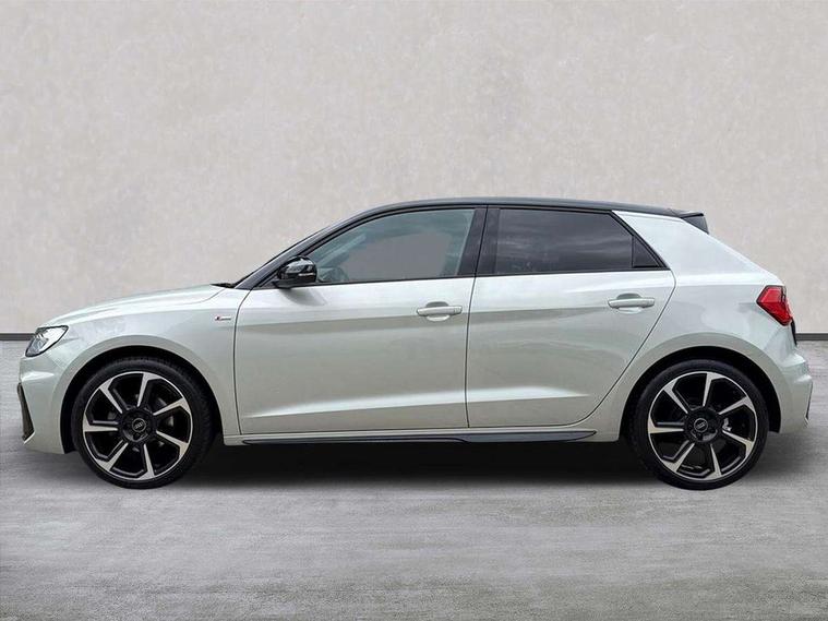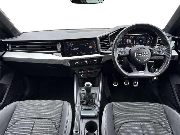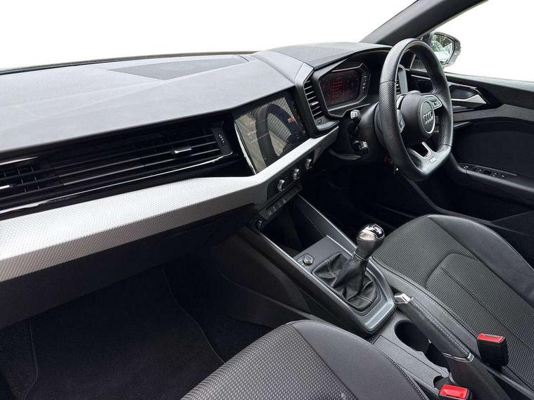 Aluminium trim for control switches, air vents and digital instrument cluster, Silver grey inlays polygon structure in diamond paint finish, Structured grey accent areas including air vents, door handle recesses and centre console in quartz paint finish, Black styling pack - A1 Sportback Black Edition, LED interior lighting pack - A1, Luggage compartment pack - A1, 18" 7 spoke rotor design alloy wheels in gloss anthracite black, diamond cut finish, Anti theft alarm, Anti theft wheel bolts and loose wheel warning, Audi pre-sense front with pedestrain and cyclist recognition, Immobiliser, Remote central locking with 2 foldaway keys, 1 x SDXC card reader, 1 x USB type C and 1 USB type A charging points, DAB Digital radio, MMI radio plus with 8.8" colour MMI display screen and MMI touch, 3x3 point rear seatbelts, Brake assist function, Driver and front passenger airbag with front side and head airbags, Electronic Stability Control including ABS, EBD, ASR and EDL, Front and rear seatbelt reminder, Front passenger airbag deactivation switch, Hill hold assist, Seatbelt height adjustment for front seats, Seatbelt monitoring, Tyre pressure warning light, Warning triangle and first aid kit, Auto dimming rear view mirror, Black door mirrors, Black side skirts, Door sills with aluminium inlays and S Line logo, Electric front and rear windows, Electrically adjustable, heated, folding door mirrors with integrated LED side indicator, Front side air inlets in grained matt black and C frame in titanium black, Heat insulating glass windscreen and side windows, Heated rear windscreen, LED headlights with LED rear lights + dynamic rear indicators + headlight adjustment and high beam, turning light + LED daytime running lights, Radiator protective grille frame in matt aluminium silver, Rain and light sensors, Rear fog lights, Rear wiper, Side front spoiler lips in grained matt black, 12V socket in centre console with two cup holders, 3 rear seats with headrests, 3 spoke flat bottomed multi-function plus leather steering wheel with S badging, grips in preforated leather and contrast stitching, 40:60 Split folding rear seat or folded fully, Black cloth headlining, Driver and passenger seat with manual height adjust with forward and backwards adjustment, Front and rear black floor mats with contrast stitching in fine silver, Front head restraints, Height and reach adjustable steering wheel, ISOFIX child seat mounting for front passenger and outer rear seats including top tether attachment point of outer rear seats, Leather gear knob with aluminium trim, Luggage compartment light with front and rear reading lights, Manually adjustable lumbar support in front seats, Stainless steel pedals, 10.25" Digital instrument cluster display classis style instrument dials + speed, odometer, time, outside temperature, telephone menu + fuel level warning, Audi connect safety emergency and service including E-call, Audi drive select - power steering assistance + engine, Audi smartphone interface with connect compatible smartphone via USB directly MMI display + Nav, music, third party apps controlled via MMI controller, Automatic start/stop system, Bluetooth interface, Cruise control, Driver's information system, Electromechanical power steering, Lane departure warning system, Rear parking sensor, Service interval indicator, Speed limiter, Voice control system, Washer fluid level indicator, Sports suspension,
