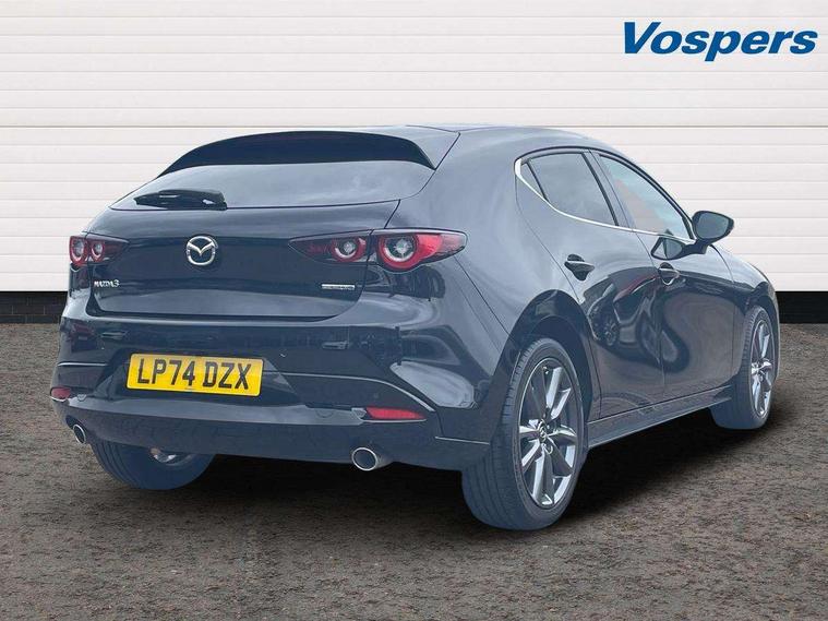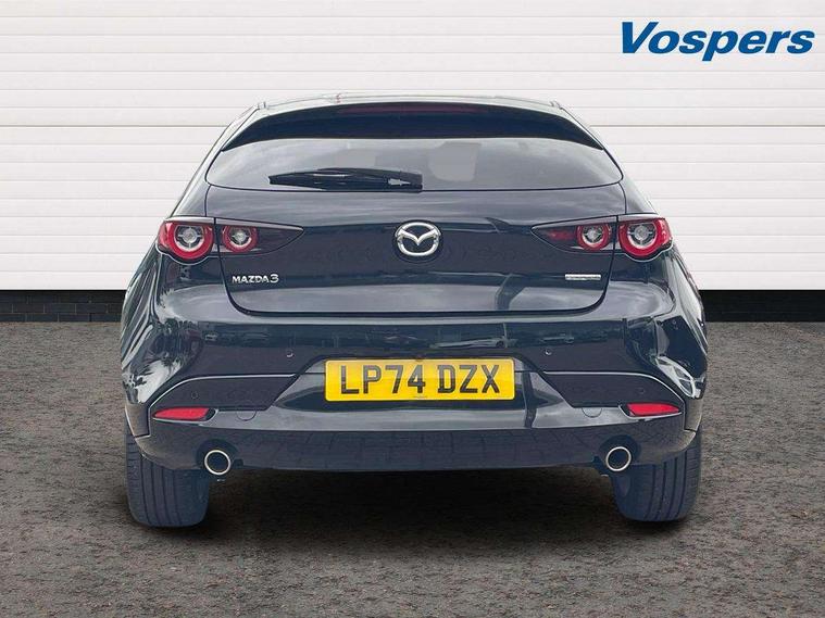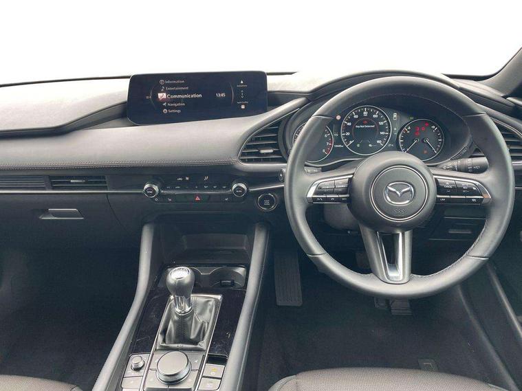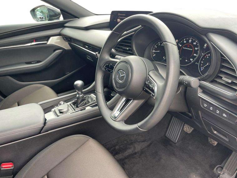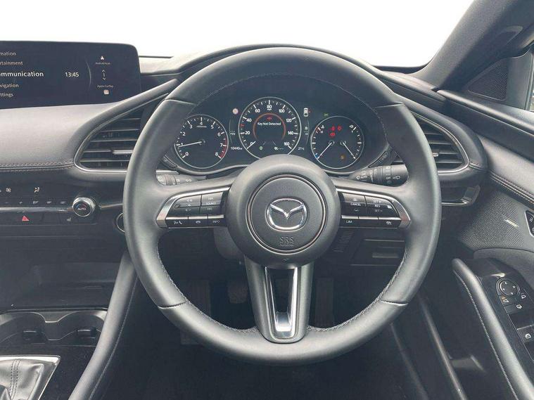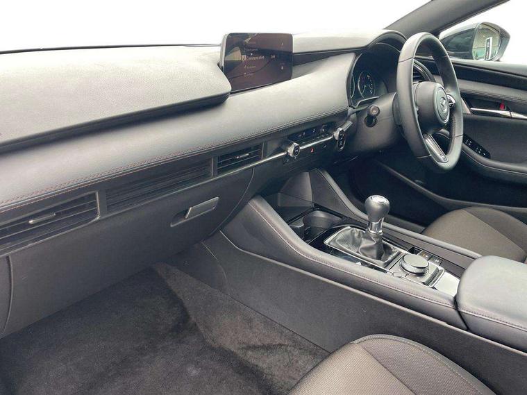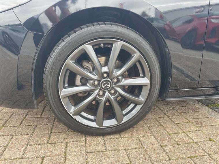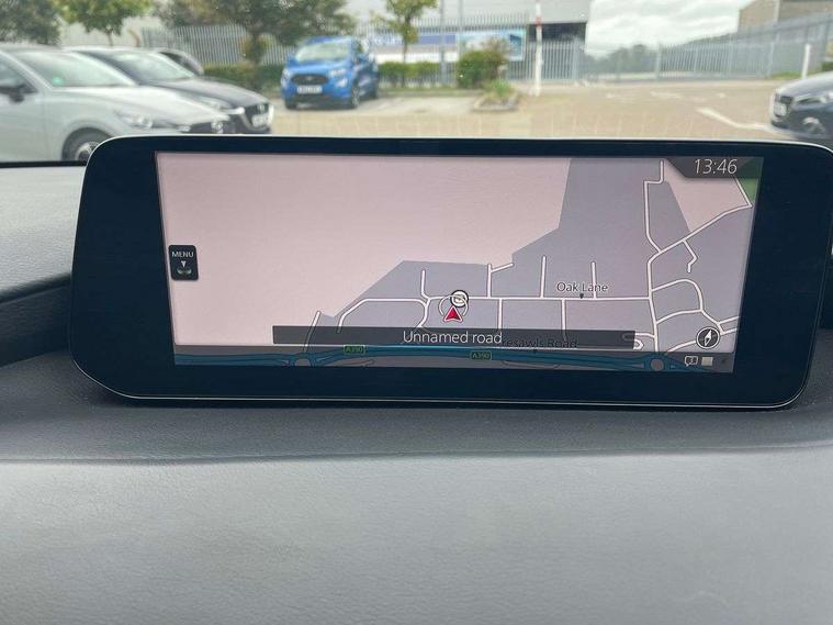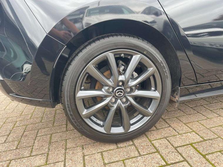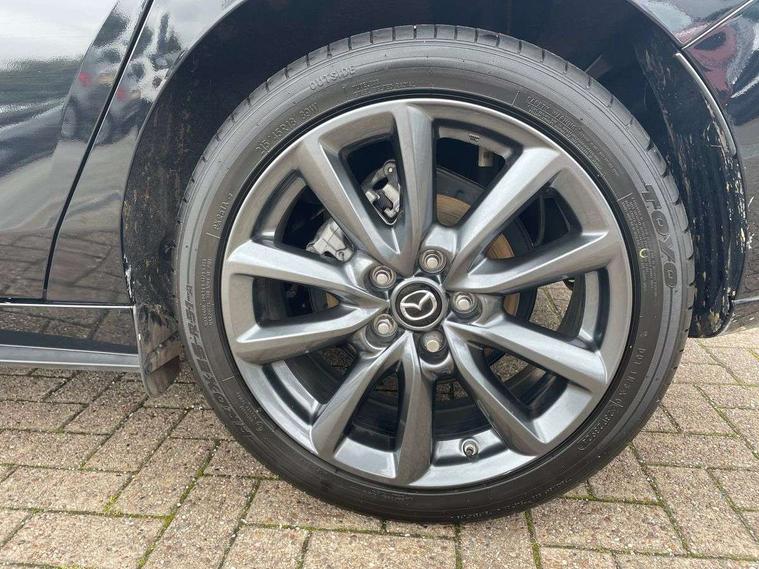 10.25" display with Mazda Connect infotainment, 7" colour TFT display, Adjustable speed limiter, Advanced E-call with GPS, Alexa in-car voice assistant, Audio transfer from bluetooth devices, Blind spot monitoring with rear cross traffic alert, Car finder, Colour active driving display inc Windscreen projected, Traffic Sign Recognition, turn-by- turn navigation and Mazda Radar Cruise Control information, Digital instrument cluster, Driver attention alert system, Emergency stop signalling system, Engine start/stop button, Front and rear parking sensor with audible and visual warning, Head up Display, Integrated bluetooth with steering wheel mounted controls, Intelligent speed assist, Lane keep assist system (LAS) with Lane departure warning system (LDWS), Mazda connected services, Mazda Navigation System with european mapping, Mazda Radar Cruise Control, Mobile App interface, Multimedia Commander, PAS, Qi wireless charging, Reversing camera, Service indicator, Tailgate, Traffic sign recognition (TSR), Trip computer, Wireless Apple CarPlay/Android Auto, Cylinder Deactivation, i-stop, 2 USB-C ports in the front, Mazda Multimedia System with AM / FM / DAB radio with 12 Speaker Bose sound system, bose centerpoint, bassmatch+audiopilot technology, Adaptive LED Headlights, Auto dimming driver's door mirrors, B-pillar garnish in piano black, Body coloured door mirrors, Coming/leaving home lighting function, Dark metallic finish signature wing, Dual chrome tailpipes tip, Dusk sensing headlights, Electric front/rear windows with one touch/auto up/down, Electrically adjustable, heated auto power folding door mirrors, Frameless auto dimming interior rear view mirror, Front body coloured bumper with black lower bezel, Front kodo turn signal, Gloss black finish front grille, Gloss black rear roof spoiler, LED auto headlight levelling, LED indicator lights, LED third brake light, Privacy glass with dark tinting on rear side windows and rear window, Rain sensing front wipers with adjustable sensitivity and speed, Rear colour coded bumper with gloss black lower moulding, Rear fog lights, Rear side wing doors, Signature LED daytime running lights, Signature LED rear combination lights, Speed adjustable rear wash wiper with intermittent wipe, 12v electrical power outlet, 3 seat bench in 2nd row, 60/40 split fold down rear seats, Chrome interior trim accents with steering wheel centre bezel, surround of engine start / stop button and glove box handle, Cloth upholstery, Dark cloth door panel inserts, Dark roof headlining, ceiling and pillars, Driver seat manual slide, recline, height and seat tilt adjust, Driver, front passenger and two rear door pockets, Driver, Front passenger and two rear grab handles with coathooks, Driver/passenger sunvisors + vanity mirrors (drivers side with ticket holder), Dual zone climate control air conditioning, Folding rear centre armrest with two cup holders, Front and rear courtesy lamps, Front armrest, Front centre storage with two cupholders, Front head restraints, Front passenger seatback pocket, Front passengers seat manual slide, recline and height adjustment, Gear shift indicator, Heated front seats with 3 stage setting, Illuminated glovebox, Interior colouration dashboard and doorcards in black with dark stitching, ISOFIX child seat anchorage points attached on outer rear seats, Leather wrapped gear shift knob, Leather wrapped steering wheel, LED interior light, LED light in luggage compartment, Power outlet in luggage compartment, Roof mounted sunglasses holder, Single front passenger seat, Three height adjustable rear head restraints, Tilt/height adjustable steering wheel, 3 point ELR front seatbelts with pretensioners, 3 rear 3 point seatbelts with ELR, Anti-lock braking system (ABS), Drivers knee airbag, DSC - Dynamic Stability Control, Dual stage driver and single stage passenger airbags, EBD - Electronic brakeforce distribution, Electronic parking brake with auto disengage function and auto hold function, Front and rear curtain airbags, Front passenger airbag cut-off switch, Front side airbags, Front smart city brake support, G-Vectoring control plus, Hill launch assist, Intelligent Traction Control system, Manual child lock in rear doors, Mild Hybrid system with regenerative braking, Seatbelt reminder audible warning for driver, passenger and rear seats, Tyre pressure monitoring system (TPMS), Auto door lock when driving, Remote central locking + deadlocks, Smart keyless entry, Thatcham accredited alarm and immobiliser, 18" Grey alloy wheels, Emergency tyre repair kit,