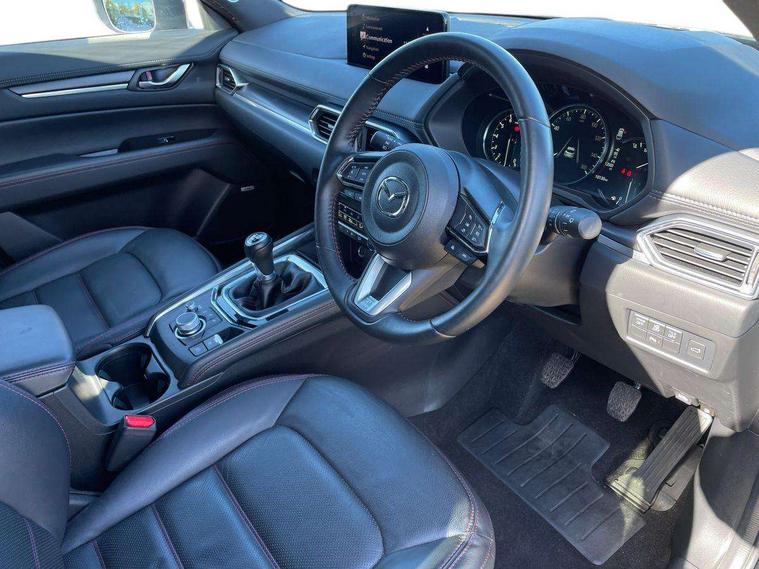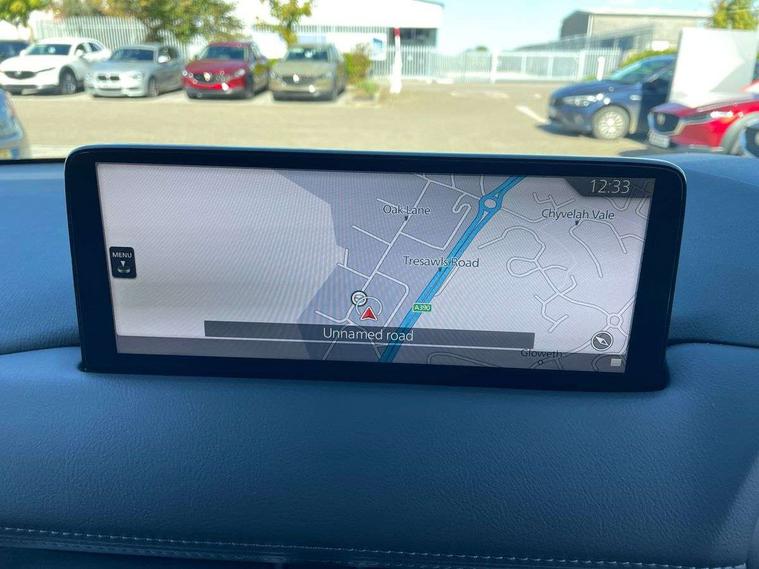 10.25" display with Mazda Connect infotainment, 7" colour TFT display, Advanced blind spot monitoring, Bluetooth connectivity with voice control, Collision prevention assist, Connected services, Cruising Traffic Support, Electric power steering, Emergency stop signalling system, Engine start/stop button, Forward collision warning, Front and rear parking sensors, Integrated navigation system, Intelligent speed assist, Lane departure warning system, Lane keep assist, Power liftgate, Qi wireless phone charging, Radar cruise control, Rear cross traffic alert, Reversing camera, Service indicator, Traffic sign recognition (TSR), Trip computer, Windscreen projected colour active driving display (HUD) with memory, Wireless apple car play/android Auto, Cylinder Deactivation, i-stop, AM/FM radio, Bluetooth audio streaming, Bose premium sound system with 10 speakers, DAB Digital radio, Multimedia Commander including separate volume dial, Steering wheel mounted audio controls, Adaptive front lighting system, Auto dimming rear view mirror, Automatic headlights, Black honeycomb door trim decoration panel, Black honeycomb interior decoration panel, Body colour roof spoiler, Coming/leaving home lighting function, Door mirror integrated indicators, Dual large chrome tailpipes, Dusk sensitive headlamps, Electric front/rear windows with one touch auto up/down, Front grille in gloss black finish, Front grille in gloss black with red accent + gloss black signature wing, Gloss black B and C pillars garnish, Gloss black door mirrors, Gloss black front and rear lower bumper mouldings, Gloss black tire arch and side mouldings, High beam assist, Intermittent rear wash/wipe, LED auto levelling, LED daytime running lights, LED front fog lights, LED Headlights, LED third brake light, Power folding and heated door mirrors, Power tilt/slide sunroof, Privacy glass (rear side windows only), Rain sensing front wipers, Rear side wing doors, Red front grille accent, Red stitching and accents on door trim, knee pad, console lid, steering wheel, shift boots, Scuff plates, Shark fin antenna, Signature LED rear combination lights, Variable intermittent front wash/wipe, Windscreen wiper de-icer, 12v electrical power outlet, 3 seat bench in 2nd row, 3 stage heated front seats, 40:20:40 Karakuri fold-flat seat system, 6 way electric adjustable passenger seat, 8 way electric driver seat with lumbar support + memory, Black roof lining, Cargo room flat floor board with waterproof undertray, Driver seat power slide, recline and height adjustment, Driver, Front passenger and two rear grab handles with coat hooks, Driver/passenger front seatback pockets, Driver/passenger sunvisors + illuminated vanity mirrors (drivers with ticket holder), Dual zone climate control, Folding centre armrest with 2 cup holders, Front and rear door pockets, Front centre storage with two cupholders, Front passenger seat power slide, recline and height adjustment, Gear shift indicator, Heated steering wheel, Humidity sensor, Illuminated glovebox, Interior dome light with integral spotlight, ISOFIX child seat anchorage points attached on outer rear seats, Karakuri tonneau cover, Leather upholstery, Leather wrapped steering wheel and gear knob, Luggage compartment LED lighting, Luggage compartment power outlet, Rear air vents, Rear headrests, Rear seat recline, Roof mounted sunglasses holder, Single front passenger seat, Three height adjustable head restraints, Tilt/height adjustable steering wheel, USB Connectivity (2x front Type-C, 2x rear Type-B), White interior LED illumination lighting, 3 point front seatbelts with pre-tensioners, 3 rear 3 point seatbelts, ABS, Advanced Smart City Brake Support - SCBS, Child locks on rear doors, Driver and front passenger side airbags, DSTC-Dynamic Stability and Traction Control, Dual front airbags, Electronic brake force distribution, Electronic parking brake with auto hold, ESP, Front and rear curtain airbags, Front passenger airbag deactivation, G-Vectoring control, Hill hold assist, Seatbelt reminder front and rear, Single stage passenger airbags, Smart brake support with forward obstruction warning, Tyre pressure monitoring system, Automatic door locking when moving off, Deadlock, Immobiliser, Power door locks, Remote central locking, Smart keyless entry, Thatcham Cat.1 alarm, 19" Black alloy wheels, Tyre repair kit,