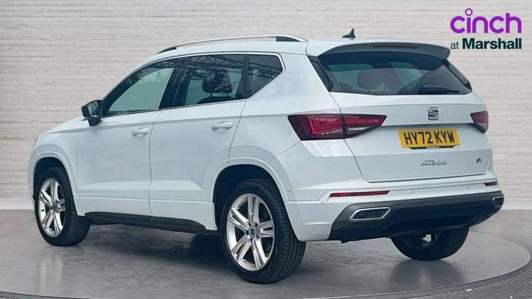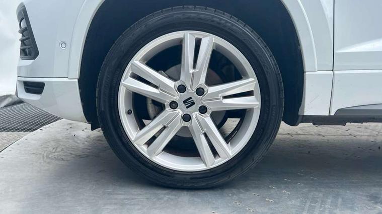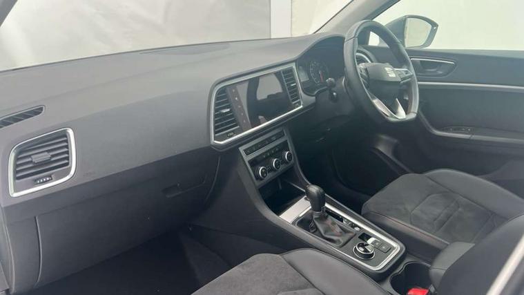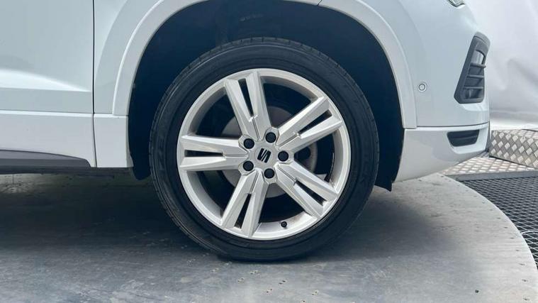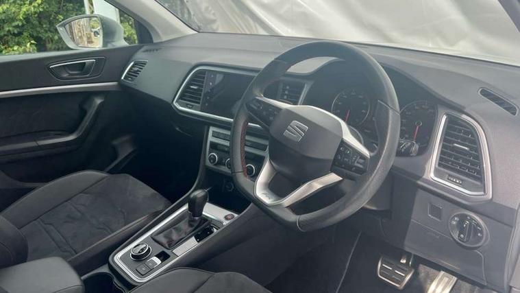 Colour multi-function on board computer display, Cruise control system with speed limiter, E-call, Outside temperature gauge, Progressive power assisted steering, SEAT drive profile with driving experience button - Normal, Sport, Eco and Individual mode, gearshift, steering and throttle response, Self parking functionality (includes front and rear parking sensors), Trip computer, Wireless full link smartphone integration, Wireless phone charger, Steering wheel mounted audio/phone controls, Body colour bumpers, Body coloured wheel arch surrounds, Chrome front grille frame, Chrome roof rails, Chrome side window trim, Dark tinted rear windows, Daytime running lights, Door mirrors with welcome light silhouette, Dynamic headlight range control with self adjusting whilst driving, Electric adjustable/heated/folding door mirrors, Front and rear electric windows, Full LED headlamps with lens and LED front fog lamps with cornering function, Illuminated aluminium front door sill, LED rear tail lights with dynamic indicators, Rear fog lights, Rear side wing doors, Rear spoiler, Rear wash/wipe, Simulated exhaust pipes in chrome frame, 12v socket in front, 3 seat bench in 2nd row, 60/40 split folding rear seat, Aluminium pedals, Drawer under right front seat, Dual zone climate control, Front and rear head restraints, Front centre armrest, Front seat back storage pockets, Height adjustable driver and passenger seat with lumbar adjustment, ISOFIX points in outer rear seats with top tether anchorage points, Leather steering wheel and gear knob, Microsuede upholstery with front comfort seats, Rear armrest and easy back seat release mechanism from boot, Single front passenger seat, Steering wheel mounted gearshift paddles, Convenience pack - Ateca, Interior lighting pack - Ateca, Navigation system pack with DAB - Ateca, 3x3 point rear seatbelts, ABS, Traction control system (TCS), Electronic stability control (ESC) and Electronic differential lock system (XDS), Airbags - Driver and front passenger airbag with deactivation, front side, two curtain and driver's knee airbags, Electric parking brake with auto hold function, Front and rear seatbelt reminder, Front assist with autonomous emergency braking, Hill hold control, Manual rear child locks, Tiredness recognition system, Traction control, Tyre pressure monitoring system, Alarm, Keyless entry, Locking wheel bolts, Chrome interior detailing, 18" Brillaint silver alloy wheels,