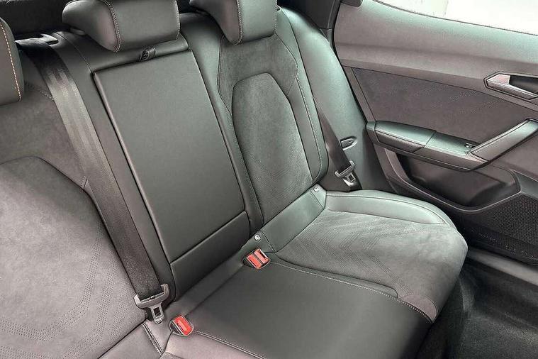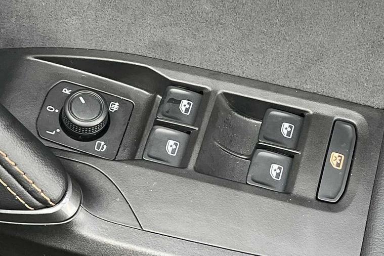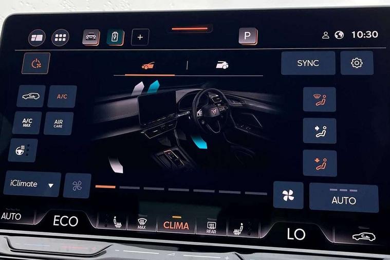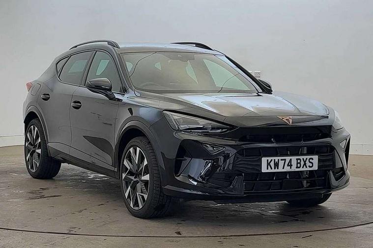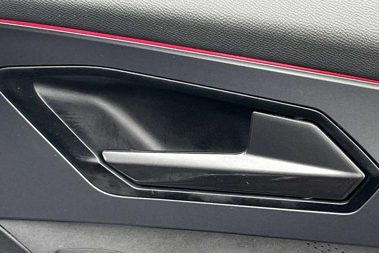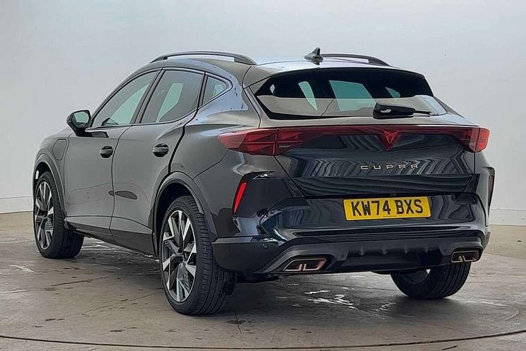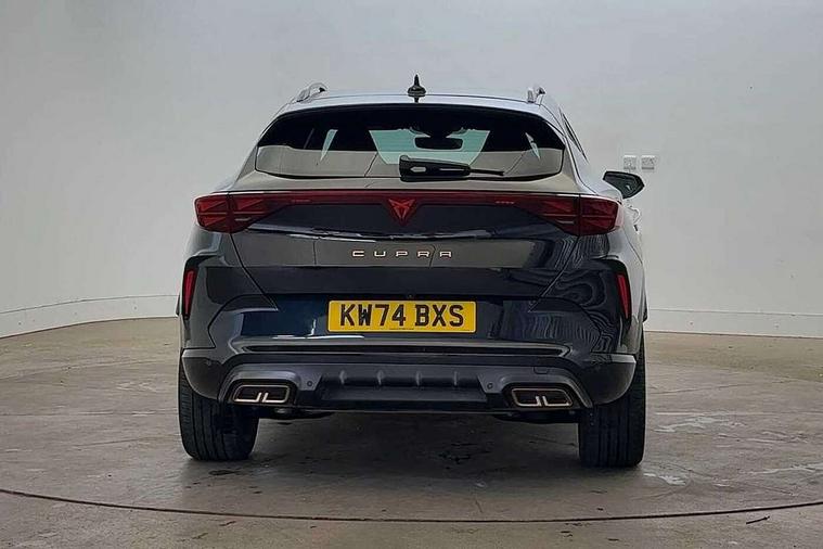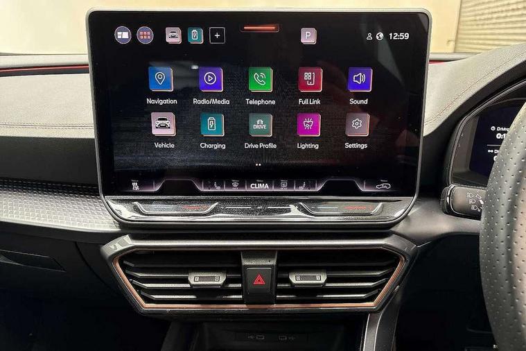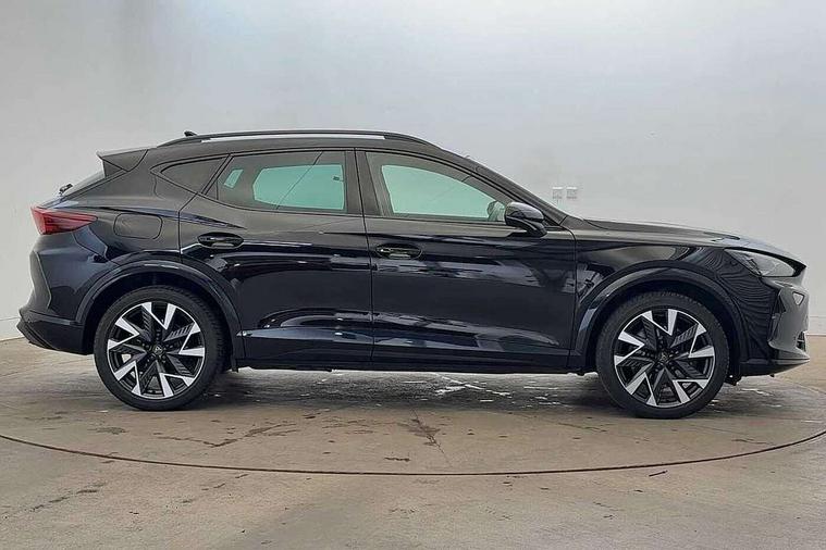 10.25" digital cockpit and configurable dashboard, Adaptive cruise control with follow-to-stop and speed limiter, Advanced driver alert system, Dynamic chassis control with driving profile selection (Comfort, Sport, CUPRA, Individual), Dynamic road sign display, Emergency steering support with turn assist, Forward collision warning with automatic braking, Front and rear parking sensors, Full link phone integration, Lane assist, Rear view camera, RPM, trip computer, outside temp gauge, instrument light brightness, low fuel warning light, lights on reminder, gearshift indicator, Service interval indicator, Speed sensitive power steering, Start/stop system with regenerative braking, Virtual pedal and electric tailgate, Voice control system, Wired Android Auto, Wireless apple carplay, Wireless phone charger, 10 amp mode 2 charging cable, 32 amp mode 3 charging cable, Adaptive chassis control with continuous operation, CUPRA sport suspension, Electronic locking differential and dynamic traction support, 2 front and 2 rear USB type C sockets, Media system with navigation, 12.9" touchscreen display, voice control, DAB, steering wheel mounted controls, Auto dimming rear view mirror, Body colour door handles, Body coloured bumpers, Dark grey wing mirror, Daytime running light with automatic headlight control and coming home feature, Door panel ambient lighting, Dynamic headlight range control, Electric front/rear windows, Electrically adjustable heated and folding door mirrors with memory function, Gloss black roof rails and window surrounds, High beam assist, LED 3rd brake light, LED front fog lamps with cornering function, LED Taillights with dynamic indicator, Matrix LED headlights with multifunction camera, Rain sensing wipers, Rear diffuser with copper simulated exhaust pipes, Rear fog lights, Rear side wing doors, Rear wash/wipe, Tinted rear windows, Welcome lights (within exterior mirror housing), 12V socket, 2 front and 2 rear reading lights, 3 seat bench in 2nd row, 60/40 split rear bench seat with armrest and mechanical seat release, Black headlining, Black interior roof lining, Cupra sports pedals, Dust/pollen filter, Electrically adjustable front seats with lumbar support and memory function, Front and rear head restraints, Front centre armrest, Heated front seats, Heated supersports multifunction leather steering wheel with satellite buttons and gear shift paddles, Height/reach adjust steering wheel, Illuminated aluminium doorsteps, Illuminated interior front door sills, Illuminated sunvisor with mirror, Isofix, Leather dashboard, door insert and side trim panel, LED smart wraparound lighting, PVC/Dinamica microfiber upholstery + bucket seats, Satellite steering wheel, Single front passenger seat, Storage pockets on rear of front seats, Three zone climate control with control panel in rear, 3 point seatbelts on all rear seats, ABS, Brake control system - ESC and brake booster, Child proof door locks, Driver and front passenger airbags with front passenger airbag de-activation, Electronic parking brake, Front and rear disc brakes, Front side curtain airbags, Hill hold control, Public e-call, Seat belt reminder for front and rear seats, Tyre pressure monitoring system, Anti theft alarm system, KESSY Advanced - Keyless start, keyless entry with SAFELOCK, Locking wheel bolts, Copper and aluminium interior detailing, 19" Sandstorm machined sport black and silver alloy wheels, Breakdown and tool kit,