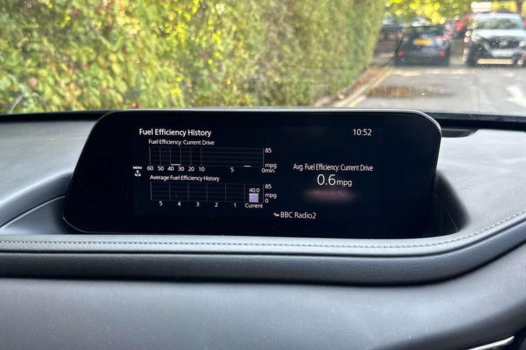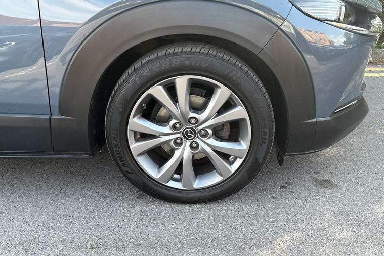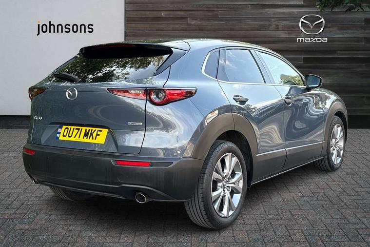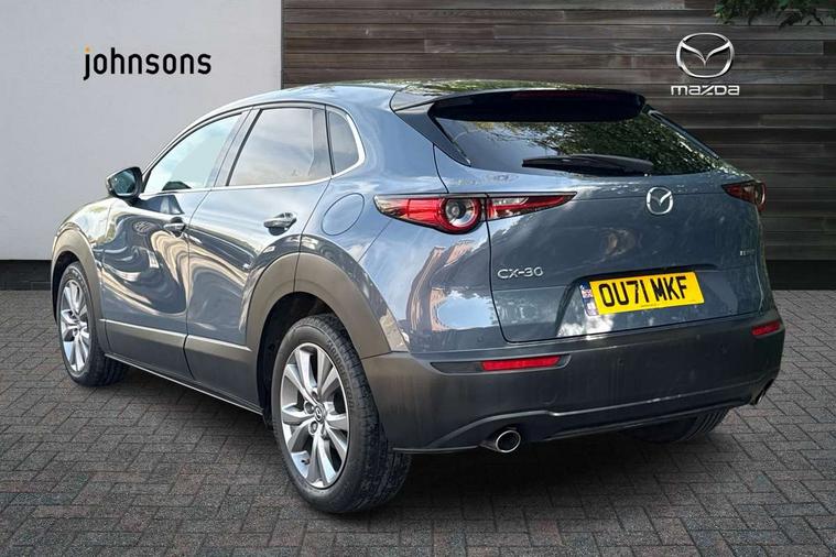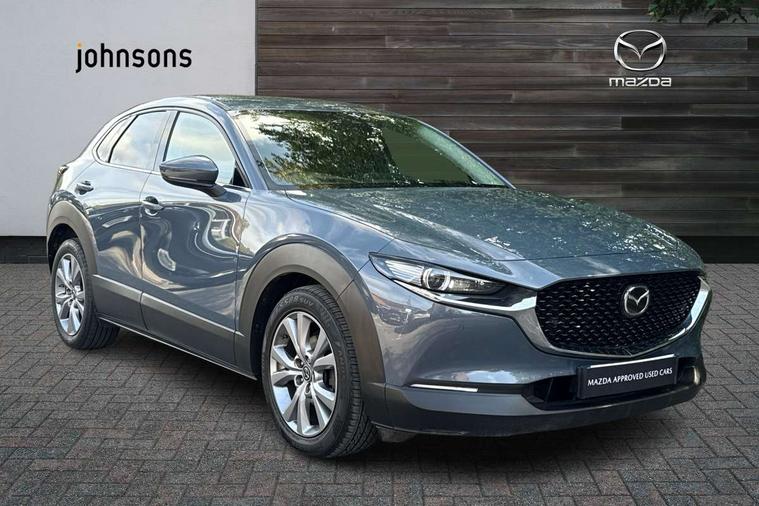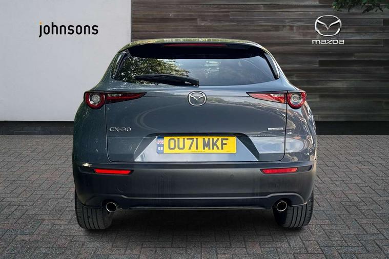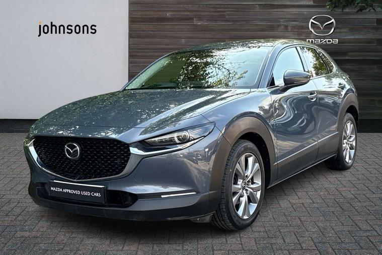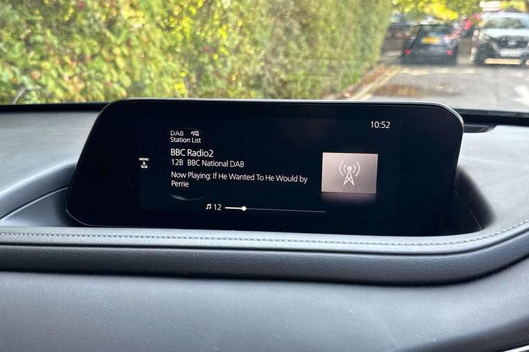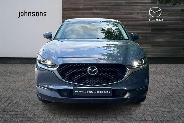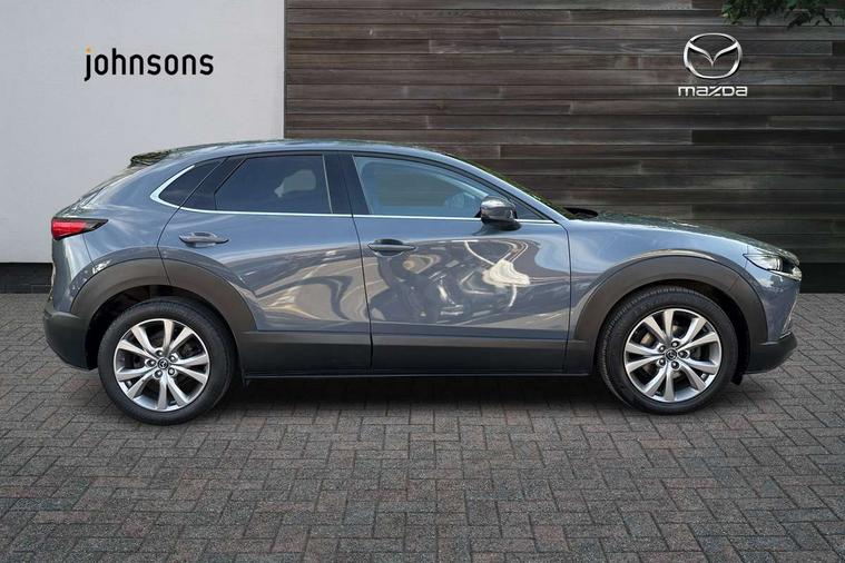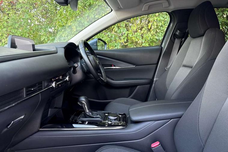 7" TFT Colour driver instrument panel display, 8.8" Colour centre touch screen display with Mazda Connect infotainment, Adaptive cruise control (Mazda radar cruise control) features stop and go, Apple car play/Android Auto, Blind spot monitoring with rear cross traffic alert, Drive mode selector, Driver attention alert system, E-call with GPS, Emergency stop signalling system, Engine start/stop button, Front and rear parking sensors, Integrated bluetooth, Integrated Mazda navigation system, Intelligent speed assist, Lane keep assist system (LAS) with Lane departure warning system (LDWS), PAS, Power lift gate, Reversing camera, Service indicator, Trip computer, Window projected colour active driving display (head up display) with traffic sign recognition, Cylinder Deactivation, i-stop, 2 USB charging ports, AM / FM / DAB radio with 8 speakers, Multimedia Commander including separate volume dial, Steering wheel mounted audio/bluetooth controls, Adaptive LED Headlights, Auto dimming driver's door mirror, B-pillar and C-pillar garnishes in piano black finish, Body coloured, electrically adjustable, heated auto power folding door mirrors with integrated indicators, Coming/leaving home lighting function, Dual chrome exhaust, Dusk sensing headlights, Electric front/rear windows with one touch auto up/down, Frameless auto dimming interior rear view mirror, Front grille in piano black finish, Front kodo turn signal, High beam assist, Piano black rear roof spoiler, Privacy glass (rear side windows and rear screen), Rain sensing front wipers with adjustable speed and intermittent wipe, Rear fog lights, Rear wiper, Signature front LED daytime running lights, Signature LED rear combination lights with LED rear turn lights, 60/40 split fold down rear seats, Chrome centre bezel steering wheel, Chrome horn pad ring, Cloth door panel inserts, Cloth upholstery with interior accents, Dashboard, door cards and front centre armrest in navy blue cloth, Driver and front passenger visors with covered vanity mirror and driver ticket holder, Driver seat manual slide, recline and height adjust, Driver, Front passenger and two rear grab handles with coathooks, Dual zone climate control air conditioning with rear air vents, Electrical power outlet, Folding rear centre armrest with two cup holders, Front and rear (x3) head restraints, Front and rear door pockets, Front and rear LED lighting, Front armrest, Front centre storage with two cupholders, Front passengers seat manual slide, recline and height adjustment, Glove box handle with chrome surround, Glovebox illumination, Heated front seats with 3 stage setting, ISOFIX child seat anchorage points attached on outer rear seats, Leather wrapped gear shift knob, Leather wrapped steering wheel with telescopic and tilt adjustment, Luggage compartment light, Paddle shift controls, Rear passenger seat map pockets, Roof mounted sunglasses holder, 3 point ELR front seat belts x2 with pretensioners, 3 point ELR rear seat belts, Anti-lock braking system (ABS), Driver/Front Passenger airbags, Drivers knee airbag, DSC - Dynamic Stability Control, Electronic parking brake with auto disengage function and auto hold function, Front and rear curtain airbags, Front passenger airbag cut-off switch, Front side airbags, Front smart city brake support, G-Vectoring control plus, Hill launch assist, Mild Hybrid system with regenerative braking, Seatbelt reminder for driver/front passenger and rear seats, Traction control system (TCS), Tyre pressure monitoring system (TPMS), Remote central locking with deadlocking and automatic door lock when driving, Smart keyless entry, Thatcham accredited alarm and immobiliser, 18" Silver metallic alloy wheels, Emergency tyre repair kit,