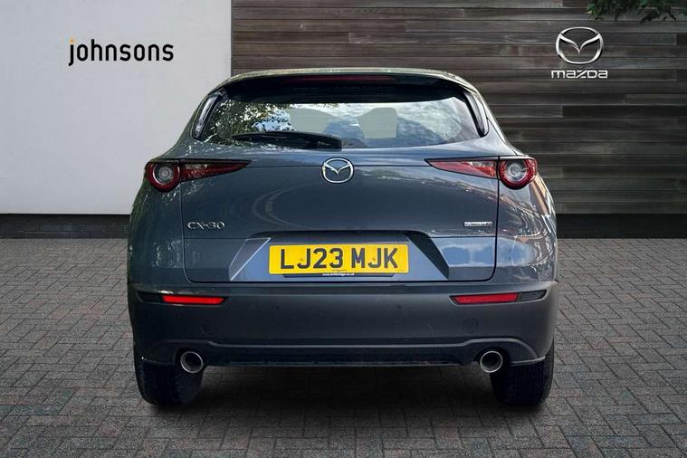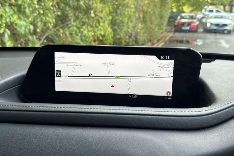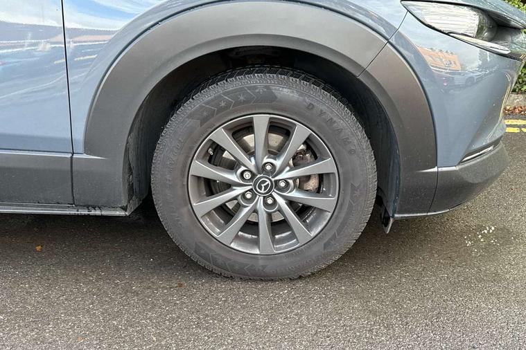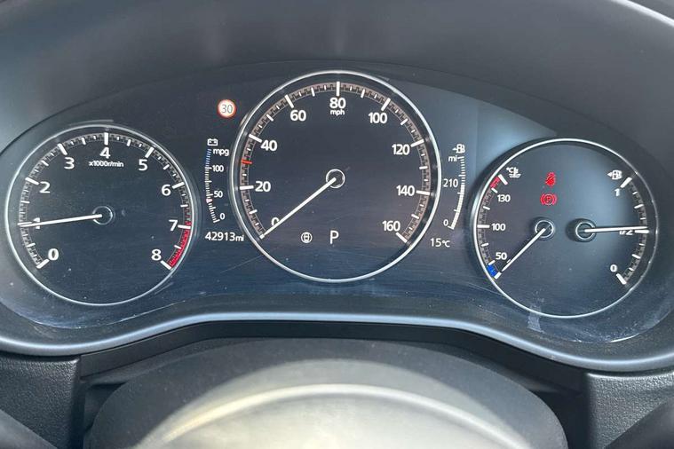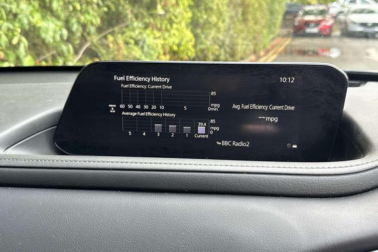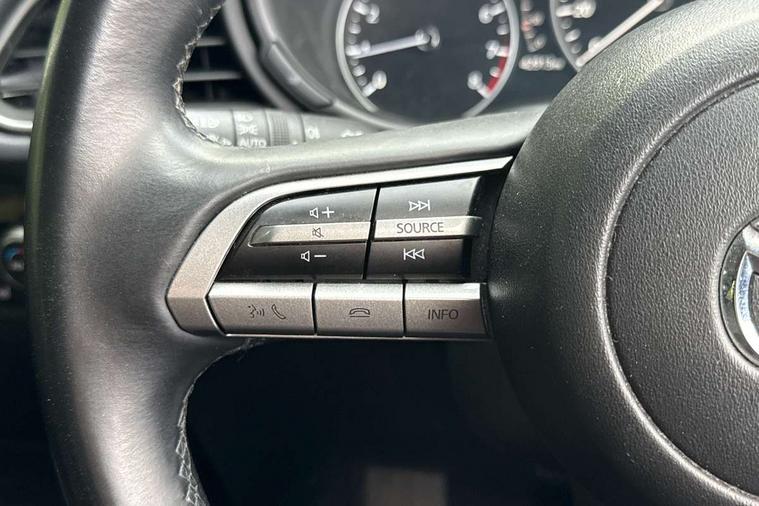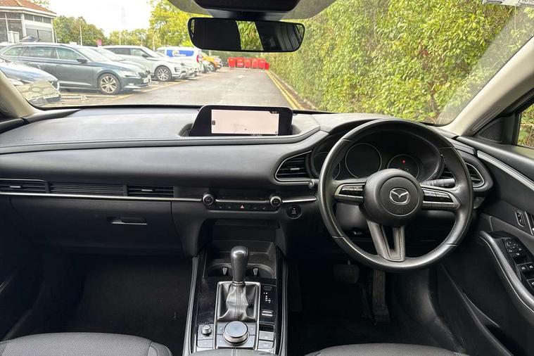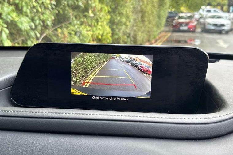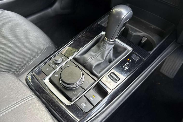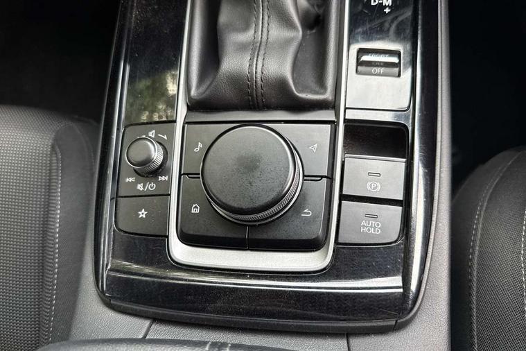 7" TFT Colour driver instrument panel display, 8.8" Colour centre touch screen display with Mazda Connect infotainment, Adaptive cruise control (Mazda radar cruise control) features stop and go, Apple car play/Android Auto, Blind spot monitoring with rear cross traffic alert, Drive mode selector, Driver attention alert system, E-call with GPS, Emergency stop signalling system, Engine start/stop button, Front and rear parking sensors, Integrated bluetooth, Integrated Mazda navigation system, Intelligent speed assist, Lane keep assist system (LAS) with Lane departure warning system (LDWS), Mazda connected services, PAS, Reversing camera, Service indicator, Tailgate, Traffic sign recognition, Trip computer, Windscreen projected colour active driving display (HUD), i-stop, 2 USB charging ports in front inner central armrest, AM / FM / DAB radio with 8 speakers, Multimedia Commander including separate volume dial, Steering wheel mounted audio/bluetooth controls, B-pillar and C-pillar garnishes in satin black finish, Auto dimming driver's door mirror, Auto dimming rear view mirror, Auto headlight levelling, Body coloured, electrically adjustable, heated auto power folding door mirrors with integrated indicators, Chrome finish signature wing in front grille, Coming/leaving home lighting function, Dual chrome exhaust, Dusk sensing headlights, Electric front/rear windows with one touch auto up/down, Front kodo turn signal, Gloss black rear roof spoiler, LED headlights with halogen daytime running lights and high beam control, LED rear combination lights, Rain sensing front wipers with adjustable speed and intermittent wipe, Rear fog lights, Rear side wing doors, Rear wiper, Satin black front grille, Third brake light, 12V power outlet in centre console, 3 seat bench in 2nd row, 60/40 split fold down rear seats, Cloth upholstery with interior accents, Dark cloth door panel inserts, Dashboard, door cards and front centre armrest in black cloth, Driver and front passenger visors with covered vanity mirror and driver ticket holder, Driver seat manual slide, recline, height and seat tilt adjust, Driver, front passenger and two rear door storage, Driver, Front passenger and two rear grab handles with coathooks, Dual zone climate control air conditioning with rear air vents, Folding rear centre armrest with two cup holders, Front and rear (x3) head restraints, Front and rear LED lighting, Front armrest, Front centre storage with two cupholders, Front passenger seatback pockets, Front passengers seat manual slide, recline and height adjustment, Glovebox illumination, Heated front seats with 3 stage setting, ISOFIX child seat anchorage points attached on outer rear seats, Leather wrapped gear shift knob, Leather wrapped steering wheel with telescopic and tilt adjustment, LED luggage compartment lighting, Light roof headlining and pillars, Roof mounted sunglasses holder, Single front passenger seat, 3 point ELR front seat belts x2 with pretensioners, 3 point ELR rear seat belts, Anti-lock braking system (ABS), Drivers knee airbag, DSC - Dynamic Stability Control, Electronic parking brake with auto disengage function and auto hold function, Front and rear curtain airbags, Front dual stage driver and single stage front passenger airbags, Front passenger airbag cut-off switch, Front side airbags, Front smart city brake support, G-Vectoring control plus, Hill launch assist, Manual child lock in rear doors, Mild Hybrid system with regenerative braking, Seatbelt reminder for driver/front passenger and rear seats, Traction control system (TCS), Tyre pressure monitoring system (TPMS), Remote central locking with deadlocking and automatic door lock when driving, Smart keyless entry, Thatcham accredited alarm and immobiliser, 16" Grey alloy wheels, Emergency tyre repair kit,