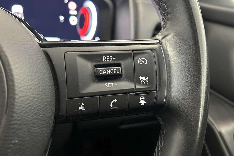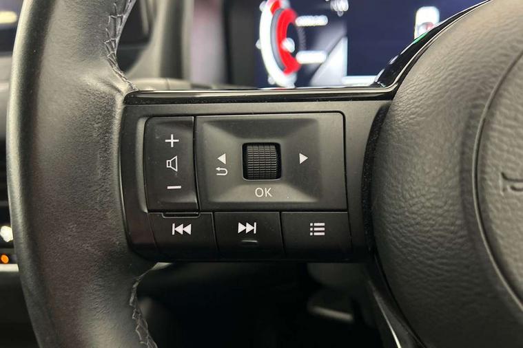 Android auto/Apple CarPlay (Wired), Blind spot warning, Drive modes (sport, normal, eco), Electric speed sensitive power steering, Emergency and breakdown call, Front and rear parking sensors, Full Digital 12.3" TFT Digital Combimeter, Google maps services - search, weather, 3D maps and Google street view, Idle stop/start system, Intelligent around view monitor, Intelligent Cruise control (ICC), Intelligent driver alert system, Intelligent forward collision warning, Intelligent lane intervention, Lane departure prevention, Lane departure warning system, Maximum speed limiter, Moving object detection, Nissan connect 12.3 inch touchscreen infotainment system, Nissan connect navigation, Push button starter, Rear cross traffic alert, Rear view camera, Remote control services - door locks, lights, horn and car locator, Telematics - notifications and connectivity services, TomTom live traffic services, Traffic sign recognition with legal speed adjustment, Trip computer, Virtual personal assistant and firmware over the air capability, Wireless apple carplay, 6 speakers, AM/FM audio system with DAB, Bluetooth audio streaming, Front USB connections (Type-A and Type-C), Rear USB charging only ports (Type-A and Type-C), Auto dimming rear view mirror, Auto rear wiper when reversing, Automatic hazard signal with emergency stop signal, Body colour mirror caps, Body coloured door handles, Bodyside mouldings, Chrome side window finisher, Door handle with button, Electric auto folding door mirrors, Electrically adjustable and heated door mirrors with LED turn indicator, Follow me home headlights, High beam assist, Intelligent auto headlights, LED daytime running lights, LED Headlights, LED rear lights, One touch front and rear electric windows with remote opening and closing, Partially body coloured bumpers, Privacy glass, Rear bumper with graphite insert, Rear reversing light (bulb lighting), Rear roof spoiler, Rear side wing doors, Rear styling plate, Shark fin antenna, Splash free rain sensing wipers, Super UV and infrared cut glass, Three blink turn signal, 12v power socket in dashboard and luggage, 2x Rear coat hooks, 3 bench rear seats in 2nd row, 3 rear headrests, 4 folding assist grip, 6 Luggage hooks - 4 on floor, 2 on side, 6-way manually adjustable driver's seat, 60/40 split folding rear seat bench, Ambient lighting around centre console, Centre console storage tray, Chrome interior door handles, Cloth monoform upholstery, Driver and front passenger sunvisors with illuminated vanity mirrors, Driver seat back pocket, Dual zone automatic climate control with pollen filter, Electrically adjustable lumbar support for driver, Front and rear door storage, Front centre console and armrest, Front cupholders x 2, Front door with bottle holders, Glovebox with light, Hard trunk cover, Height adjustable driver's seat, Height adjustable front headrests, Height adjustable passenger seat, Leather shift knob, Leather steering wheel, Luggage board system, Luggage space lighting, Manually adjustable passenger (slide recline + lifter), Multifunction steering wheel, Passenger seat back pocket, Rear armrest with 2 cupholders, Rear door bottle holders, Single front passenger seat, Soft PVC kneepad, Steering wheel switches, Sunglasses holder, Tilt/telescopic adjustable steering wheel, Two rear isofix child seat anchorage points with top tether, Welcome light and console tray ambient lighting, 3x3 point rear seatbelt pretensioners + load limiters, ABS with EBD and brake assist, Active brake limited slip, Auto hold function, Child locks on rear doors, Curtain and front side, far side airbags, Driver and passenger airbags, Driver, passenger and 2nd row rear seat belt reminder, Electronic parking brake, Front seatbelt pretensioners + load limiters, Height adjustable front seatbelts, Hill start assist, Intelligent blind spot intervention, Intelligent front emergency braking with pedestrian, cyclist recognition and junction assist, Intelligent rear automatic braking, Tyre pressure monitoring system, Vehicle dynamic control, Capless fuel filler, Engine immobiliser, Intelligent Key, Remote central door locking with deadlocking, Thatcham Cat.1 alarm, Interior instrumental panel B finisher, 18" Diamond cut alloy wheels, Tyre puncture repair kit,