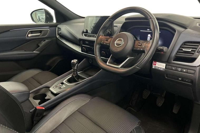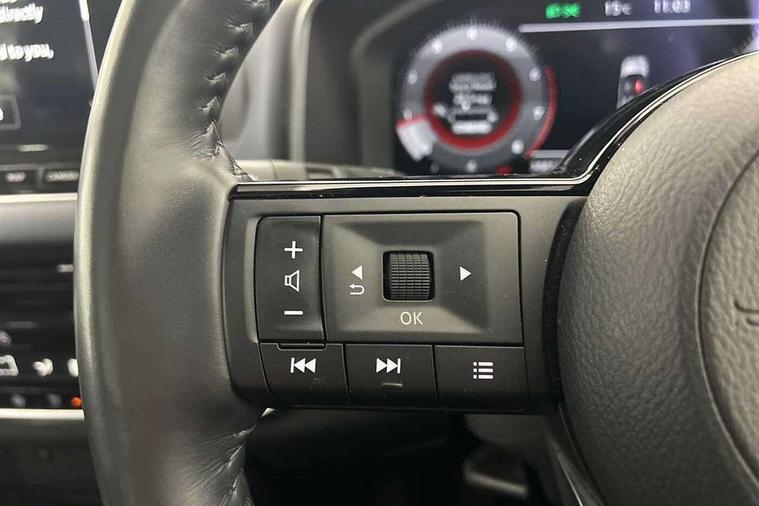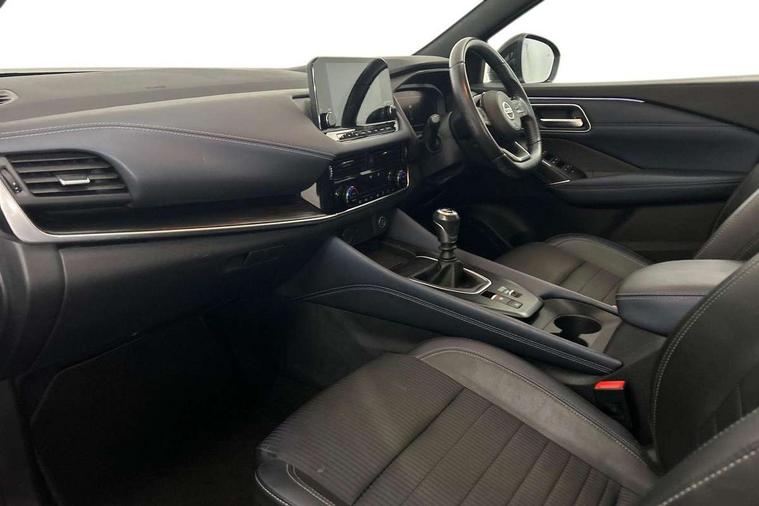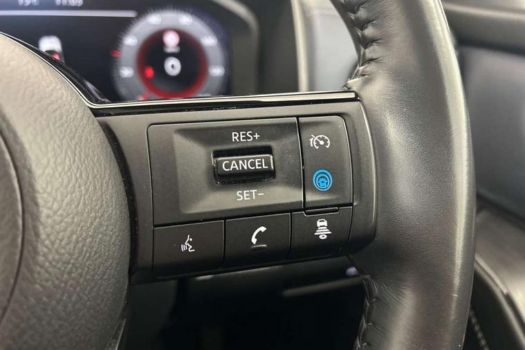 Blind spot warning, Drive modes (sport, normal, eco), Electric speed sensitive power steering, Emergency and breakdown call, Front and rear parking sensors, Full Digital 12.3" TFT Digital Combimeter, Google maps services - search, weather, 3D maps and Google street view, Hands free power tailgate, Idle stop/start system, Intelligent around view monitor, Intelligent Cruise control (ICC), Intelligent driver alert system, Intelligent forward collision warning, Intelligent lane intervention, Lane departure prevention, Lane departure warning system, Moving object detection, Nissan connect 9" touchscreen infotainment system, Nissan connect navigation, Push button starter, Rear cross traffic alert, Remote control services - door locks, lights, horn and car locator, Telematics - notifications and connectivity services, TomTom live traffic services, Traffic sign recognition with legal speed adjustment, Trip computer, Virtual personal assistant and firmware over the air capability, Wireless Apple CarPlay and wired Android Auto, Wireless charging pad, 6 speakers, AM/FM audio system with DAB, Bluetooth audio streaming, Front USB connections (Type-A and Type-C), Rear USB charging only ports (Type-A and Type-C), Auto dimming rear view mirror, Auto rear wiper when reversing, Body colour mirror caps, Body coloured door handles, Bodyside mouldings, Chrome side window finisher, Door handle with button, Dusk sensor, Electric auto folding door mirrors, Electrically adjustable and heated door mirrors with LED turn indicator, Fixed panoramic glass roof with electric sunshade, Follow me home headlights, Front and rear LED turning signals, Intelligent auto headlights, LED daytime running lights, LED rear lights, One touch front and rear electric windows with remote opening and closing, Partially body coloured bumpers, Privacy glass, Rear roof spoiler, Rear side wing doors, Rear styling plate, Roof rails, Shark fin antenna, Splash free rain sensing wipers, Super UV and infrared cut glass, Three blink turn signal, 12v power socket in dashboard and luggage, 2 way electrical driver lumbar adjustment, 2x Rear coat hooks, 3 bench rear seats in 2nd row, 3 rear headrests, 4 folding assist grip, 6 Luggage hooks - 4 on floor, 2 on side, 60/40 split folding rear seat bench, 8 way electric adjustable drivers seat, Ambient lighting around centre console, Ambient lighting in front doors, Centre console storage tray, Chrome interior door handles, Cloth/syntech leather monoform upholstery, Dark headlining, Driver and front passenger sunvisors with illuminated vanity mirrors, Driver seat back pocket, Dual zone automatic climate control with pollen filter, Front and rear door storage, Front cupholders x 2, Front door with bottle holders, Glovebox with light, Hard trunk cover, Height adjustable front headrests, Leather shift knob, Leather steering wheel, Luggage board system, Luggage space lighting, Manual lumbar support on passenger seat, Manually adjustable passenger (slide recline + lifter), Multifunction steering wheel, Passenger seat back pocket, PVC front centre console and armrest, Rear armrest with 2 cupholders, Rear door bottle holders, Single front passenger seat, Soft PVC kneepad, Steering wheel switches, Tilt/telescopic adjustable steering wheel, Two rear isofix child seat anchorage points with top tether, Welcome light and doors with console tray ambient lighting, Drive assist pack - Qashqai, Heat pack - Qashqai, Tech Pack (Drive Assist + HUD), 3x3 point rear seatbelt pretensioners + load limiters, ABS, ESP, EBD and brake assist, Active brake limited slip, Auto hold function, Child locks on rear doors, Curtain and front side, far side airbags, Driver and passenger airbags, Driver, passenger and 2nd row rear seat belt reminder, Electronic parking brake, Front seatbelt pretensioners + load limiters, Height adjustable front seatbelts, Hill start assist, Intelligent blind spot intervention, Intelligent front emergency braking with pedestrian, cyclist recognition and junction assist, Intelligent rear automatic braking, Tyre pressure monitoring system, Vehicle dynamic control, Capless fuel filler, Engine immobiliser, Nissan i-key, Rear bumper with silver insert, Remote central door locking with deadlocking, Thatcham Cat.1 alarm, 19" Alloy wheels,