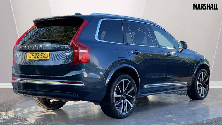 12.3" Progressive Driver Display, 360 degree surround view parking camera with side proximity sensors, 9" centre console portrait touch screen, Adjustable steering wheel force, Bluetooth hands free telephone connection, Drive mode settings, Driver alert control with lane keeping aid, Driver assistance (pilot assist and adaptive cruise control), Driver awareness - Blind spot information system with steer assist, cross traffic alert with autobrake and rear collision warning and mitigation, Emergency call service, Front and rear park assist, Google Automotive Services - Navigation with Voice recoginition and google assistant, Handsfree power tailgate opening and closing, Oncoming Lane Mitigation, Power operated tailgate, Service interval indicator, Speed limiter, Speed sensitive steering, Trip computer, Volvo on call, Wireless Mobile Phone Charger, 3.7 kW monophase on board charger, 7m 10amp Charge Cable with 3 Pin Plug and 7m 1-Phase 16amp Type 2 / Mode 3 Charge Cable, 8 speed automatic transmission with start/stop + manual change functions, Active four C chassis - four corner adaptive dampers with electronic air suspension, Electric rear axle drive, Lithium-ion battery, Recharging port located in nearside front wing, DAB Radio (Digital Audio Broadcasting), Low speed exterior sound speaker, Premium Sound by Bowers and Wilkins, dirac live, dolby pro logic II surround sound, 18 speakers/1400W output and fresh air subwoofer, Steering wheel remote infotainment controls, Active bending headlights with adaptive shadow technology, Adaptive brake lights with high level LED brake lights, Auto dimming interior + exterior mirrors, Auto folding and heated power door mirrors, Automatic headlight levelling system, Automatic LED Headlights + Active high beam incorporating daytime running lights, Body colour bumpers, Dark tinted windows - rear side windows and rear screen, Front and rear power windows, Headlight cleaning system, High gloss black door mirrors and window surround, High gloss black front and rear bumper deco, High gloss black mesh front grille with surround, Home safe and approach lighting, Integrated roof rails in high gloss black, Power glass tilt and slide panoramic sunroof with sun curtain, Puddle lights, Rain sensor with automatic windscreen wiper activation, Rear side wing doors, Rear wash/wipe with intermittent wipe setting, Roof antenna, Roof spoiler, Visible VIN plate, 12V socket front tunnel console, rear passenger compartment and cargo area, 2 seat bench in 3rd row, 2nd Row centre armrest with and cupholders, 3 seat bench in 2nd row, 4 zone electronic climate control with Clean zone air quality system + pollen filter, A-pillar parking ticket holder, Advanced interior air cleaner PM2.5, Air conditioning for 3rd row of seats, Ambient door and instrument panel lighting, B Pillar ventilation, Bright metal luggage threshold, Centre console cupholders and storage, Floor mats, Front and rear door pocket and front cupholder illumination, Front and rear reading lights, Theatre lighting and centre armrest storage illumination, Front footwell and side step illumination, Front headrests, Front seat cushion extensions, Heated front seats, Heated rear seats, Heated steering wheel, Height/reach adjustable steering column, Illuminated front and rear tread plates, Illuminated luggage compartment, Illuminated tailgate, Illuminated vanity mirrors + ticket holder, Illumination lockable glovebox compartment, Integrated sun curtains in rear doors, Isofix outer rear child seat preparation in 2nd row, Load protection net, Luggage compartment divider with grocery bag holder, Outboard armrest with cupholder and storage for third row passengers, Power driver seat with multi directional lumbar support and memory for seat and exterior mirrors, Power folding 2nd row headrests, Power passenger seat with multi directional lumbar support and memory, Rear footwell and side step illumination, Rear headrests, Recharge aluminium tread plates, Semi automatic load cover, Single front passenger seat, Underfloor luggage compartment storage, 7 three point seatbelts, City safety with steering support includes pedestrian, cyclist and large animal detection and front collision warning with full auto brake, Drivers knee airbag, Dual stage driver/passenger airbags, First aid kit, Front seats SIPS airbags, Hill descent control - off drive mode, Hill start assist, IC (Inflatable Curtains) - Full Length, Passenger airbag cut-off switch, Power child locks on rear doors, Power parking brake with auto hold function, Road sign information display, Run off Road Mitigation, Run off Road Protection, Seatbelt reminder and pretensioners for all seats, SIPS (Side Impact Protection System), Slippery road and hazard light alert, Stability and Traction Control with Spin control, Engine Drag Control and Corner Traction Control, Tyre pressure monitoring system, Vehicle deceleration control with Anti-lock Brake System, Electronic Brake Distribution and Emergency Brake Assist, Warning triangle, WHIPS whiplash protection system - front, Anti-theft alarm including immobiliser/volume sensor + level sensor, Care key with user defined top speed, Key integrated remote control central locking + fuel flap with deadlocking system and auto open/close power windows, Keyless drive includes keyless entry and keyless start, Locking wheel nuts, Private locking for glovebox and tailgate, Tailored Instrument Panel and Door Tops with Contrast Stitching, Tyre sealant kit and compressor,