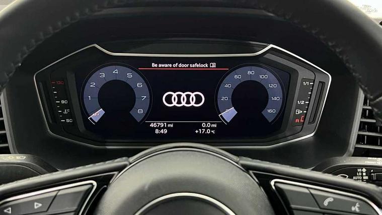 10.25" Digital instrument cluster display classis style instrument dials + speed, odometer, time, outside temperature, telephone menu + fuel level warning, Audi connect safety emergency and service including E-call, Audi drive select - power steering assistance + engine, Audi smartphone interface with connect compatible smartphone via USB directly MMI display + Nav, music, third party apps controlled via MMI controller, Automatic start/stop system, Bluetooth interface, Cruise control, Driver's information system, Electromechanical power steering, Lane departure warning system, Rear parking sensor, Service interval indicator, Speed limiter, Voice control system, Washer fluid level indicator, Dynamic suspension, 1 x SDXC card reader, 1 x USB type C and 1 USB type A charging points, DAB Digital radio, MMI radio plus with 8.8" colour MMI display screen and MMI touch, Auto dimming rear view mirror, Body coloured bumpers, Body coloured door mirrors, Electric front and rear windows, Electrically adjustable, heated, folding door mirrors with integrated LED side indicator, Front side air inlets in grained matt black and C frame in titanium black, Heat insulating glass windscreen and side windows, Heated rear windscreen, LED headlights with LED rear lights + dynamic rear indicators + headlight adjustment and high beam, turning light + LED daytime running lights, Radiator grille and rear diffuser in matt titanium black, Radiator protective grille frame in matt aluminium silver, Rain and light sensors, Rear fog lights, Rear wiper, Scandium grey tailpipe trim, Side front spoiler lips in grained matt black, 12V socket in centre console with two cup holders, 3 rear seats with headrests, 40:60 Split folding rear seat or folded fully, Door sill trims with aluminium inlay, Driver and passenger seat with manual height adjust with forward and backwards adjustment, Front head restraints, Front/rear floor mats, Height and reach adjustable steering wheel, ISOFIX child seat mounting for front passenger and outer rear seats including top tether attachment point of outer rear seats, Leather gear knob with aluminium trim, Leatherette handbrake grip, Luggage compartment light with front and rear reading lights, Manually adjustable lumbar support in front seats, Novum cloth upholstery with front sport seats, Titanium grey cloth headlining, Luggage compartment pack - A1, 3x3 point rear seatbelts, Audi pre-sense front with pedestrain and cyclist recognition, Brake assist function, Driver and front passenger airbag with front side and head airbags, Electronic Stability Control including ABS, EBD, ASR and EDL, Front and rear seatbelt reminder, Front passenger airbag deactivation switch, Hill hold assist, Seatbelt height adjustment for front seats, Seatbelt monitoring, Tyre pressure warning light, Warning triangle and first aid kit, Anti theft alarm, Anti theft wheel bolts and loose wheel warning, Immobiliser, Remote central locking with 2 foldaway keys, Aluminium trim for control switches, air vents and digital instrument cluster, Silver grey accent areas including air vents, door handle recesses and centre console in diamond paint finish, Slate grey inlays polygon structure in fine paint finish,