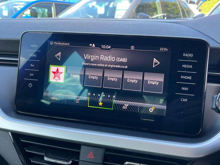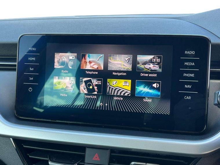 Amundsen satellite navigation with 9.2" glass colour touchscreen display, web radio, voice control and traffic sign recognition, Bluetooth system, E-call, Front assist system, Gesture control, PAS, Service indicator, Speed limiter, Wireless Smartlink for Apple CarPlay (wired for Android Auto), 8 Speakers, Auxiliary input socket, DAB Digital radio, Body colour bumpers, Body colour door mirrors and handles, Chrome grille surround, Dimming rear view mirror with black surround, Electrically adjustable and heated door mirrors, Front and rear electric windows, Headlight range control, Heated rear window, LED rear lights - low functionality, LED third brake light, Light sensors, Privacy glass, Rain sensor, Rear fog lights, Rear side wing doors, Rear wiper, 12V Accessory socket in centre console, 3 seat bench in 2nd row, Chrome inner door handles, Cloth upholstery, Front head restraints, Glove compartment with illumination, Height adjustable driver and front passenger seats - manual, Ice scraper, Isofix child seat fittings on outer rear seats, ISOFIX on front passenger seat, Manual lumbar support for front seats, Rake/reach adjustable steering wheel, Reading lights, Single front passenger seat, Sun visors with illumination on front passenger, Textile floor mats, Third rear headrest, Top tether for front passenger seat, Umbrella in driver's door, 3x3 point rear seatbelts, Airbags - driver and front passenger, ESP, Front passenger airbag deactivation switch, Front side airbags with curtain airbags, Hill hold control, Manual parking brake, Manual rear child locks, One tone horn, Rear disc brakes, Seatbelt reminder for driver an co-driver, Traction control, Tyre pressure monitor, Anti-theft alarm system with interior monitoring, backup horn, towing protection and remote central locking with SAFE system, Anti-theft wheel bolts, Electronic engine immobilizer, Silver haptic decorative insert on the dashboard with hot stamping in glossy black,