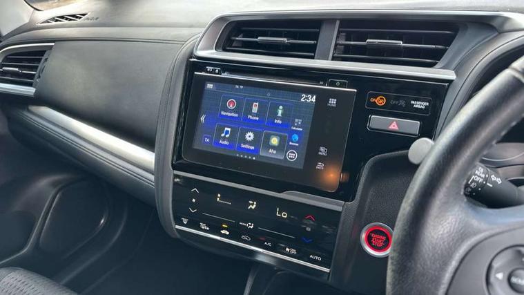 Adaptive motion for electric power steering, Bluetooth hands free telephone connection, Connect Navigation with 7" touchscreen, Digital Radio, Radio/CD/Mp3, Aha app integration, internet browsing, Cruise control with speed limiter, Emergency stop signalling system, Forward collision warning, Front and rear parking sensors, Idle stop, Intelligent speed assist, Lane departure warning system, Multi-information display, Rear view camera, Traffic sign recognition, Vehicle stability assist, 'Shark fin' mobile antenna, 2x USB and HDMI, 6 speakers, Steering wheel mounted audio controls, Automatic coming/leaving home lighting function, Automatic headlights with dusk sensor, Automatic rain sensing wipers, Body colour door handles, Body colour door mirrors, Body coloured bumpers, Drivers one touch power window up/down, Electric heated + adjustable door mirrors, Electrically retractable door mirrors, Front and rear power windows, Front fog lights, High beam assist, LED daytime running lights, LED Headlights, LED high level brake lights, One touch passenger power window up/down, Rear privacy glass, Rear wiper with intermittent and reverse linked, Automatic climate controlled air conditioning, Centre console accessory socket, Cloth upholstery, Driver seat back pocket, Driver's seat height adjustment, Driver/passenger sunvisors and vanity mirrors, Front accessory power socket, Front map lights, Front/rear courtesy lights, Gear shift indicator, Height adjustable passenger seat, Isofix child seat restraint mechanism, Leather gear knob, Leather steering wheel, Luggage area under floor storage box, Magic seat flexibility system, Passenger seat back pocket, Rear head restraints, Rear parcel shelf, Reclining rear seats, Tilt/telescopic adjustable steering wheel, Trunk light, 3x3 point rear seatbelts, ABS/EBD, Active city braking, Anti-whiplash front headrests, Brake assist function, Deflation detection system, Driver's side SRS airbag, Dual front SRS airbags, Front and rear curtain airbags, Front and rear seat belt with emergency locking retractor, Front side airbags, Hill start assist, Passenger SRS airbag cut-off device, Honda super locks, Immobiliser, Security alarm, Smart entry + Smart start, 16" alloy wheels, Tyre repair kit,