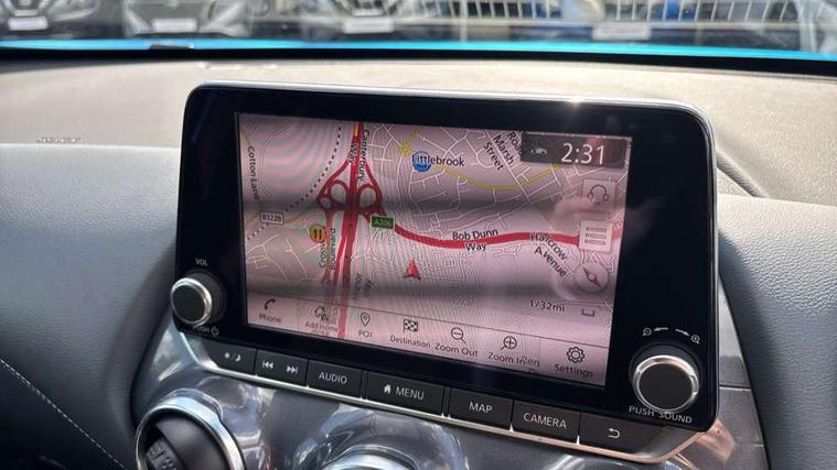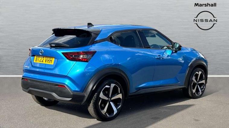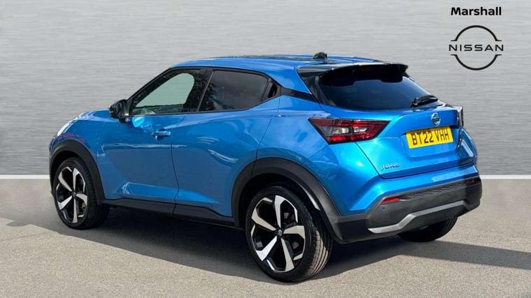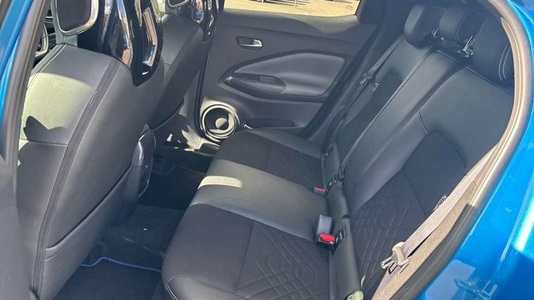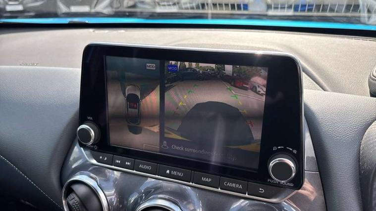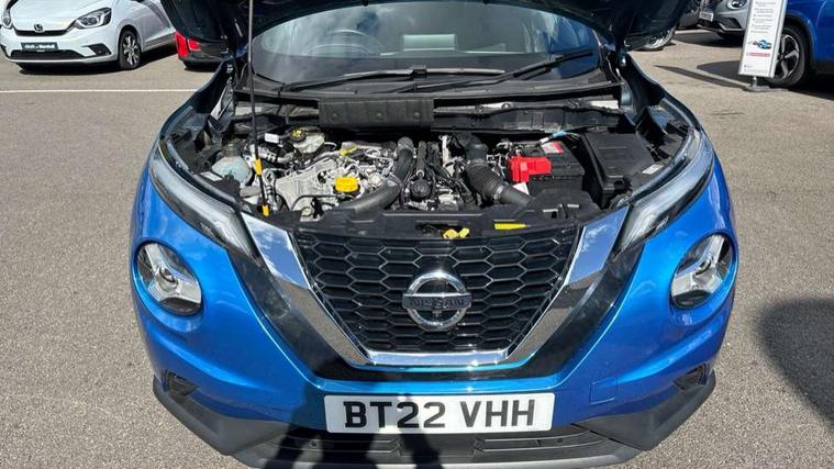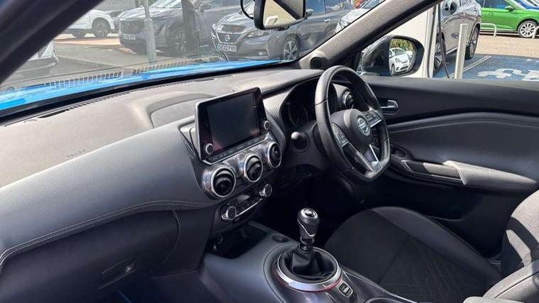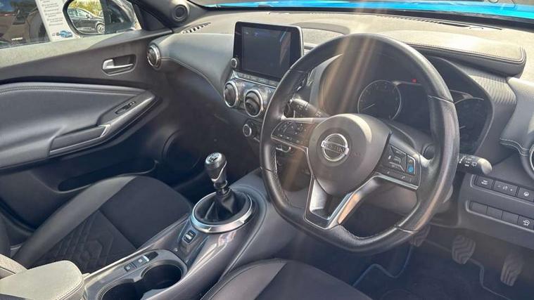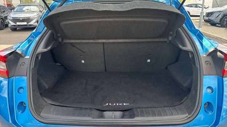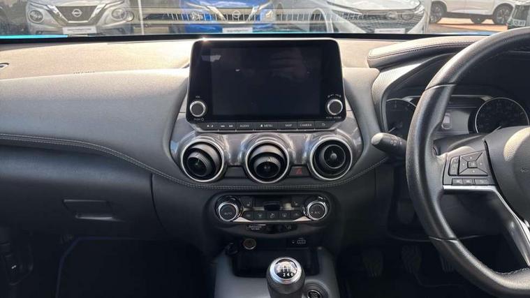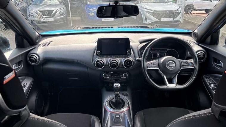 7" full colour TFT screen combimeter, Apple CarPlay and Google Android auto, Drive modes select (Eco, normal and sport), Emergency and breakdown call, Front parking sensor, Idle start/stop system, Intelligent lane intervention, Lane departure warning system, Nissan connect 8" touch screen entertainment system, Nissan connect nav with TomTom traffic, Nissan connect services and Wifi connection, Outside temperature sensor, Power Steering, Rear parking sensor, Traffic sign recognition, Trip computer, Voice recognition, Gasoline particulate filter, 10 Bose speakers 6 speakers and 2 headrest speakers for driver/passenger seats, Bluetooth system, USB, Aux-in and 12V socket, Bose personal sound stage control, DAB Digital radio, Rear console USB port, Auto dimming interior rear view mirror, Auto headlights, Automatic hazard signal with emergency stop signal, Body colour bumpers, Body colour door handles, Electrically adjustable door mirrors with integrated indicators, Follow me home headlights, Front and rear electric window with one touch driver window, Heated and auto folding door mirrors, High beam assist, LED daytime running lights, LED front fog lights, LED headlamps, LED rear fog lamp, LED rear lamps, Rain sensor windscreen wipers, Rear privacy glass, Rear side wing doors, Rear wiper, Thermaclear heated windscreen, Three blink turn signal, 3 height adjustable rear headrests, 3 seat bench in 2nd row, 60/40 split folding rear seat, Automatic climate control, Card holder on driver sunvisor, Door ambient lighting, Driver and passenger sliding and reclining seats, Driver seat back pocket, Driver side rear coat hanger, Driver/passenger sunvisors and vanity mirrors, Front and rear cabin lights, Front armrest, Front door pockets with bottle holders, Front head restraints, Front passenger isofix child seat anchorage point, Front/rear passenger grab handles, Gear console ambient circle lighting, Grey synthetic leather kneepad, Heated front seats, Height adjustable driver's seat, Height adjustable passenger seat, Internal chrome door handles, Leather gearshift knob, Leather steering wheel, Luggage board, Luggage space lighting, Monoform sporty seats, Multifunction steering wheel, Passenger seat back pocket, Rear door bottle holders, Single front passenger seat, Synthetic leather upholstery, Telescopic steering wheel adjustment, Two cupholders in front centre console, Two rear isofix child seat anchorage points with top tether, Welcome light and console tray ambient lighting, Advanced safety shield pack - Juke, ABS with EBD and brake assist, Active ride control, Active Trace Control, Driver and passenger airbags, Driver and passenger side airbags, Electric handbrake with auto hold function, Electronic Stability Programme (ESP), Front and rear curtain airbags, Height adjustable seatbelts, Hill start assist, Intelligent emergency braking with pedestrian and cyclist recognition, Rear door child safety locks, Seatbelt reminder for driver/front passenger and rear seats, Single tone horn, Three 3 point rear seatbelts, Traction control, Tyre pressure monitoring system, VDC Dynamic Vehicle Control, Ventilated rear brake discs, Alarm, Immobiliser, Intelligent key and start push button with walk away lock and approach unlock functions, Remote central locking,