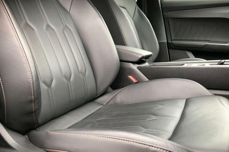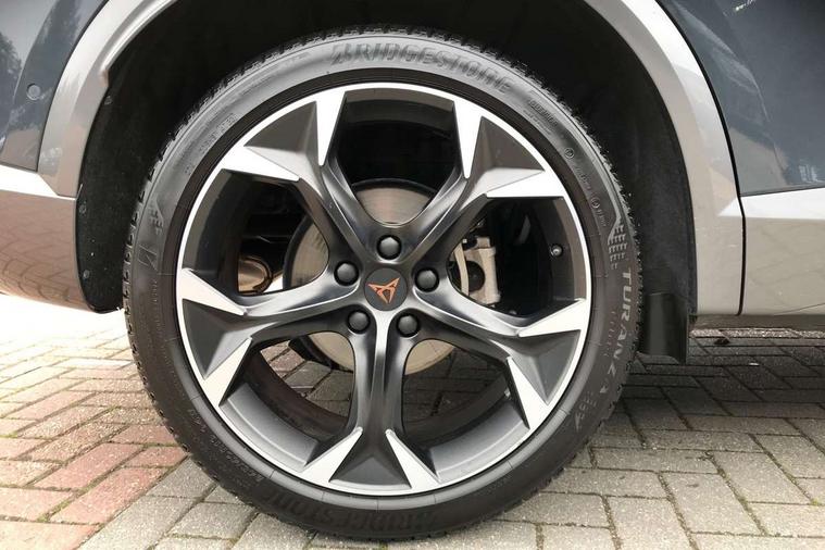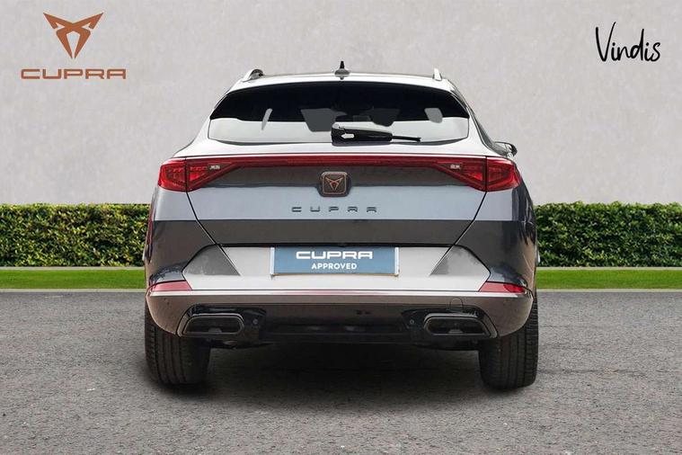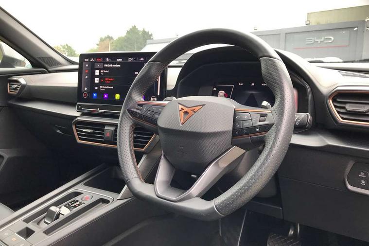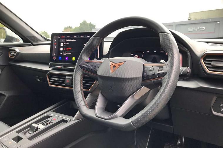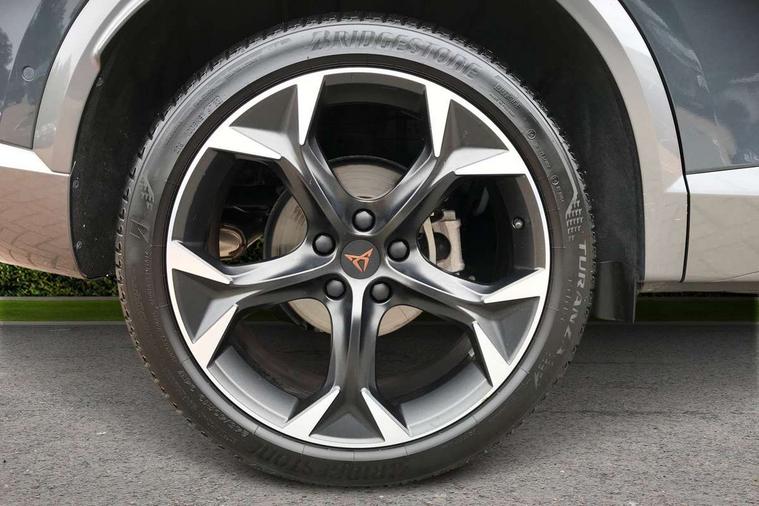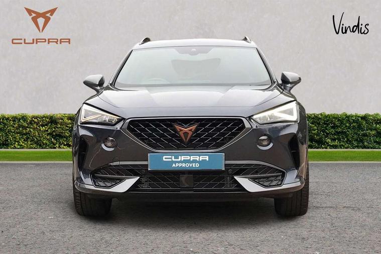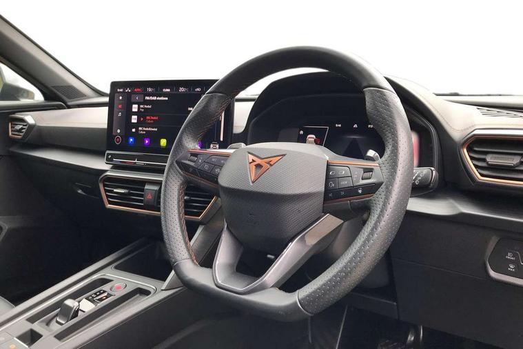 Digital cockpit and configurable dashboard, Driver alert system, Driving profile selection, Forward collision warning with automatic braking, Lane assist, Navigation system with 12'' Touchscreen Display, Park assist (inc front/rear parking sensors), PAS, Predictive adaptive cruise control with speed limiter, Rear view camera, RPM, trip computer, outside temp gauge, instrument light brightness, low fuel warning light, lights on reminder, gearshift indicator, Service interval indicator, Start/stop system with regenerative braking, Voice control system, Wired Android Auto, Wireless apple carplay, Wireless phone charger, Electronic locking differential and dynamic traction support, Standard suspension, 2 front and 2 rear USB type C sockets, Auxiliary input socket, DAB radio, Auto dimming rear view mirror, Body colour door handles, Body coloured bumpers, Dark grey wing mirror, Daytime running light with automatic headlight control and coming home feature, Dynamic headlight range control, Electric front/rear windows, Electrically adjustable heated and folding door mirrors with memory function, Front fog lamps with cornering function, Gloss black roof rails and window surrounds, LED Headlights, LED Taillights with dynamic indicator, Rain sensing wipers, Rear diffuser with black simulated exhaust pipes, Rear side wing doors, Rear wash/wipe, Third brake light, Tinted rear windows, Welcome lights, 12v power supply in centre console, 12V socket, 12v socket in loadspace, 2 front and 2 rear reading lights, 230V socket, 3 seat bench in 2nd row, 60/40 split rear bench seat with armrest and mechanical seat release, Black headlining, Dust/pollen filter, Front and rear head restraints, Front centre armrest, Height/reach adjust steering wheel, Illuminated interior front door sills, Illuminated sunvisor with mirror, Isofix, Leather multi function heated steering wheel with gear shift paddles, Luggage tie-down hooks, Single front passenger seat, Three zone climate control with control panel in rear, Variable luggage/load compartment floor, Wraparound lighting, Genuine Nappa leather Pack - Cupra, 3 point seatbelts on all rear seats, ABS, Brake control system - ESC and brake booster, Child proof door locks, Driver and front passenger airbags with front passenger airbag de-activation, Electronic parking brake, Front and rear disc brakes, Front side curtain airbags, Hill hold control, Public e-call, Seat belt reminder for front and rear seats, Tyre pressure monitoring system, Anti theft alarm system, Keyless entry and start system (KESSY), Locking wheel bolts, Copper and aluminium interior detailing, 19" 'Exclusive' machined sport matte black and silver alloy wheels,