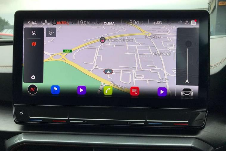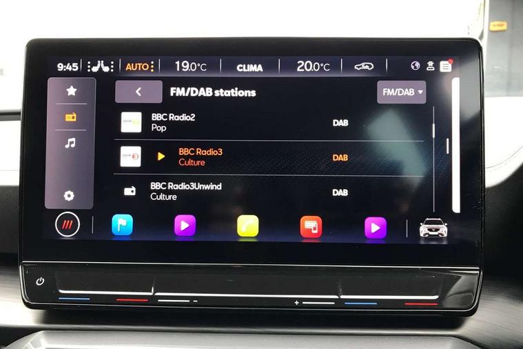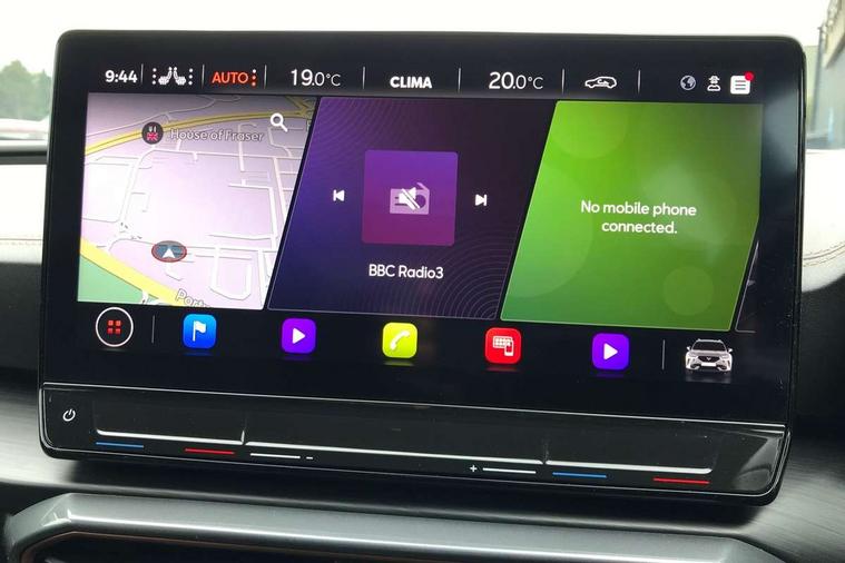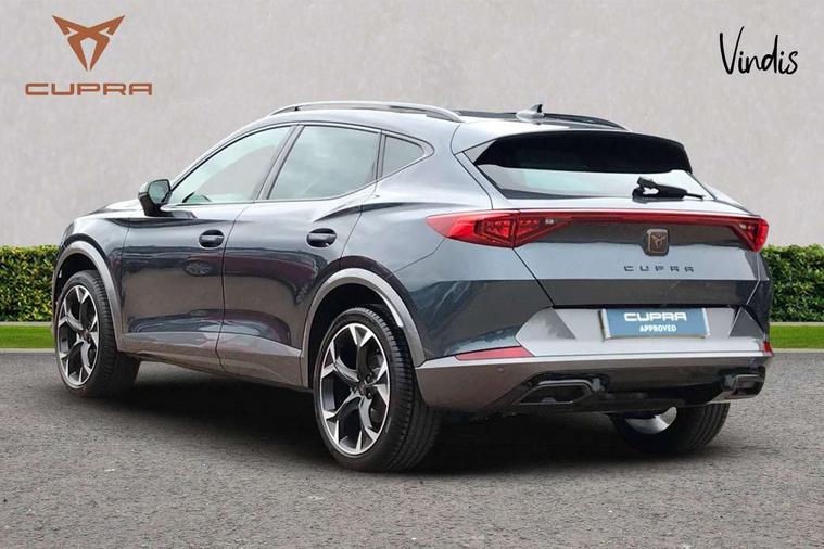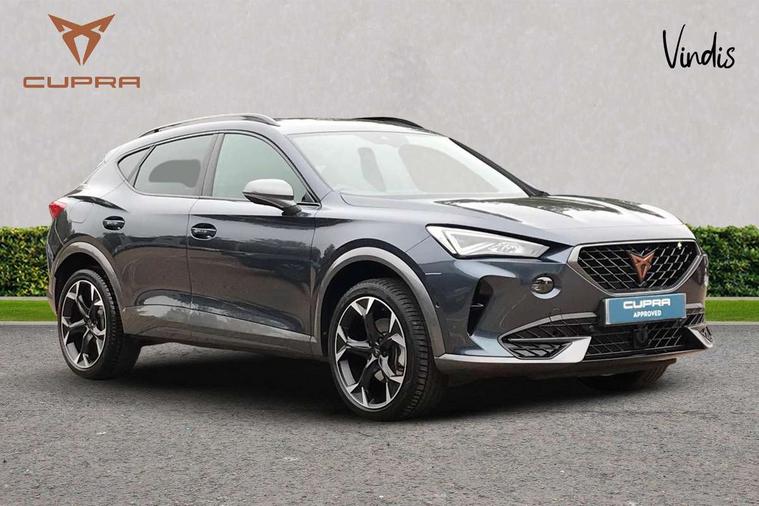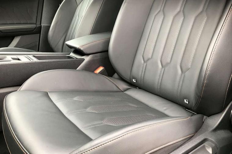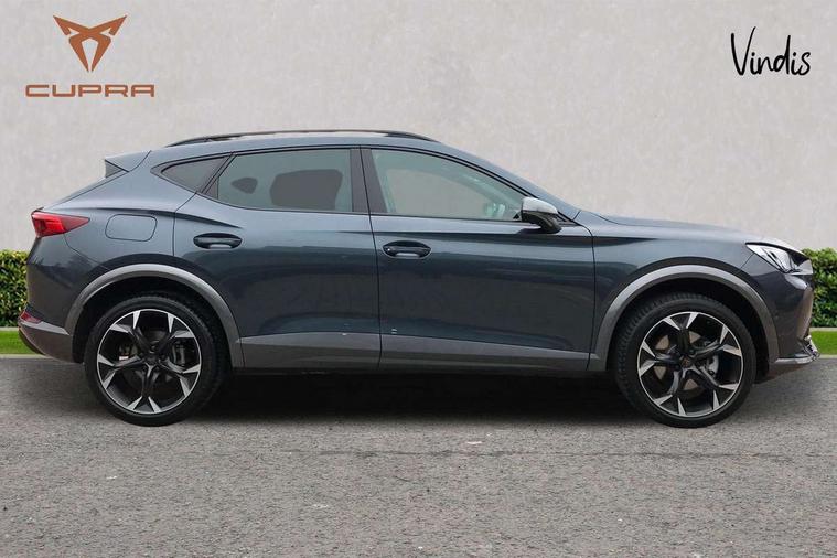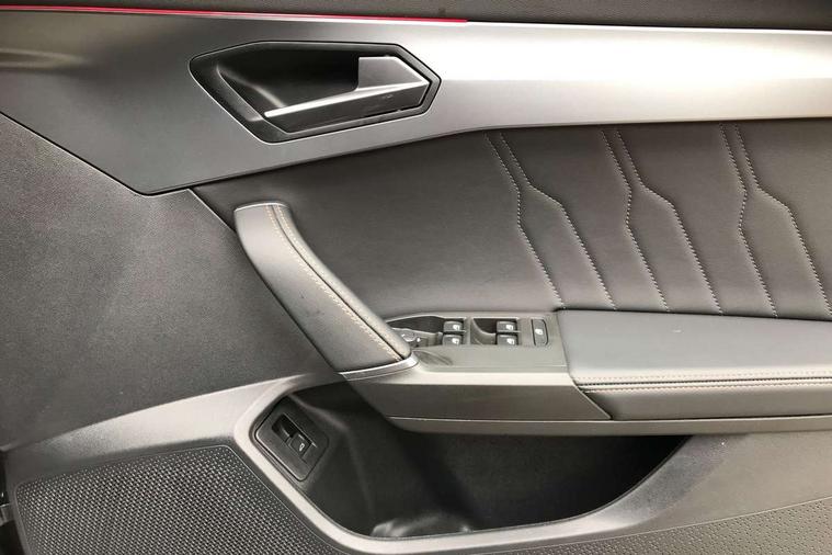 Digital cockpit and configurable dashboard, Driver alert system, Driving profile selection, Forward collision warning with automatic braking, Lane assist, Navigation system with 12'' Touchscreen Display, Park assist (inc front/rear parking sensors), PAS, Predictive adaptive cruise control with speed limiter, Rear view camera, RPM, trip computer, outside temp gauge, instrument light brightness, low fuel warning light, lights on reminder, gearshift indicator, Service interval indicator, Start/stop system with regenerative braking, Voice control system, Wired Android Auto, Wireless apple carplay, Wireless phone charger, Electronic locking differential and dynamic traction support, Standard suspension, 2 front and 2 rear USB type C sockets, Auxiliary input socket, DAB radio, Auto dimming rear view mirror, Body colour door handles, Body coloured bumpers, Dark grey wing mirror, Daytime running light with automatic headlight control and coming home feature, Dynamic headlight range control, Electric front/rear windows, Electrically adjustable heated and folding door mirrors with memory function, Front fog lamps with cornering function, Gloss black roof rails and window surrounds, LED Headlights, LED Taillights with dynamic indicator, Rain sensing wipers, Rear diffuser with black simulated exhaust pipes, Rear side wing doors, Rear wash/wipe, Third brake light, Tinted rear windows, Welcome lights, 12v power supply in centre console, 12V socket, 12v socket in loadspace, 2 front and 2 rear reading lights, 230V socket, 3 seat bench in 2nd row, 60/40 split rear bench seat with armrest and mechanical seat release, Black headlining, Dust/pollen filter, Front and rear head restraints, Front centre armrest, Height/reach adjust steering wheel, Illuminated interior front door sills, Illuminated sunvisor with mirror, Isofix, Leather multi function heated steering wheel with gear shift paddles, Luggage tie-down hooks, Single front passenger seat, Three zone climate control with control panel in rear, Variable luggage/load compartment floor, Wraparound lighting, Genuine Nappa leather Pack - Cupra, 3 point seatbelts on all rear seats, ABS, Brake control system - ESC and brake booster, Child proof door locks, Driver and front passenger airbags with front passenger airbag de-activation, Electronic parking brake, Front and rear disc brakes, Front side curtain airbags, Hill hold control, Public e-call, Seat belt reminder for front and rear seats, Tyre pressure monitoring system, Anti theft alarm system, Keyless entry and start system (KESSY), Locking wheel bolts, Copper and aluminium interior detailing, 19" 'Exclusive' machined sport matte black and silver alloy wheels,