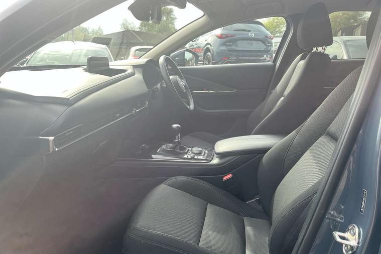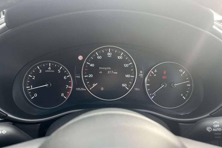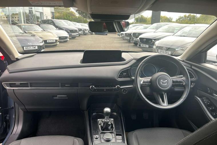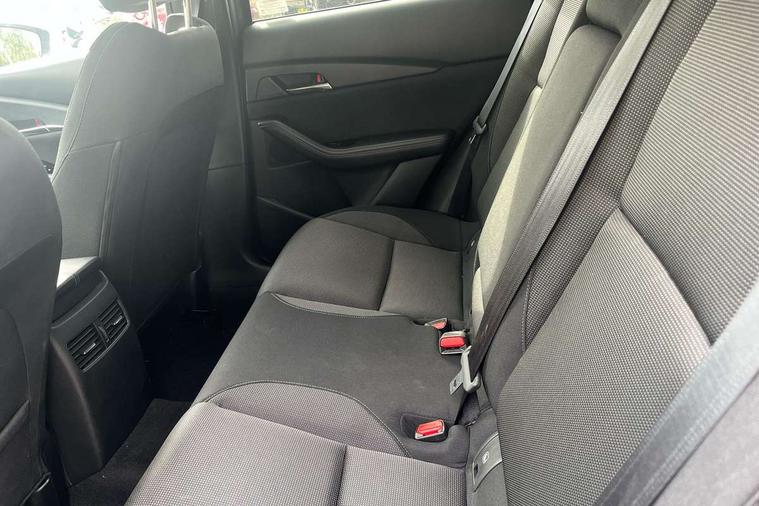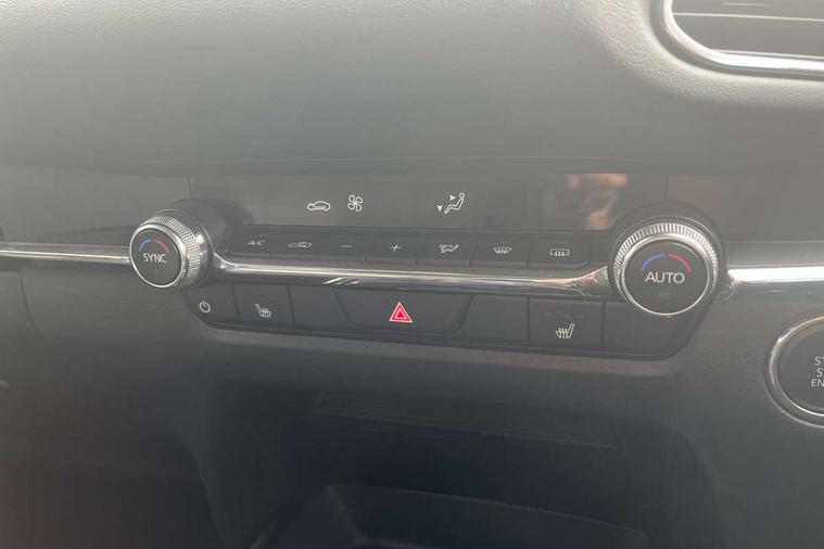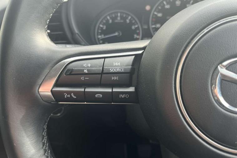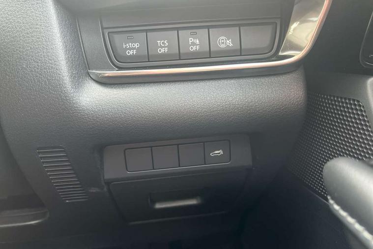 10.25" display with Mazda Connect infotainment, 7" TFT Colour driver instrument panel display, Adaptive cruise control (Mazda radar cruise control), Blind spot monitoring with rear cross traffic alert, Driver attention alert system, E-call with GPS, Emergency stop signalling system, Engine start/stop button, Front and rear parking sensors, Integrated Alexa Voice Assistant, Integrated bluetooth, Integrated Mazda navigation system, Intelligent speed assist, Lane keep assist system (LAS) with Lane departure warning system (LDWS), Mazda connected services, PAS, Power lift gate, Qi wireless charging, Reversing camera, Service indicator, Tailgate, Traffic sign recognition, Trip computer, Windscreen projected colour active driving display (HUD), Wireless Apple CarPlay/Android Auto, Cylinder Deactivation, i-stop, 2 x USB Type-C inputs, AM/FM and DAB radio, Bose surround sound system with 12 Speaker, Bose center point, Bass match and audio pilot technology, Multimedia Commander including separate volume dial, Steering wheel mounted audio/bluetooth controls, Adaptive LED Headlights, Auto dimming driver's door mirror, B-pillar and C-pillar garnishes in gloss black finish, Body coloured, electrically adjustable, heated auto power folding door mirrors with integrated indicators, Chrome finish signature wing in front grille, Coming/leaving home lighting function, Dual bright finish exhaust tip trim, Dusk sensing headlights, Electric front/rear windows with one touch auto up/down, Frameless auto dimming interior rear view mirror, Front kodo turn signal, Gloss black front grille, Gloss black rear roof spoiler, High beam assist, LED auto headlight levelling, LED signature daytime running lights, Privacy glass (rear side windows and rear screen), Rain sensing front wipers with adjustable speed and intermittent wipe, Rear fog lights, Rear side wing doors, Rear wiper, Signature LED rear combination lights, Third brake light, 12V power outlet in centre console, 3 seat bench in 2nd row, 60/40 split fold down rear seats, Bright interior trim accents with steering wheel centre bezel, surround of engine start / stop button and glove box handle, Cloth upholstery with interior accents, Dark cloth door panel inserts, Dashboard, door cards and front centre armrest in black cloth, Driver and front passenger visors with covered vanity mirror and driver ticket holder, Driver seat manual slide, recline, height and seat tilt adjust, Driver, front passenger and two rear door storage, Driver, Front passenger and two rear grab handles with coathooks, Dual zone climate control air conditioning with rear air vents, Folding rear centre armrest with two cup holders, Front and rear (x3) head restraints, Front and rear LED lighting, Front armrest, Front centre storage with two cupholders with lid, Front passenger seatback pockets, Front passengers seat manual slide, recline and height adjustment, Gear shift indicator, Glovebox illumination, Heated front seats with 3 stage setting, ISOFIX child seat anchorage points attached on outer rear seats, Leather wrapped gear shift knob, Leather wrapped steering wheel with telescopic and tilt adjustment, LED luggage compartment lighting, Light roof headlining and pillars, Roof mounted sunglasses holder, Single front passenger seat, 3 point ELR front seat belts x2 with pretensioners, 3 point ELR rear seat belts, Anti-lock braking system (ABS), Drivers knee airbag, DSC - Dynamic Stability Control, Electronic parking brake with auto disengage function and auto hold function, Front and rear curtain airbags, Front dual stage driver and single stage front passenger airbags, Front passenger airbag cut-off switch, Front side airbags, Front smart city brake support, G-Vectoring control plus, Hill launch assist, Manual child lock in rear doors, Mild Hybrid system with regenerative braking, Seatbelt reminder for driver/front passenger and rear seats, Traction control system (TCS), Tyre pressure monitoring system (TPMS), Remote central locking with deadlocking and automatic door lock when driving, Smart keyless entry, Thatcham accredited alarm and immobiliser, 18" Silver metallic alloy wheels, Emergency tyre repair kit,