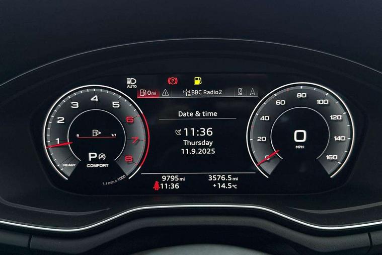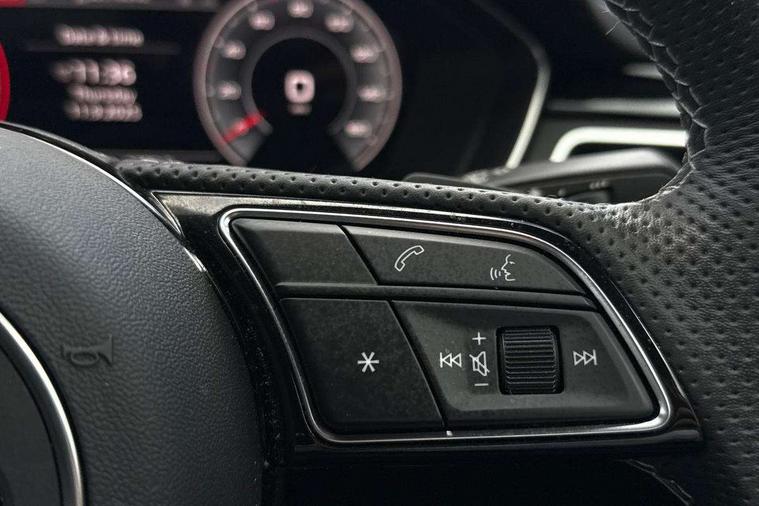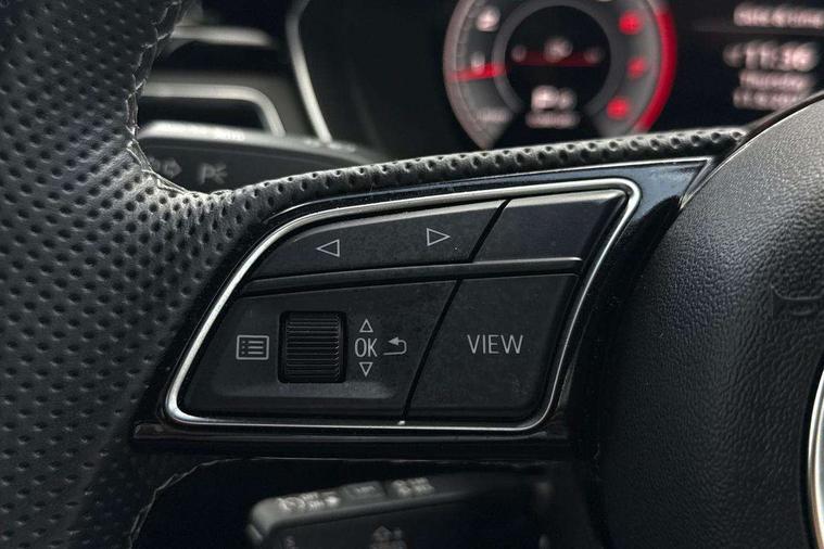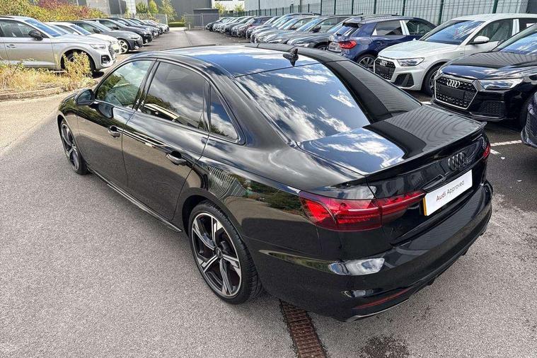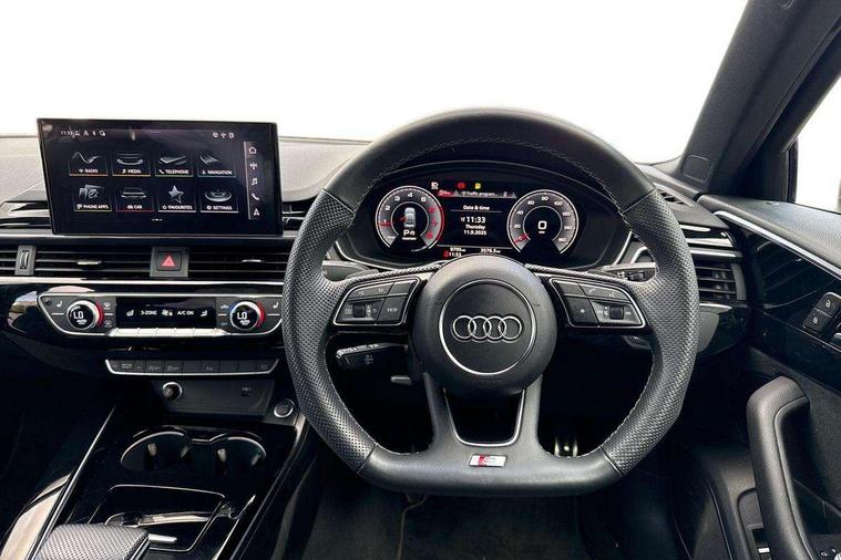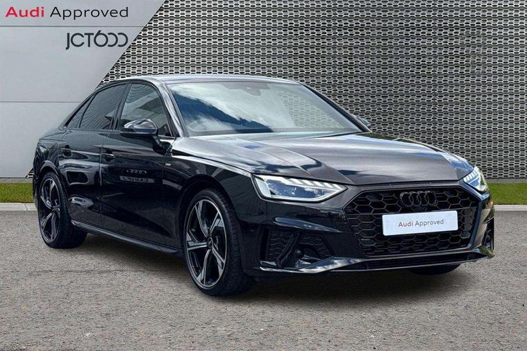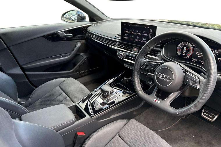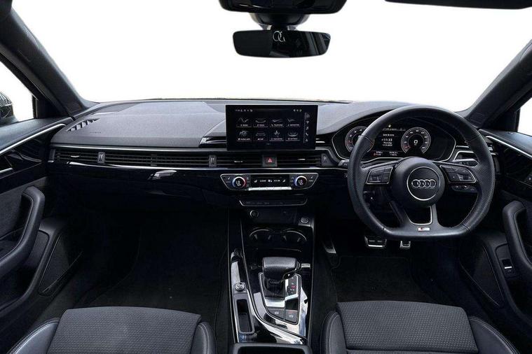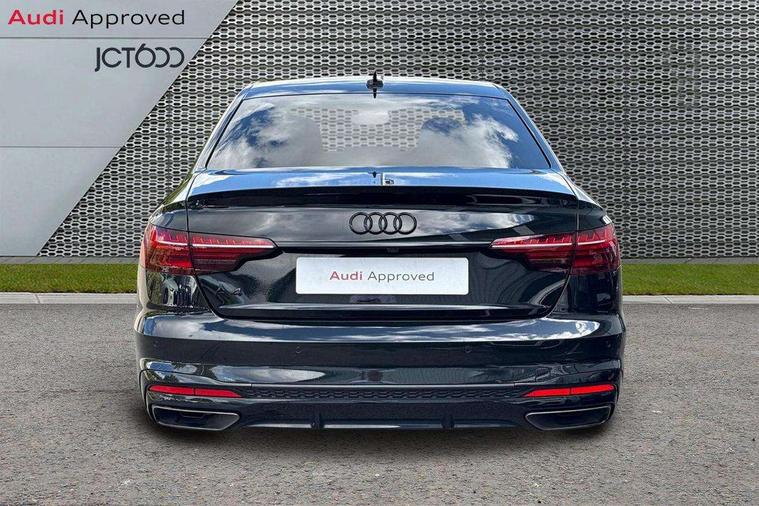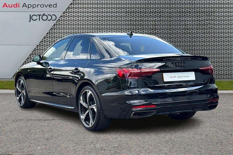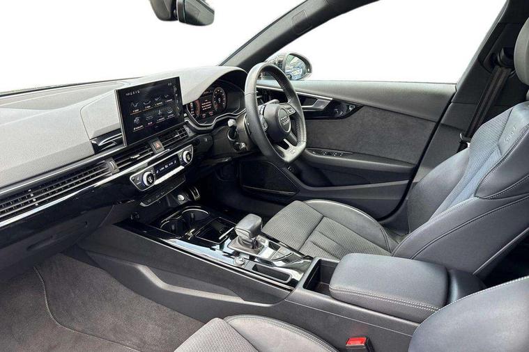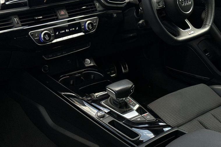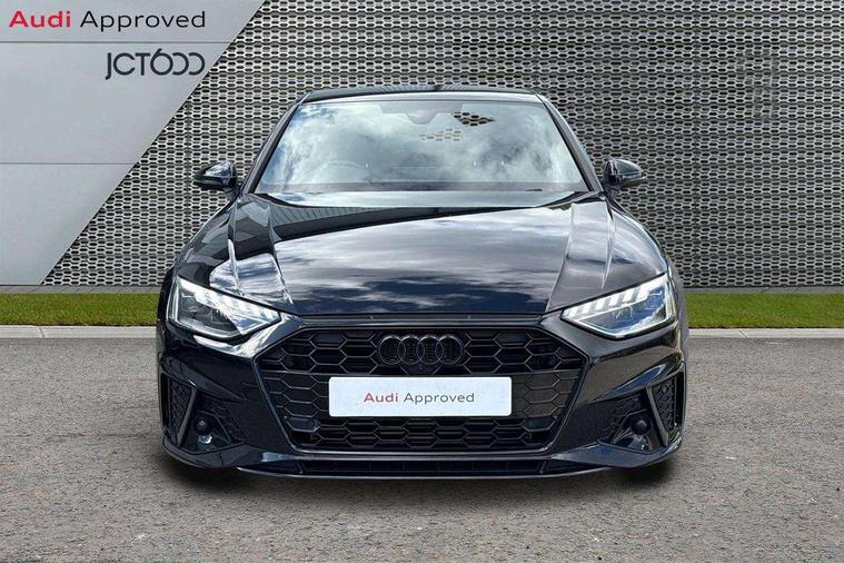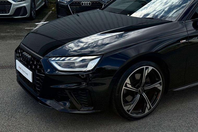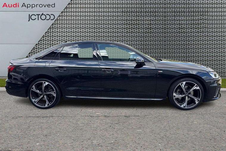 Audi connect safety and service (e-call), Audi connect with Amazon Alexa Integration, Audi drive select, Audi smartphone interface, Audi virtual cockpit, Automatic start-stop system with coasting functionality and efficiency programme, Bluetooth interface, Electric boot lid release, Electromechanical power steering, Email, calendar and text messages displayed via MMI, MMI Navigation plus with MMI touch includes 10.1" high resolution colour MMI display, 3D map, Voice control system, 54 litre fuel tank, Sports suspension lowered by 23mm, 2 USB charging ports, 8 passive loudspeakers, DAB digital radio reception, Audi beam uses LEDs to project the audi logo onto the ground as you exit your A4, Auto dimming rear view mirror, Black Audi rings and black badging (model name in black badging, no engine badging), Body colour door handles, Body colour front spoiler lip, Body colour side sill trim, Electrically folding auto dimming/adjustable/heated door mirrors with LED side indicators and kerb view function for passenger side, Exhaust tailpipes in high dark chrome, Front and rear bumpers with side skirts, Grained matt black side air inlets with matt aluminium silver inlay, High beam assistant, High gloss black B pillar trims and triangular rear door trim, LED headlights with LED rear lights + dynamic rear indicators + headlight adjustment and high beam, turning light + LED daytime running lights, LED third brake light, Privacy glass, Rain and light sensors, Rear boot, Rear diffuser in matt black with trim strip in matt aluminium silver, Rear side wing doors, S Line badges on the front wings, Variable intermittent front wash/wipe, Windscreen with acoustic glazing, 4 way electric lumbar support for driver and front passenger, 40/20/40 split folding 3 rear seat bench in 3 parts with rear centre armrest, Black cloth headlining, Black perforated leather gearknob, Contrast stitching on seats, steering wheel and gear lever gaiter, Deluxe 3 zone electronic climate control, Door sill trims with aluminium inlay, Front and rear head restraints, Front centre armrest, Heated front seats, Illuminated door sill trims with S logo, ISOFIX child seat mounting and top tether, Manual seat adjustment, Single front passenger seat, Stainless steel pedals and foot rest, Black styling pack - A4 Saloon, LED Interior light pack - A4/S4, 3 rear seatbelts, 6 airbags - Driver, front passenger, curtain and side windows, Electronic Stabilisation Control (ESC) including ABS, ASR and EDL, Hill hold assist, Multi collision brake assist, Pop-up bonnet for pedestrian protection, Pre sense city, Rear door child safety locks, Seatbelt monitoring, Warning triangle and first aid kit, Anti theft alarm, Anti theft wheel bolts, Central locking, Keyless Go, Piano black finish inlay, 19" 5 arm flag design Audi sport diamond cut alloy wheels in gloss anthracite black, Tool kit, Tyre repair kit,