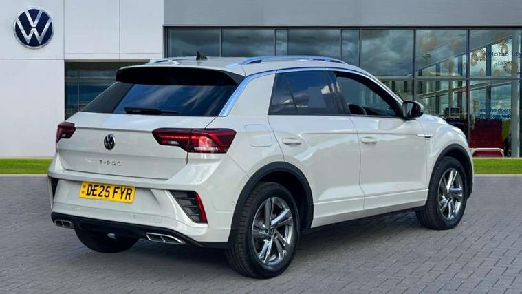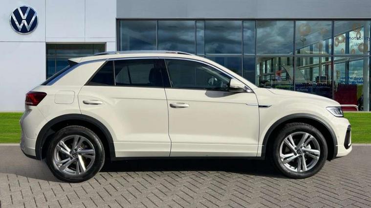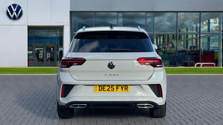 10.25" Digital cockpit pro, Advanced driver attention and drowsiness monitor, Emergency call service, Lane keeping system Lane Assist, Mobile phone interface, Modified key software - reduce switch off time for key status change to Long no motion, Online services, Park assist including front and rear parking sensors, Service interval indicator, Tailgate/trunk lid release from outside, Think blue trainer driver tips and journey analysis, Warning sound and light for front seatbelts unfastened, Wireless app connect, Battery regeneration during braking, Start/stop function with battery regeneration, DAB Digital radio, Diversity antenna for FM reception, Front and rear 6 speakers, Music playback - MP3, WMA and AAC files, Premium USB cable in choice of either Apple or Android smartphone compatibility, SD card slot, Simultaneous pairing of 2 compatible mobile devices, Title and cover art display, We Connect and We Connect Plus functionality, Auto dimming interior rear view mirror, Automatic hazard lights activation under emergency braking, Automatic headlight control with LED separate daytime running lights with coming/leaving home function, Body coloured exterior mirror housings and door handles, Electrically adjustable and heated door mirrors, Extended roof spoiler, Exterior mirrors aspherical on driver side, convex on front passenger side, External USB type C socket and charging sockets, Front windscreen wiper with intermittent wipe and 4 position delay, Heated rear window, LED 3rd brake light, LED rear combination lamps, LED rear number plate lights, Power windows with comfort operation and circuit breaker, Privacy glass for rear side windows and rear window, R-Line design body coloured bumpers, Rain sensor, Rear exhaust tailpipe, Rear fog light on one side and reversing lights on both sides, Rear side wing doors, Rear wash/wipe with intermittent wipe setting, Remote electrically foldable door mirrors, puddle lights and reverse activated passenger's door mirror, 12V power socket in centre console, 3 rear head restraints, 3 seat bench in 2nd row, 4 load lashing points in luggage compartment, Air care climatronic air conditoning system with active combination filter and 2-zone temperature control, Black roof lining, Chrome plated decorative trims, Chrome plated radiator grille inserts, air vent surrounds and light switch surrounds, Door and side trim panel with leatherette insert, Front + rear carpet mats, Front centre armrest, Front cupholders x 2, Front footwell illumination, Front reading light, Front scuff plates with R Line logo, Front seat back storage pockets, Glove compartment door with light, Instrument lighting, white adjustable panel illumination, Interior ambient lighting and surround lighting, Interior light delay, Isofix child seat preparation, Leather gearshift handle, Load-through provision with cup holder when folded down ('Unsplit rear seat bench, split folding backrest, with centre armrest), Luggage compartment lighting, Single front passenger seat, Stainless steel pedals, Storage compartment in left and right luggage area, Storage compartment in rear doors, Storage compartments in driver and front passenger doors, Sunvisors with illuminated vanity mirrors, Variable boot floor, height adjustable and removable, Driver assistance pack without proactive passenger protection - T-Roc, 3 point height adj front seatbelts + pretensioners, 3 point seatbelts in outer rear with ECE label, ABS, Child locks on rear doors, City emergency braking and pedestrian monitoring, Driver and front passenger airbag with front passenger airbag deactivation, Driver and front passenger safety-optimised head restraints, Drivers seatbelt reminder, Electronic parking brake, Electronic Stability Control (ESC) inc EDL (Electronic Differential Lock) and ASR (Traction Control), Front and rear passengers curtain airbag system including front side airbags, Hill start assist, Predictive pedestrian protection, Rear disc brakes, Two tone horn, Tyre pressure loss indicator, Volkswagen roadside assistance, Piano black decorative inserts in dashboard and front door trim panels, Trims for alloy wheels,