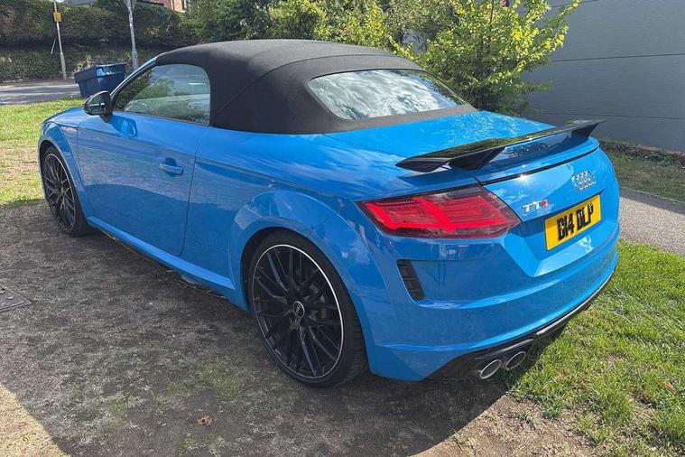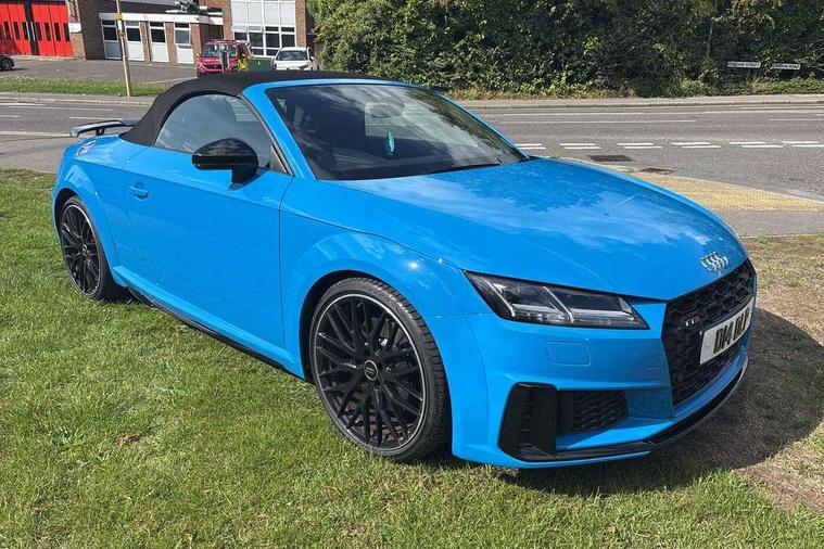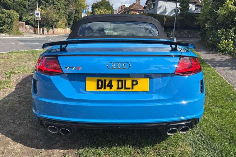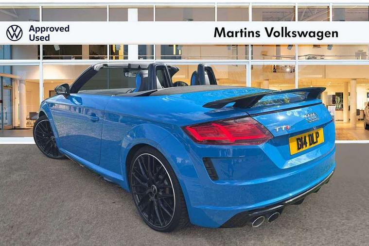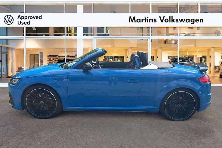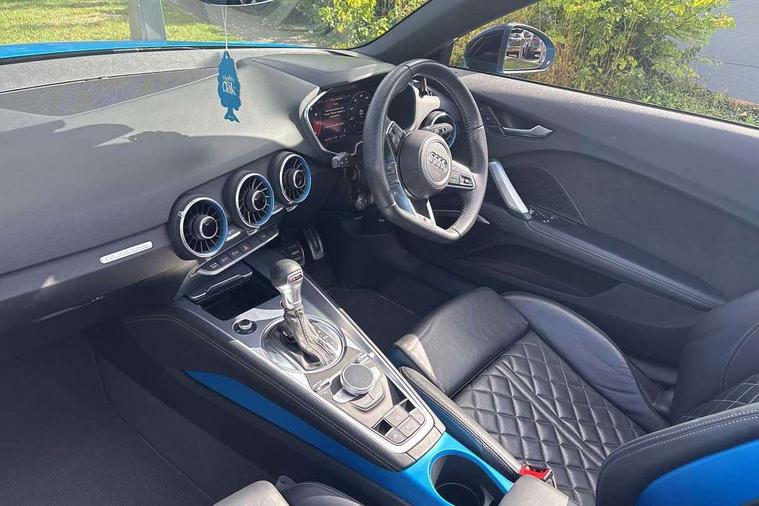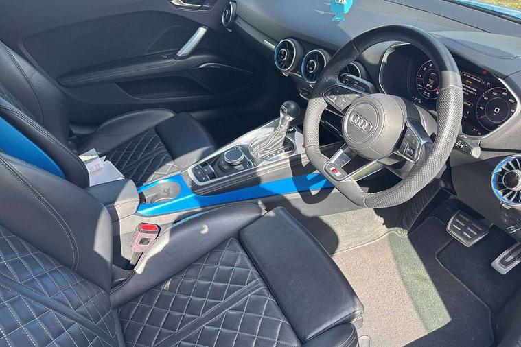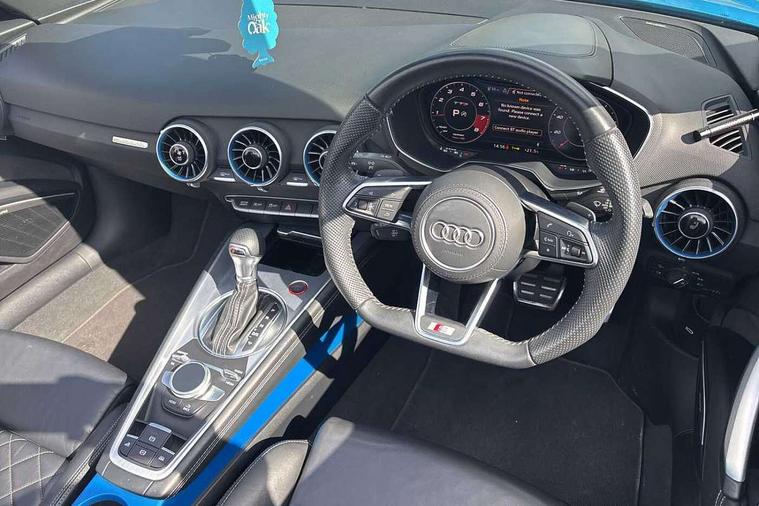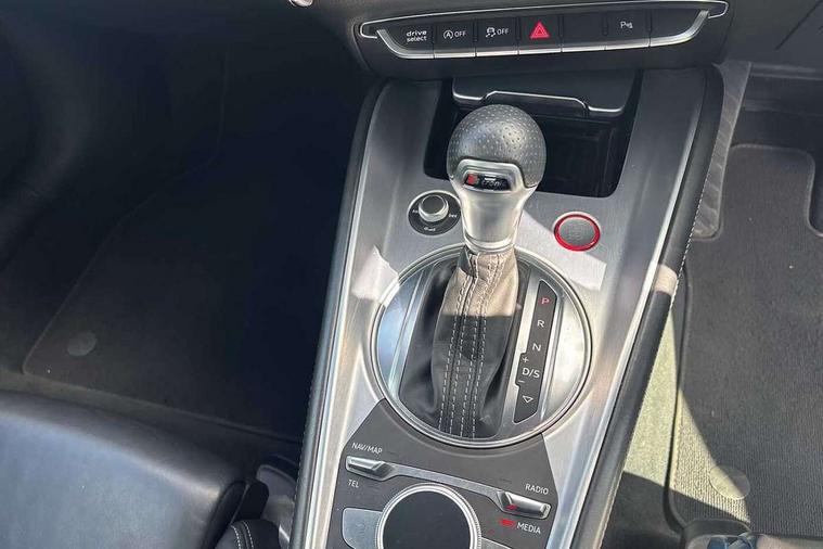 Audi active lane assist, Audi connect, Audi drive select with 4 Pre configured modes, Audi phone box, Audi smartphone interface, Audi Virtual Cockpit with sport gauge, Cruise control + speed limiter, MMI Navigation plus, MMI touch panel, Mobile phone preparation with bluetooth interface, Progressive power assisted steering, Seat belt microphone, Service interval indicator, Start/Stop system with energy recuperation, TP memo, Audi magnetic ride, TTS suspension, AM/FM radio, Bluetooth audio streaming, DAB Digital radio, MMI Radio with CD player and SD/XC card slot, Audi Beam uses LEDs to project the Audi Sport logo, Auto dimming rear view mirror, Auto headlight range control, Black chrome tailpipe, Black door mirrors, Dynamic rear indicators, Electric folding door mirrors, Electric front windows, Fabric hood - Black, Fully automatic acoustic hood, Green tinted heat insulating glass, Headlight wash system, LED daytime running lights, LED headlights with LED rear lights + dynamic rear indicators, Light and rain sensors, Platinum grey rear diffuser, S body styling, Sunband for windscreen, Wind deflector, 12V socket, 3 spoke flat bottomed high multi-function leather sport steering wheel with gearshift paddles, 4 way electric lumbar support for driver and front passenger, Black headlining, Chrome slate grey interior trim, Deluxe auto air conditioning with integrated digital display, Door sill trims with aluminium inlay and TTS logo, Extended aluminium look with stainless steel pedals, Front centre armrest, Heated front seats, Height adjustable driver's seat, Height adjustable front head restraints, Height/reach adjust steering wheel, Interior elements in quartz anthracite, ISOFIX child seat mounting for front passenger seat with airbag deactivation, Perforated leather gearknob, Black styling pack - TT, Leather pack - TTS, LED interior light pack - TT/TT RS roadster, Non smoking pack - TT/TT RS, 3 point front seat belts, ABS, ASR traction control, Brake energy regeneration, Curtain airbags, Driver and front passenger airbag with front passenger airbag deactivation, EDL traction control, Electromechanical parking brake, ESP, First aid kit, Front side airbags, Hill hold assist, Roll bar in glossy black, Seatbelt warning, Tyre pressure warning, Warning triangle, Anti theft alarm, Anti theft wheel bolts, Immobiliser, Keyless Go, Remote central locking, Matt brushed aluminium inlays, Tool kit, Tyre repair kit,