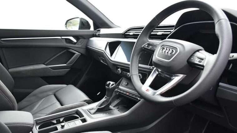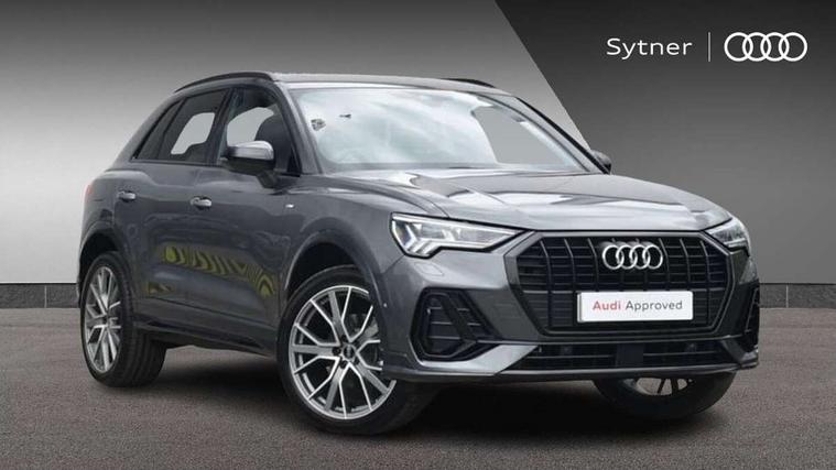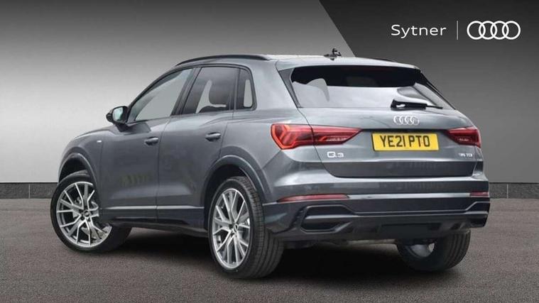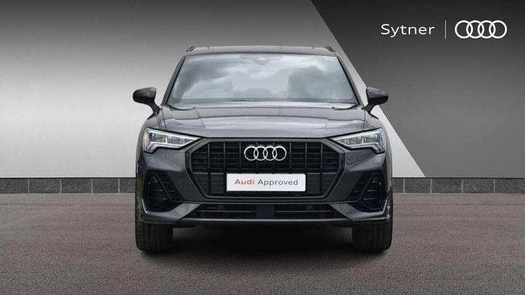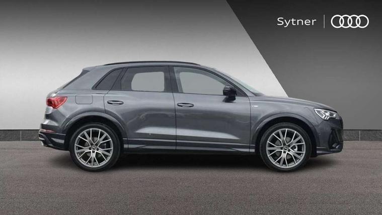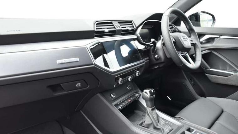 360 degree parking camera, Audi connect safety and service (e-call), Audi drive select, Audi lane departure warning, Audi phone box with wireless charging, Audi virtual cockpit plus, Bluetooth interface, Camera based traffic sign recognition, MMI Navigation Plus with high resolution 10.1 inch touchscreen colour display, Power operated tailgate, Progressive steering, Rear cross traffic assist, Service interval indicator, Smartphone interface includes wireless Apple carplay/Android Auto, Start stop system with recuperation, Voice control system with natural language interaction, Adaptive suspension with damping control, Diesel particulate filter, 2 USB-C ports with charge and data functions, Bang + Olufsen 3D sound system, DAB digital radio module, Acoustic windscreen, Audi Beam uses LEDs to project Vorsprung logo, Auto dimming door mirrors, Auto dimming frameless rear view mirror, Black roof rails, Electrically folding, adjustable and heated door mirrors with integrated LED side indicators and kerb view function for passenger side, Front and rear electric windows, Front fog lights, Front spoiler blade in matt platinum grey, Headlight washers, High gloss black finish B and C pillars, Matrix LED headlights with LED rear lights and dynamic front and rear indicator, Panoramic opening glass sunroof, Privacy glass dark tinted rear and rear-side windows (from B-pillar backwards), Rain and light sensors, Rear diffuser strip in matt titanium black, S line bumpers in contrasting Manhattan grey, 12V socket in rear centre console, 4 way electric lumbar support for driver and front passenger, 40:20:40 folding with manual adjustment for 60:40 forwards/backwards position and backrest angle, Adjustable rear seat bench/backrest with centre armrest and cupholder, Black cloth headlining, Dual zone electronic climate control, Electrically adjustable front seats, Front and rear black floor mats with contrast stitching in rock grey, Front and rear headrests, Front and rear roof module including reading lights, Front centre armrest, Glove compartment lighting, Heated front seats, Height and reach adjustable steering wheel, Illuminated door sill trims with S logo, ISOFIX child seat mounting for front passenger with airbag deactivation and outer rear seat including top tether attachment point for outer rear seats, Leather steering wheel in 3-spoke design with multifunction plus and shift paddles, Luggage compartment light, Perforated leather gearknob, Stainless steel luggage compartment sill finisher, Stainless steel pedals, Black styling pack - Q3, Driver Assistance Pack - Q3, Multi coloured extended ambient interior lighting pack - Q3, Non smoking pack - Q3, 3x3 point rear seatbelts, 6 airbags - Driver, front passenger, curtain and side windows, Audi pre-sense front with pedestrain and cyclist recognition, Electrically operated child locks on rear doors, Electromechanical parking brake, Electronic stabilisation control including ABS, ASR and EDL, Hill descent control, Hill hold assist, Pre sense basic, Seatbelt monitoring, Tyre pressure warning, Warning triangle and first aid kit, Advanced key, Anti theft alarm, Anti theft wheel bolts, Remote central locking, Detail dashboard around MMI touch colour display in glass look, black with surround in aluminium look, Leatherette door armrest,