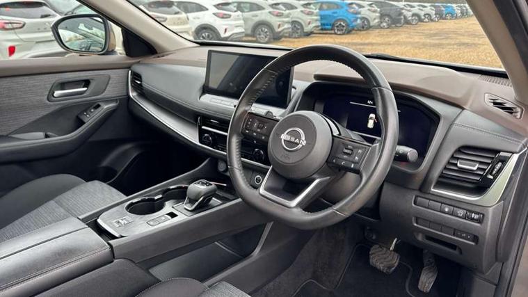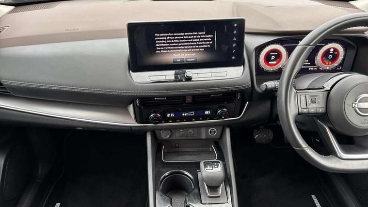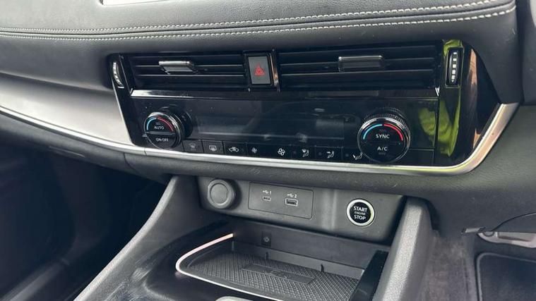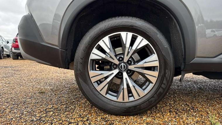 Android auto/Apple CarPlay (Wired), Blind spot warning, Drive modes (sport, normal, eco), Electric speed sensitive power steering, Emergency and breakdown call, Front and rear parking sensors, Full Digital 12.3" TFT Digital Combimeter, Google maps services - search, weather, 3D maps and Google street view, Idle stop/start system, Intelligent around view monitor, Intelligent Cruise control (ICC), Intelligent driver alert system, Intelligent forward collision warning, Intelligent lane departure warning, Intelligent lane intervention, Intelligent lane keep assist, Maximum speed limiter, Moving object detection, Nissan connect 12.3 inch touchscreen infotainment system, Nissan connect nav with TomTom traffic, Push button starter, Rear cross traffic alert, Rear view camera, Remote control services - door locks, lights, horn and car locator, Telematics - notifications and connectivity services, TomTom live traffic services, Traffic sign recognition with legal speed adjustment, Trip computer, Virtual personal assistant and firmware over the air capability, Wireless apple carplay, Wireless charging pad, 6 speakers, AM/FM audio system with DAB, Bluetooth audio streaming, Front USB connections (Type-A and Type-C), Rear USB charging only ports (Type-A and Type-C), 3rd brake light, Auto dimming rear view mirror, Auto rear wiper when reversing, Body colour mirror caps, Body coloured door handles, Bodyside mouldings, Chrome side window finisher, Electric auto folding door mirrors, Electrically adjustable and heated door mirrors, Follow me home headlights, Headlights auto levelling system, High beam assist, Intelligent auto headlights, LED daytime running lights, LED Headlights, LED rear lights, One touch front and rear electric windows with remote opening and closing, Partially body coloured bumpers, Rain sensing wipers, Rear privacy glass, Rear reversing light (bulb lighting), Rear roof spoiler, Rear side wing doors, Rear styling plate, Shark fin antenna, Splash free wipers, Super UV and infrared cut glass, Three blink turn signal, 12v power socket in dashboard and luggage, 3 bench rear seats in 2nd row, 3 rear headrests, 60/40 split folding rear seat bench, Butteryfly console, Chrome interior door handles, Cloth monoform upholstery, Driver and front passenger sunvisors with illuminated vanity mirrors, Driver seat back pocket, Dual zone automatic climate control with pollen filter, Front centre console and armrest, Front cupholders, Front door with bottle holders, Height adjustable driver's seat, Height adjustable front headrests, Height adjustable passenger seat, Leather shift knob, Leather steering wheel, Luggage board system, Luggage space lighting, Multifunction steering wheel, Passenger seat back pocket, Rear armrest with 2 cupholders, Rear door bottle holders, Single front passenger seat, Tilt/telescopic adjustable steering wheel, Two rear isofix child seat anchorage points with top tether, 3x3 point rear seatbelt pretensioners + load limiters, ABS with EBD and brake assist, Active brake limited slip, Auto hold function, Child locks on rear doors, Curtain and front side, far side airbags, Driver and passenger airbags, Driver, passenger and 2nd row rear seat belt reminder, Electronic parking brake, Front seatbelt pretensioners + load limiters, Height adjustable front seatbelts, Hill start assist, Intelligent blind spot intervention, Intelligent front emergency braking with pedestrian, cyclist recognition and junction assist, Intelligent rear automatic braking, Tyre pressure monitoring system, Vehicle dynamic control, Engine immobiliser, Intelligent Key, Remote central door locking with deadlocking, Thatcham Cat.1 alarm, 18" Diamond cut alloy wheels, Tyre puncture repair kit,
