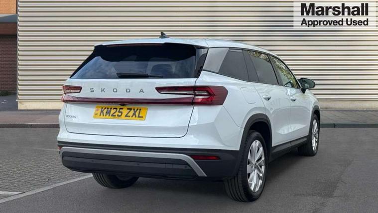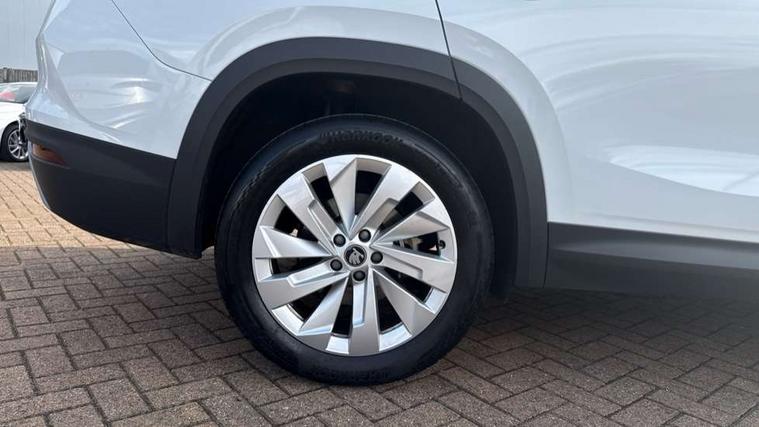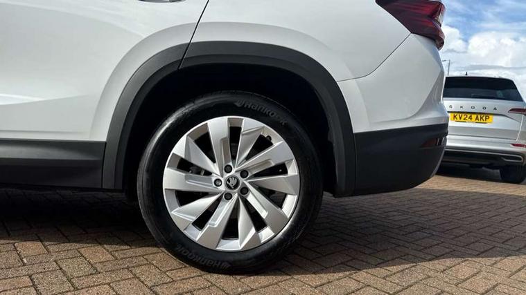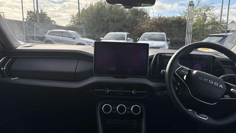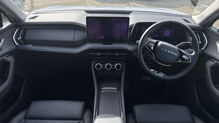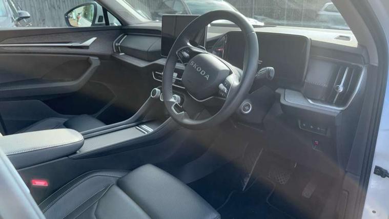 13" satellite navigation touchscreen display, Blind spot detection with door exit warning, Bluetooth system, ChatGPT functionality, Driver alert - Fatigue and drowsiness monitor, Dry display cleaner, Emergency call, Front and rear parking sensors, Front cross traffic assist, Lane assist, PAS, Rear traffic assist, Tailgate unlocking from outside, Traffic sign recognition, USB C Port x 2 in front centre console, Virtual Cockpit - 10.25" digital display, Voice control system, Wireless charging for two smartphones (15W) with cooling function, Wireless SmartLink for Apple CarPlay and Android Auto, Stop/start function, 2x USB-C in the rear, DAB Digital radio, Aero front windscreen wipers with intermittent function, Auto dimming rear view mirror, AWL (all weather lighting) and all weather light with cornering function, Black wheel arch surrounds, Body colour bumpers, Body colour door mirrors and handles, Cornering light and poor weather light, Electric folding /adjustable/separted heated/folding door mirrors, auto dimming with boarding sports and memory function, Electric front and rear windows, Exterior black decorative trims, Heat insulating glass in windshield, Heated rear window, Ice scraper in fuel tank cap, Invisible tailpipe, LED daytime running lights, LED third brake light in rear spoiler, Light assistant with automatic headlight control and coming home feature, Logo projection in door mirrors, Privacy glass, Rear roof spoiler, Rear side wing doors, Rear window wiper, Red decorative strip between rear LED lights, Safety reflectors on front and rear doors, Unique dark chrome design logo on alloy wheels, Window control switches with black trim, Windscreen wipers with rain sensor, Without engine designation, 1.5l bottle holder points in all door, 1x centre rear reading light, 2 seat bench in 3rd row, 3 configurable smart dials with 32mm coloured display, 3 seat bench in 2nd row, 4 foldable roof handles with rear coat hooks, Ambient interior lighting - Dashboard, front-door stowage compartments, front and rear door panels and footwell lighting, Automatic gear selector on steering column, Chrome interior door handles, Driver/front passenger reading lights, Fabric headlining, Fixed bench 40:60:40 split folding backrests, Front and rear floor mats, Front centre armrest with jumbo box storage compartment, cup holder and 12V socket, Height adjustable front headrests, Isofix child seat fittings in outer middle row rear seats and front passenger with top tether, Manually adjustable steering column, Pollen filter, Rear centre armrest with cupholders, Rear seat boot backrest release, Single front passenger seat, Skoda lettering on steering wheel, Storage pocket including mobile phone pockets on the backs of the front seats, Sunvisors with illuminated vanity mirrors, Three rear height adjustable headrests, Ticket holder on A Pillar, Tri zone climate control, Umbrella in door panel x1 made from sustainable materials, Upper and lower glovebox with card holder and coin compartment, USB C port by rear view mirror for charging only (15W), Exterior styling pack - Kodiaq, Auto door release and activation of warning lights in the event of an accident, Driver and front passenger airbag with knee airbag and front passenger airbag deactivation, Electric child locks, Electronic parking brake, ESC (incl. ABS+EMD+MSR+ASR+EDL+HBA+DSR+RBS+ESBS+MCB+TSA+XDS), Front assist with braking reaction to vehicles, pedestrians and cyclists, Front disc brakes, Fuel cut off safety device, Height adjustable front 3 point seatbelts + pretensioners, Hill hold assist, Junction assist with automatic emergency braking, Rear disc brakes, Safety vest holder in door, Seat belt reminder for all seats, Three point rear seat belts, Two tone horn, Tyre pressure monitor, Anti-theft wheel bolts, Immobiliser, Remote central locking with 2 keys,